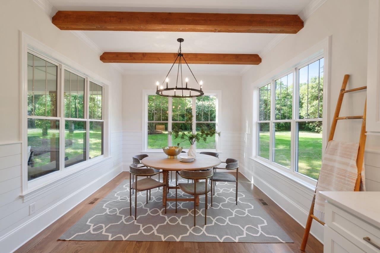 You’ll appreciate the stunning architecture of this custom home with oak flooring, recessed beams in the dining room, cedar features inside and out, shiplap, and Benjamin Moore paint.