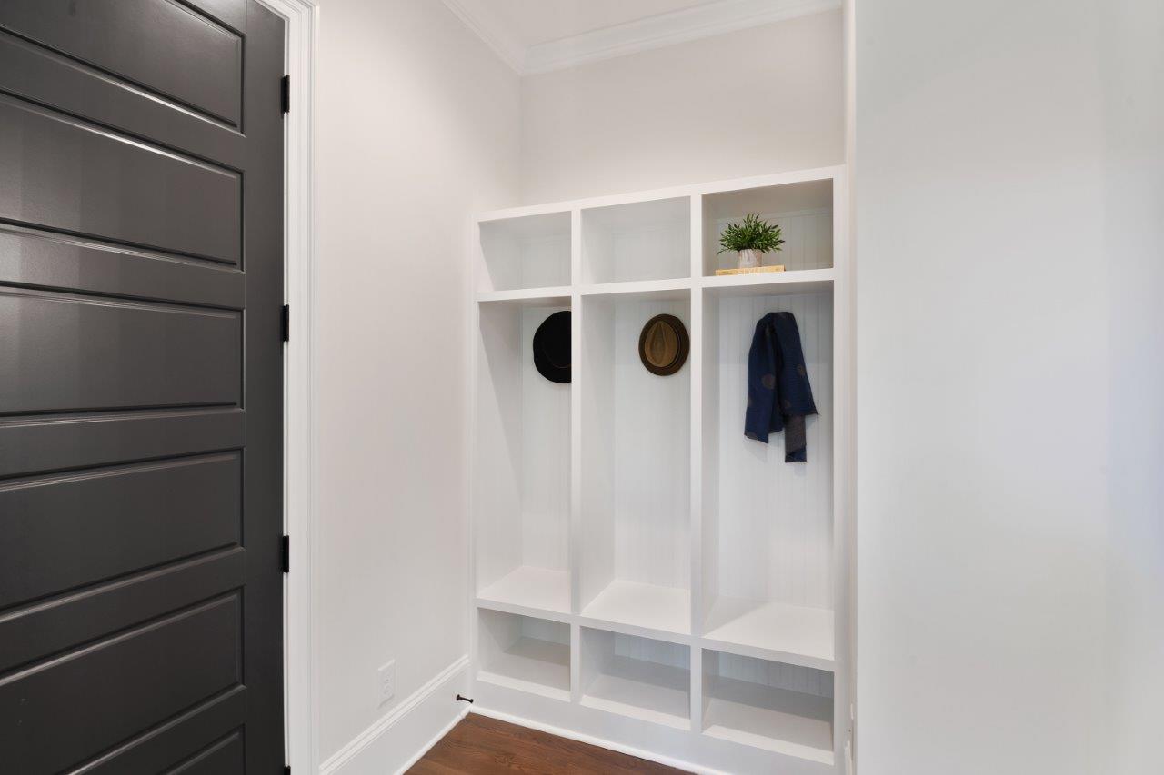 Work and home life balance is made easier with the well organized mudroom with side entrance.