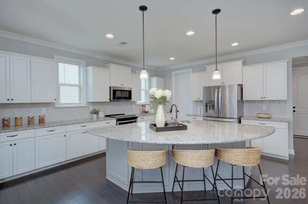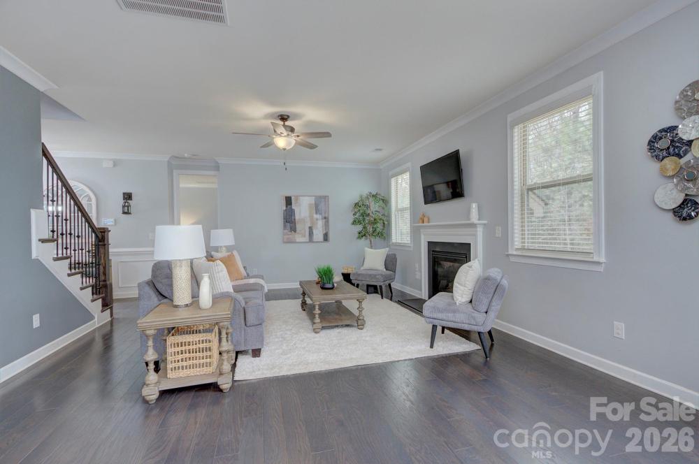 BEAUTIFUL CRAFTSMAN-STYLE HOME with Hardie Plank siding and striking stone accents located in the popular Lake Crest community at Lake Wylie. Offering more than 3,000 square feet of well-designed living space, this move-in ready 4-bedroom, 2.5-bath home delivers the open layout, FLEXIBLE CHARM and architectural charm buyers are seeking in today’s Lake Wylie real estate market. Decorative gable details, arched window elements, classic shutters and a welcoming covered front balcony create standout curb appeal and lasting exterior appeal. THE INTERIOR LAYOUT IS BOTH COMFORTABLE AND FUNCTIONAL, making it easy to host gatherings or enjoy quiet evenings at home. A spacious family room with gas fireplace connects seamlessly to the dining area and expansive kitchen, creating a natural flow for entertaining. THE OVERSIZED KITCHEN ISLAND offers seating, prep space and sink access, serving as the central gathering point of the home. Just steps away, a built-in workspace nook provides an ideal setting for remote work, studying or managing everyday tasks while remaining connected to the main living areas. EVERYDAY ORGANIZATION is enhanced by a generous mudroom and drop zone entry off the garage. A main-level flex room adds tremendous versatility and can function as a guest bedroom, dedicated home office, playroom or additional living space depending on lifestyle needs. Upstairs, THE PRIVATE PRIMARY SUITE provides a relaxing retreat and features access to the charming front balcony along with a spa-like bath designed for comfort. Two additional bedrooms offer ample space and share convenient access to a full hall bath. The oversized loft or bonus room creates EXCELLENT OPPORTUNITY FOR A MEDIA ROOM, FITNESS AREA, GAME SPACE OR SECOND FAMILY ROOM. A large upstairs laundry room contributes to the thoughtful design and everyday ease of living. The home’s layout includes approximately 1,589 square feet on the main level and 1,441 square feet on the second floor, offering both openness and defined living areas for modern households. Outdoor enjoyment is enhanced by WOODED VIEWS BEHIND THE HOME, providing a sense of privacy and connection to nature. Residents of Lake Crest benefit from desirable neighborhood amenities including a COMMUNITY POOL, WALKING TRAILS AND PRESERVED GREEN SPACE THAT SUPPORT AN ACTIVE AND SOCIAL LIFESTYLE. Ideally positioned NEAR LAKE WYLIE, shopping, dining and recreation, the home also offers convenient commuting access to Charlotte employment centers and major thoroughfares. Located within the HIGHLY REGARDED CLOVER SCHOOL DISTRICT and benefiting from LOWER YORK COUNTY TAXES, this property represents an exceptional opportunity for buyers seeking newer construction, architectural style and location convenience in one appealing package.