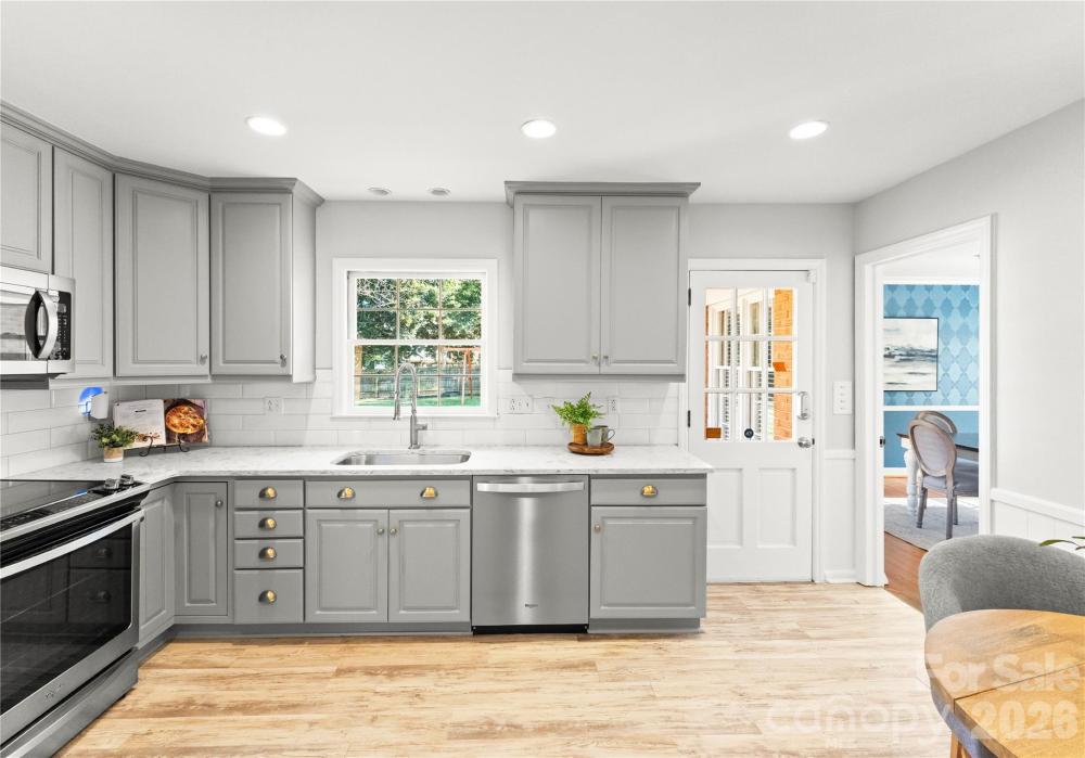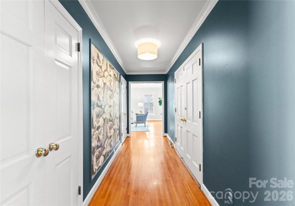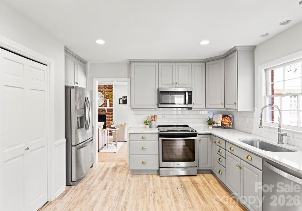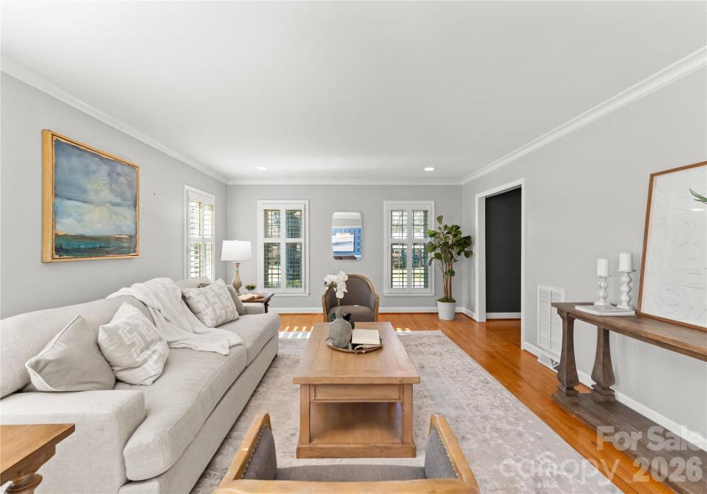This all-brick 3 bed/2 bath ranch exudes timeless elegance, beautiful curb appeal and thoughtful updates at every turn. Hardwood floors flow throughout. Recently updated kitchen features quartz countertops, and a Whirlpool appliance suite (2019) and both baths have brand new vanities. Further updates include fresh paint throughout, plantation shutters and blinds, recessed lighting, and low-profile ceiling fans (2020/2021). The HVAC was replaced and re-ducted for modern filtration (2022). Custom California Closets were added in all bedrooms, with a wall unit in the primary suite for additional storage (2023). Exterior improvements include new gutters and refreshed paint on the front door, shutters, soffit, and fascia (2024). Well-built, thoughtfully updated, and move-in ready.