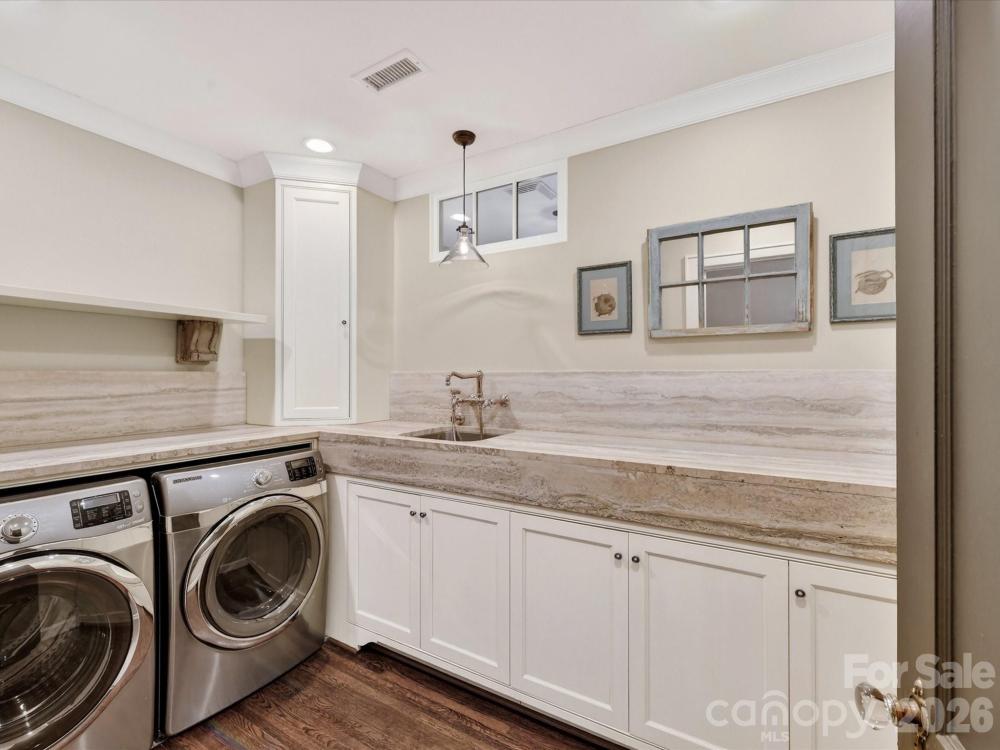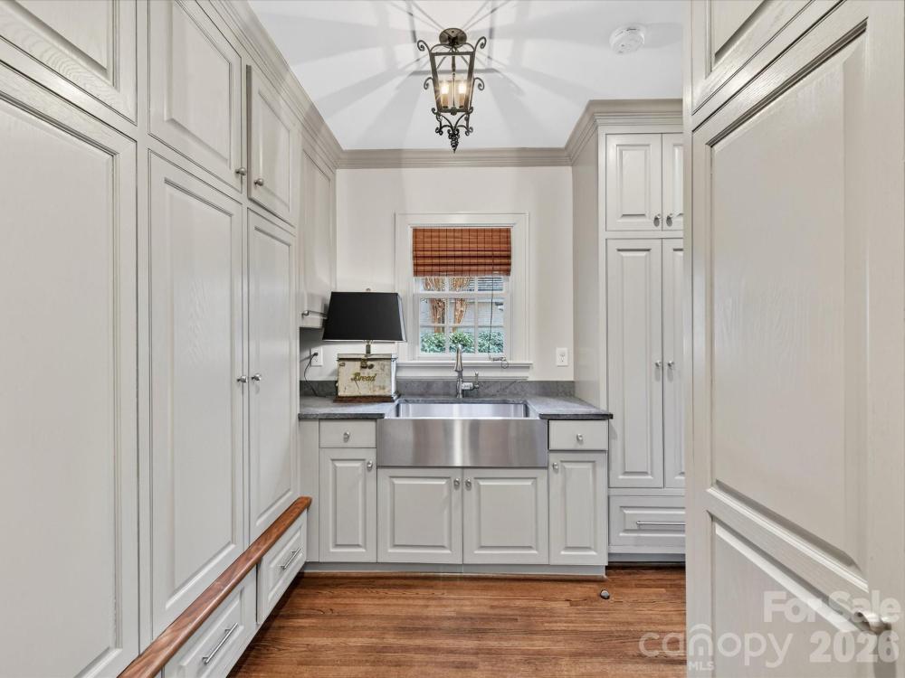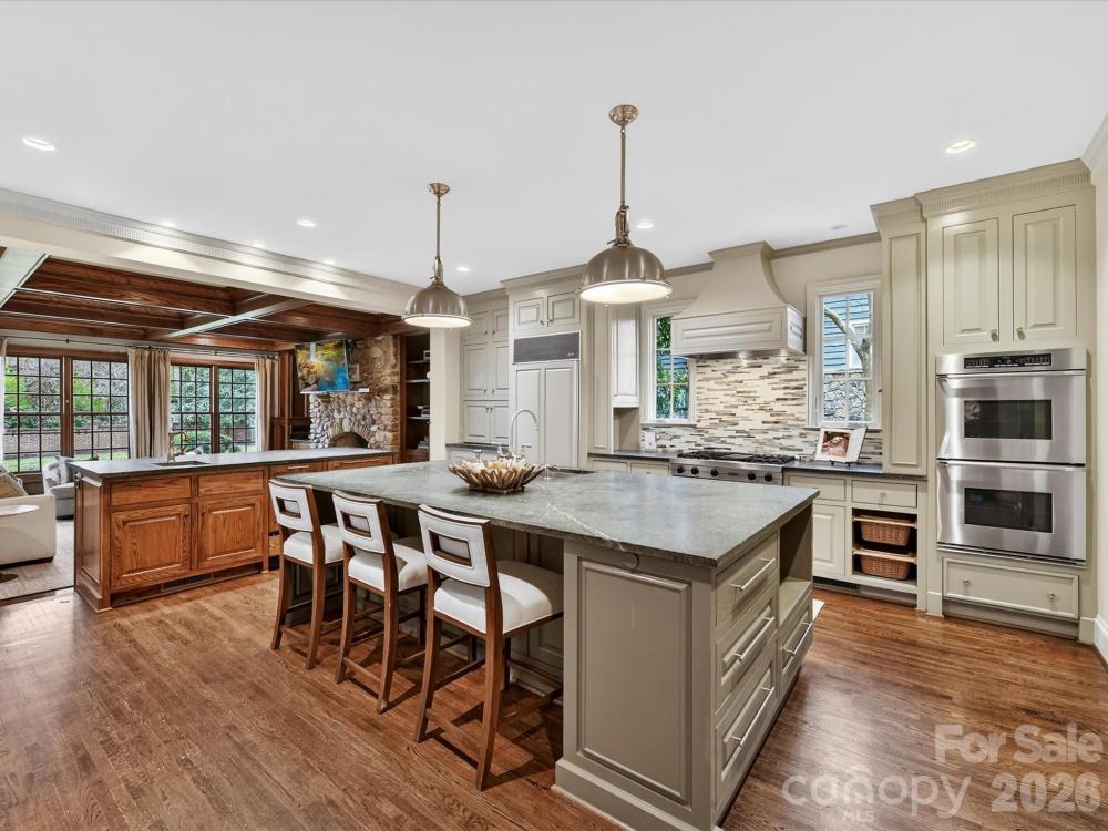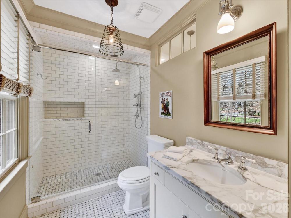 Located on the highly sought-after Queens Road West, this lovely Tudor home is beautifully updated for modern living while preserving all the best of days gone by. The thoughtful layout makes for elegant entertaining, (the dining room!) while still finding the quiet moments. Built-ins and bookshelves for the book lovers, create layers of design. At the heart, is the gorgeous updated chef's kitchen with its oversized island meant for gathering, and a step away from the window-lined great-room with views to the lush private yard. Upstairs, each of the 4 bedrooms has its own en-suite bath, deep closets and generous dimensions. The upstairs laundry room & the downstairs mud rooms are loaded with storage, oversized sinks and room to maneuver. And of course, the garage apartment -- complete with kitchenette & full bath, is the loveliest of guest retreats (or office or work-out studio?) Serene and private, this beautiful 1936 home is a homage to lawn parties and cocktails by the fire, but easily manages homework at the kitchen table. Come and see.