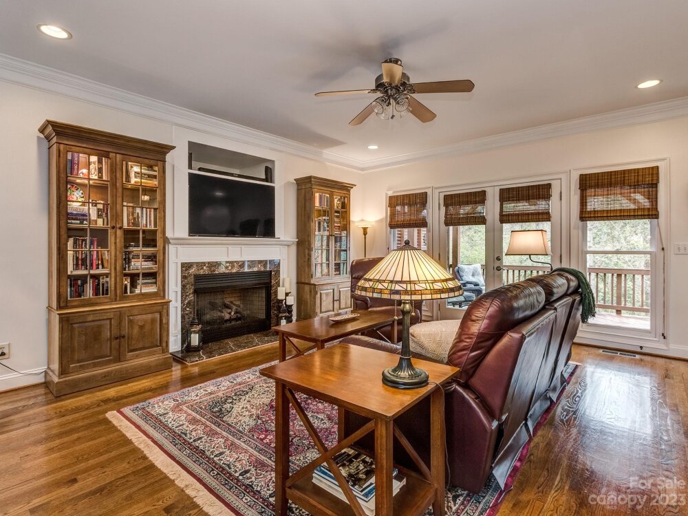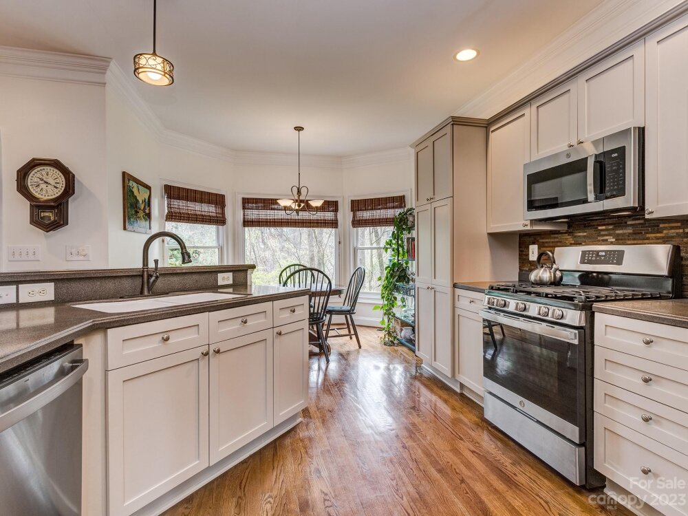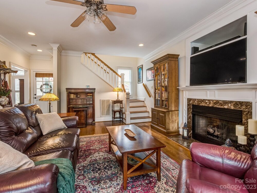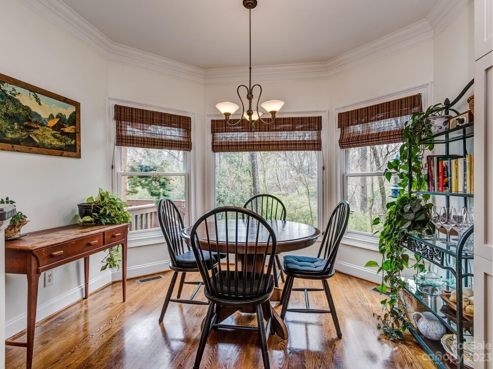 Beautiful, move-in ready home nestled on a quiet, tree-lined idyllic street just steps from everything Plaza Midwood has to offer! Upon entering the home, you are greeted with gleaming hardwood floors, high ceilings accented with crown molding, and an abundance of natural light. On the main level, an open living room is centered around a striking marble fireplace and flows into the newly-painted kitchen and a breakfast nook. Upstairs, the primary suite has a tray ceiling, a walk-in closet, and an en-suite bathroom with double vanity. Two generously-sized ancillary bedrooms and a fresh, neutral hall bath complete the second level. Enjoy three separate outdoor spaces perfectly set up for indoor-outdoor living including a welcoming front porch, a private second-floor balcony, and a spacious back deck overlooking a natural wooded area. This is Midwood living at its finest.