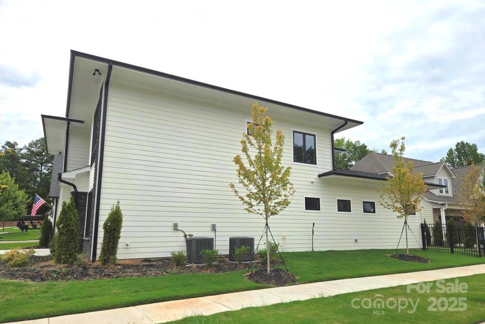 New CUSTOM CONSTRUCTION modern style home designed for those wanting to downsize without sacrificing high end quality and features. With the Primary suite on the first floor there are 3 additional bedrooms and a huge recreation room upstairs providing lots of room for guests or other family members. There is also an office on the first floor and a 2 story family room to enhance the spaciousness of this home. One of only 24 homes in this intimate community all homes in Shelburne Village enjoy a Country Club Swim/Tennis and Fitness Social membership which is located directly in front of the community. Full yard lawn maintenance is also included in the HOA dues. You will not find a new Custom built home in the Charlotte area at this value!