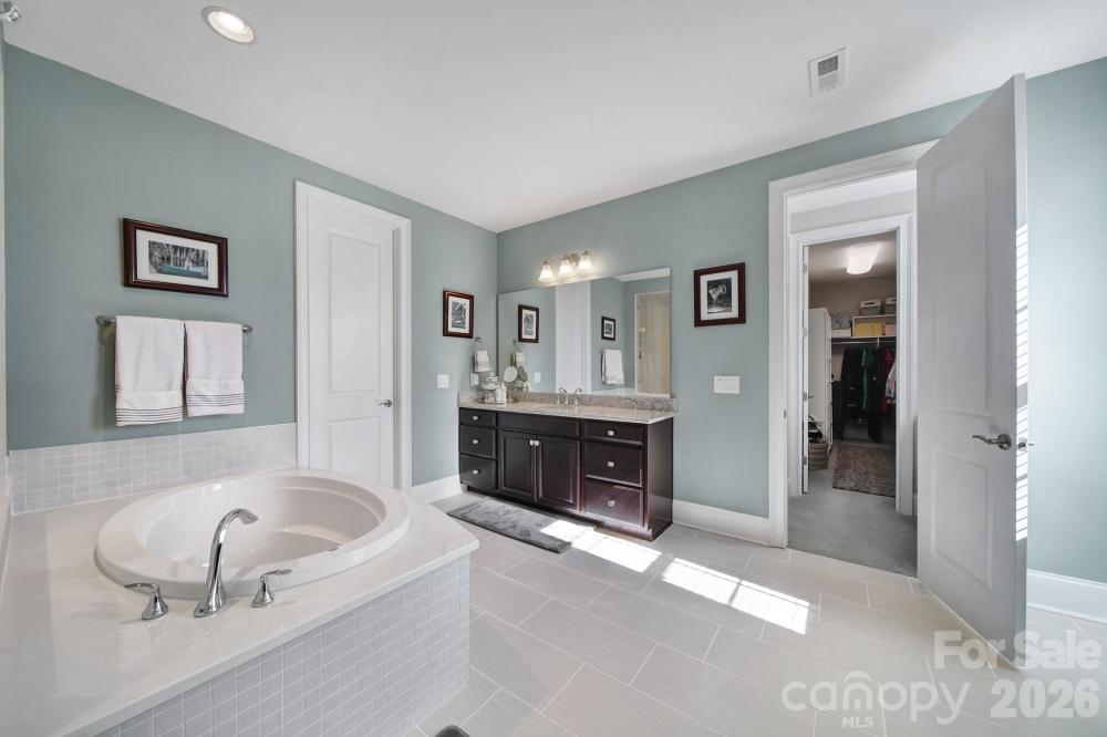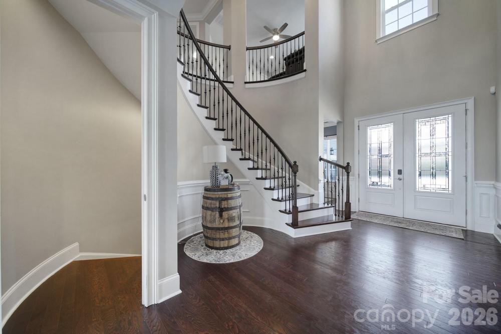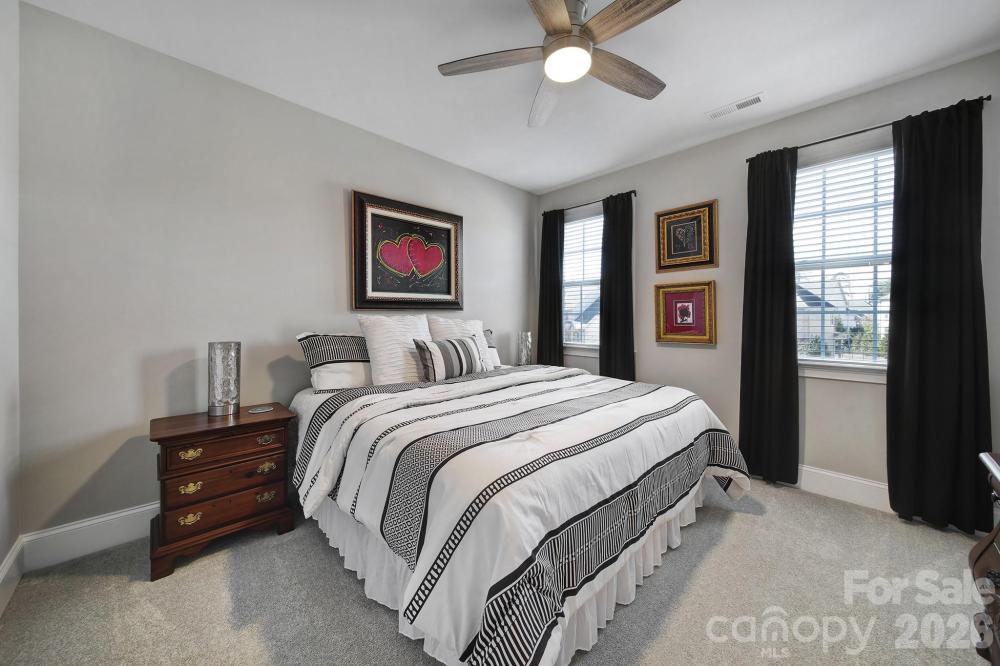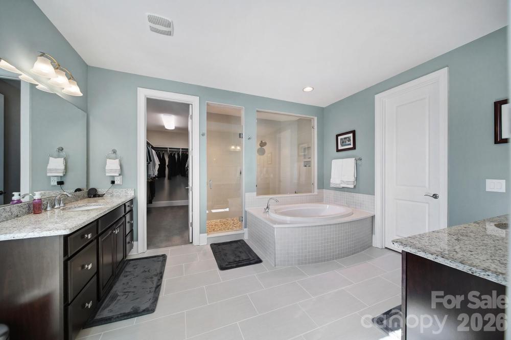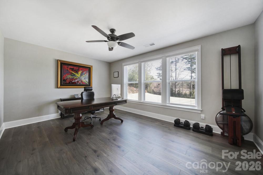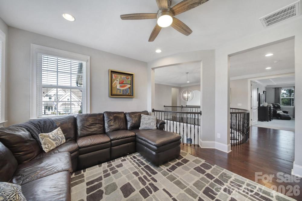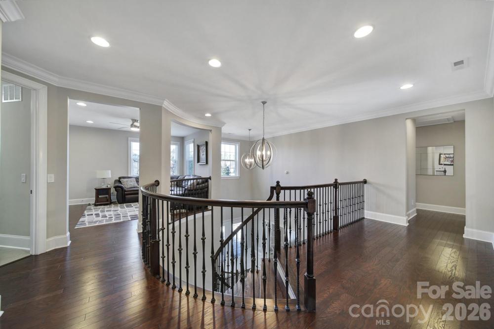Luxury home with a finished walkout basement in the gated Montage section of the highly sought-after Palisades, offering water and golf course views. Two-story foyer opens to a spacious floor plan featuring a great room with a gas fireplace, built-in shelving, and abundant natural light. Gourmet kitchen includes quartz countertops, a gas range, wall oven, oversized island with seating, walk-in pantry with custom shelving, breakfast area, and a butler’s pantry connecting to the formal dining room. Main level has a private office with French doors and a guest suite with full bath. Upstairs primary suite offers two walk-in closets and a spa-like bath with dual vanities, a soaking tub, and a large walk-in shower. Upper level also includes a loft with storage, a laundry room with cabinets and a sink, three secondary bedrooms, and two full baths. Finished walkout basement with new LVP flooring is ideal for multigenerational living with a full kitchen, dining area, rec room, bedroom, full bath, storage, and washer/dryer. Screened-in porches on main and basement levels. Three-car attached garage with EV charging station. Resort-style amenities include a pool, clubhouse with fitness center and kitchen, playground, pickleball and basketball courts. Golf and tennis/social memberships are available at The Palisades Country Club.