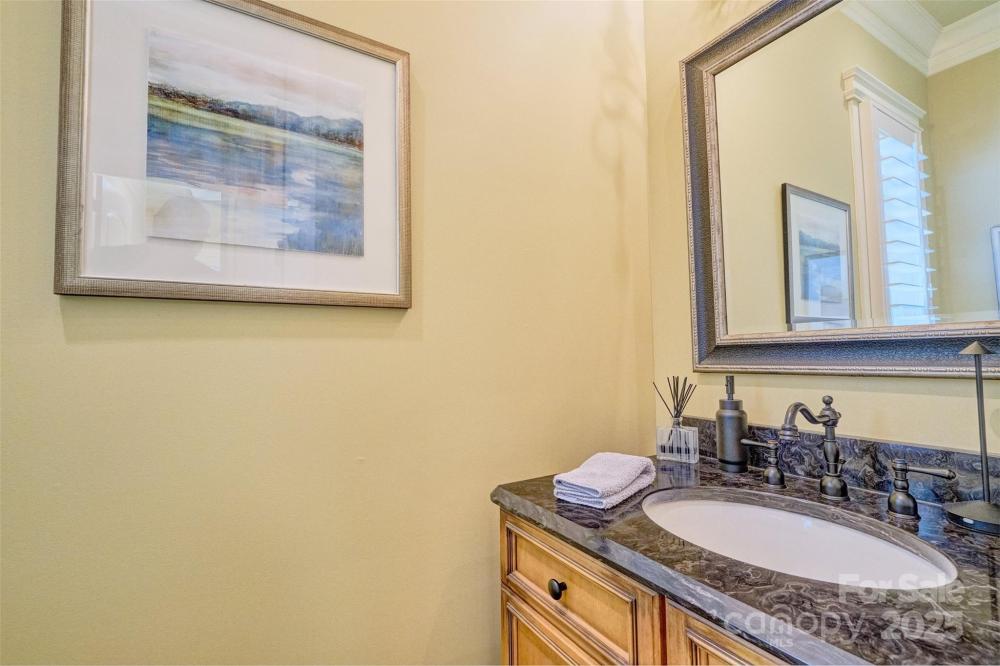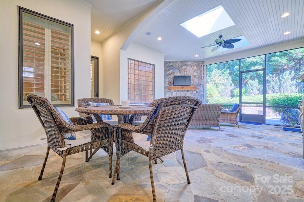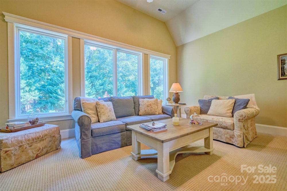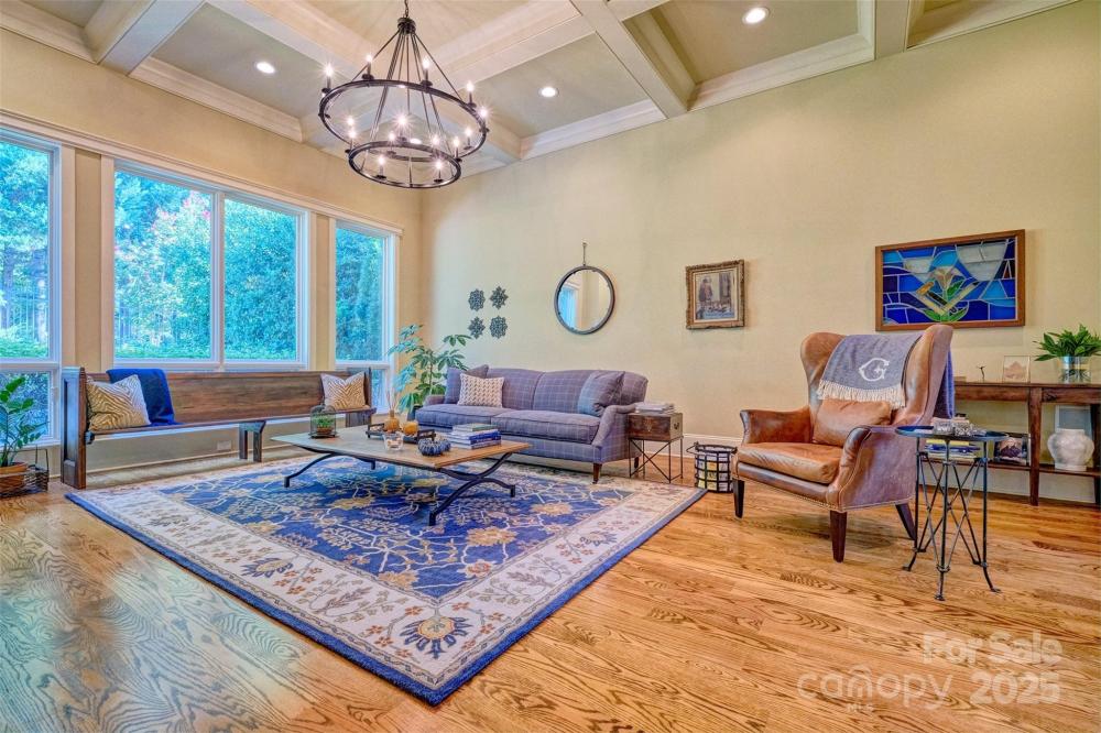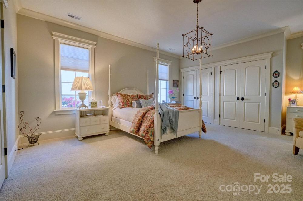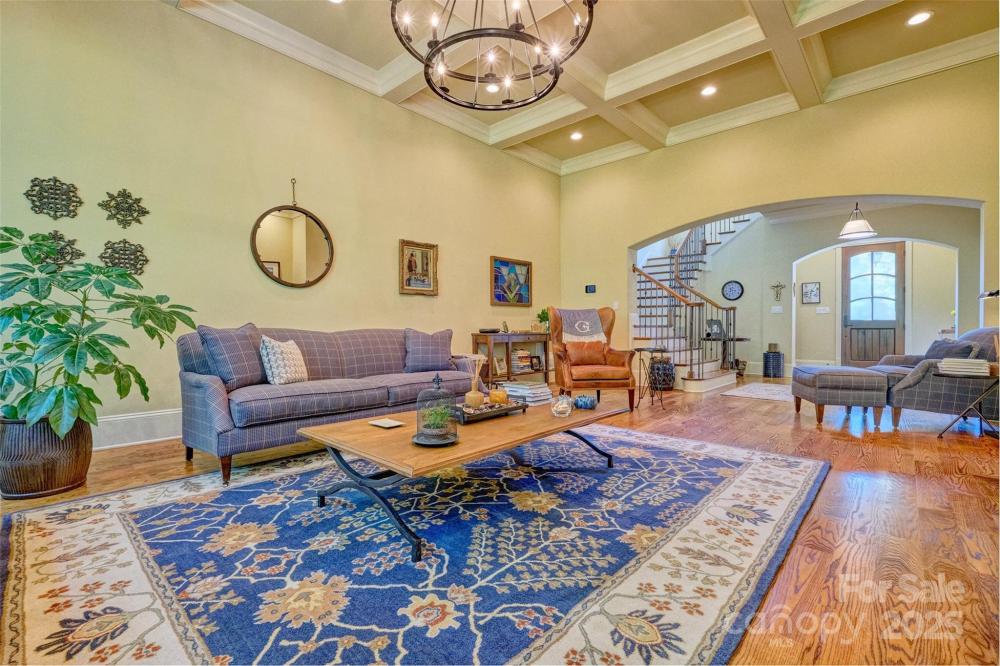 Welcome home to this cozy home in the Palisades with walkability to the country club, the resident amenity pool, tennis courts ,pickle ball courts and playground. This beauty sits in a small gated enclave of 7 custom homes with HOA that provides landscaping, fountain and the gate. Kingswood was the builder and their attention to details is awesome. Large foyer and then great room - 2 story with coffered ceilings- welcomes you in with adjoining open kitchen and oversized island & eat in area. There is also a formal dining room, huge laundry room, 1/2 bath and luxurious primary suite on the main floor with only 2 steps into the house. The screened porch with skylights is an extension of the living area and goes into the private backyard and fire pit. The upstairs offers 3 large bedrooms with ensuite bathrooms, bonus room with lots of room for pool table ,gaming tables and seating areas. This home has great flow for entertaining and accommodating all your visitors with privacy. Hardwoods throughout the first floor with the exception of the primary bath. Upstairs is also hardwood for bonus room and carpeted bedrooms. Could work for multigenerational living with so much space and privacy. The Palisades is unique neighborhood and close to Charlotte, Fort Mill and I77 for commuting . There is a cool wine cellar/ closet for those who like to collect. Come see this well maintained home and appreciate the neighborhood and all it offers.