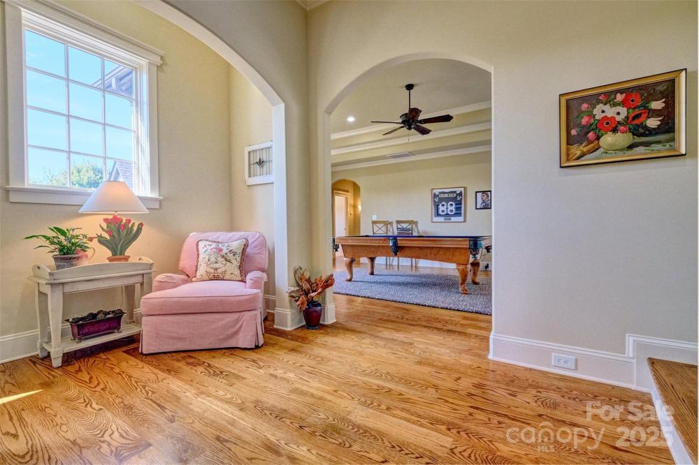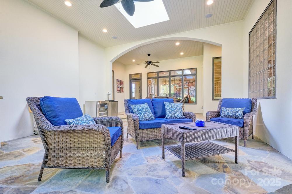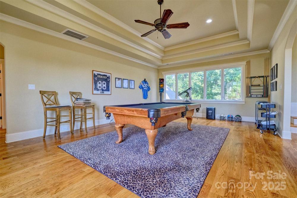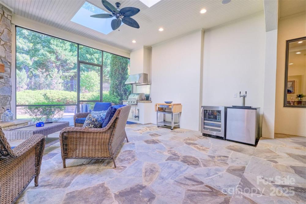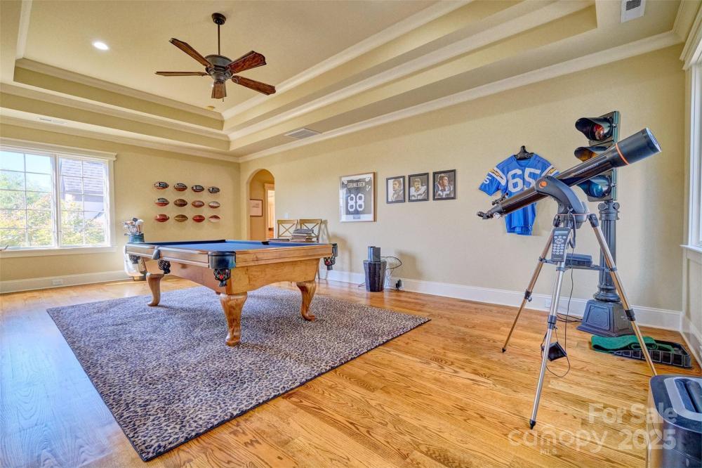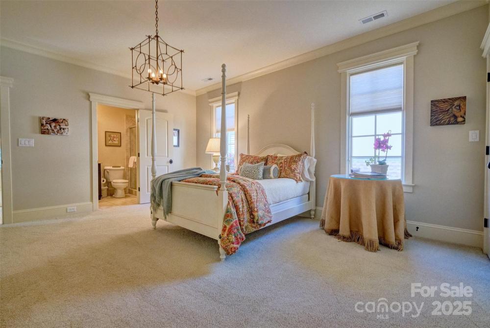 Welcome home to this cozy home in the Palisades with walkability to the country club, the resident amenity pool, tennis courts ,pickle ball courts and playground. This beauty sits in a small gated enclave of 7 custom homes with HOA that provides landscaping, fountain and the gate. Kingswood was the builder and their attention to details is awesome. Large foyer and then great room - 2 story with coffered ceilings- welcomes you in with adjoining open kitchen and oversized island & eat in area. There is also a formal dining room, huge laundry room, 1/2 bath and luxurious primary suite on the main floor with only 2 steps into the house. The screened porch with skylights is an extension of the living area and goes into the private backyard and fire pit. The upstairs offers 3 large bedrooms with ensuite bathrooms, bonus room with lots of room for pool table ,gaming tables and seating areas. This home has great flow for entertaining and accommodating all your visitors with privacy. Hardwoods throughout the first floor with the exception of the primary bath. Upstairs is also hardwood for bonus room and carpeted bedrooms. Could work for multigenerational living with so much space and privacy. The Palisades is unique neighborhood and close to Charlotte, Fort Mill and I77 for commuting . There is a cool wine cellar/ closet for those who like to collect. Come see this well maintained home and appreciate the neighborhood and all it offers.
