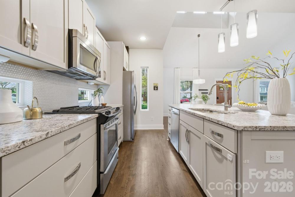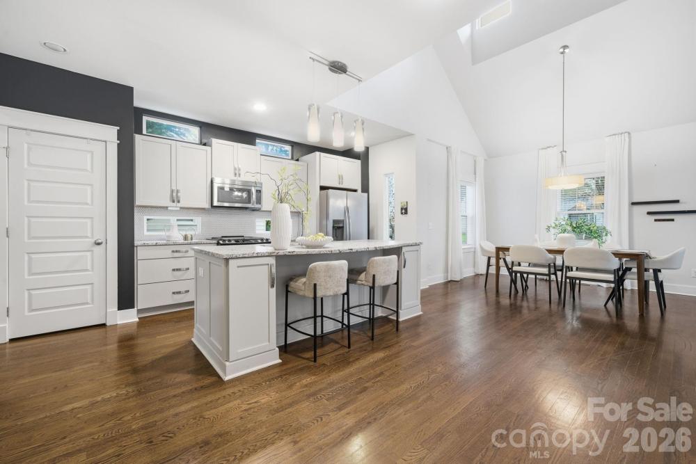 Tucked away less than one mile from the heart of Plaza Midwood, this rare 3-bedroom home offering 2,274 square feet is a true find in one of Charlotte’s most sought-after neighborhoods. Combining space, charm, and an unbeatable location, this home delivers the perfect blend of comfort and lifestyle. Step inside and be wowed by the soaring ceilings on the main level, creating an open and airy feel throughout the living room, kitchen, and dining area. The open floor plan is perfect for entertaining, while the kitchen features a gas range and the living room is anchored by a cozy gas fireplace. The primary suite on the main level offers convenience and privacy. Upstairs, you’ll find two additional bedrooms with a shared bath, along with a versatile loft space perfect for a second living area or home office. Enjoy evenings outside on the spacious deck, or head down to the stone patio with a fire feature, ideal for relaxing or entertaining. The home also includes a tankless gas water heater for added efficiency. Take in peaceful views overlooking Veterans Park, all while being just minutes from the restaurants, breweries, boutiques, and nightlife of Plaza Midwood. Homes offering this much space in this location rarely come available.