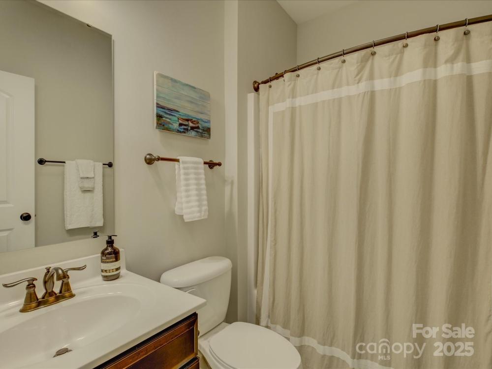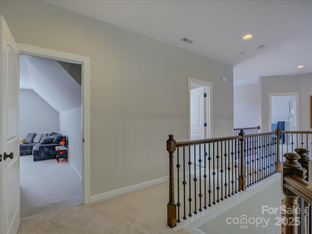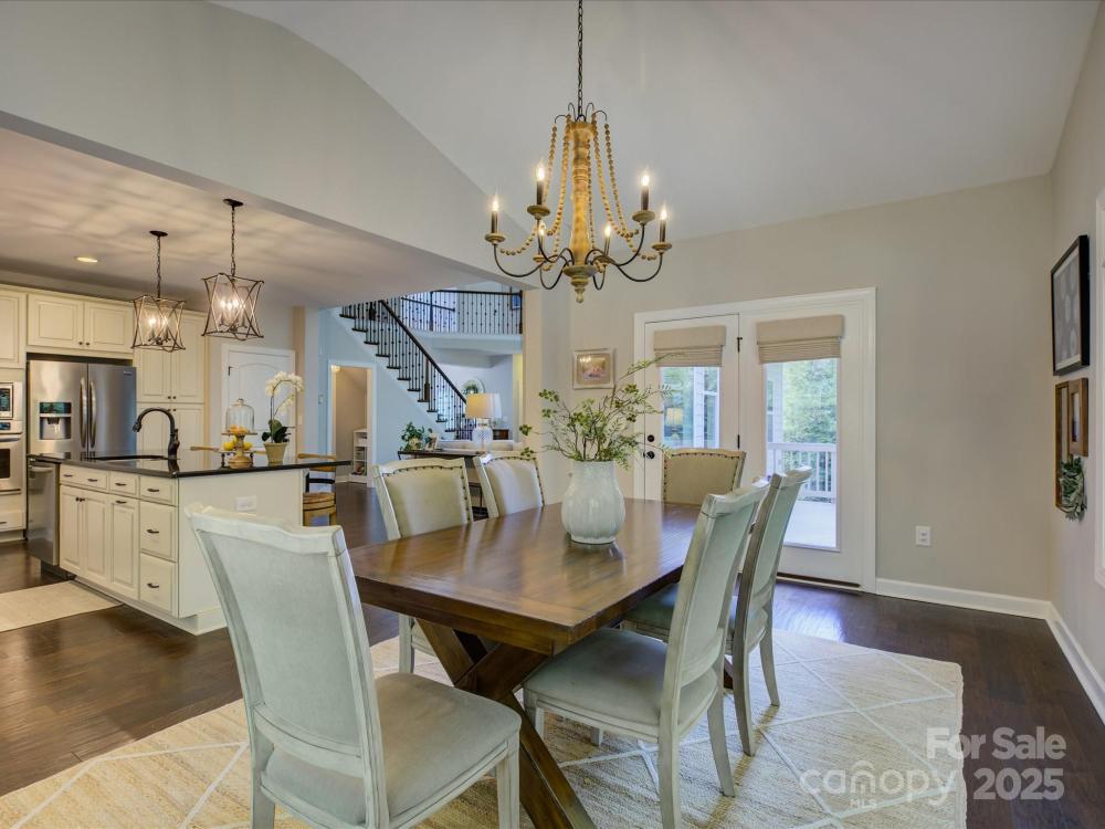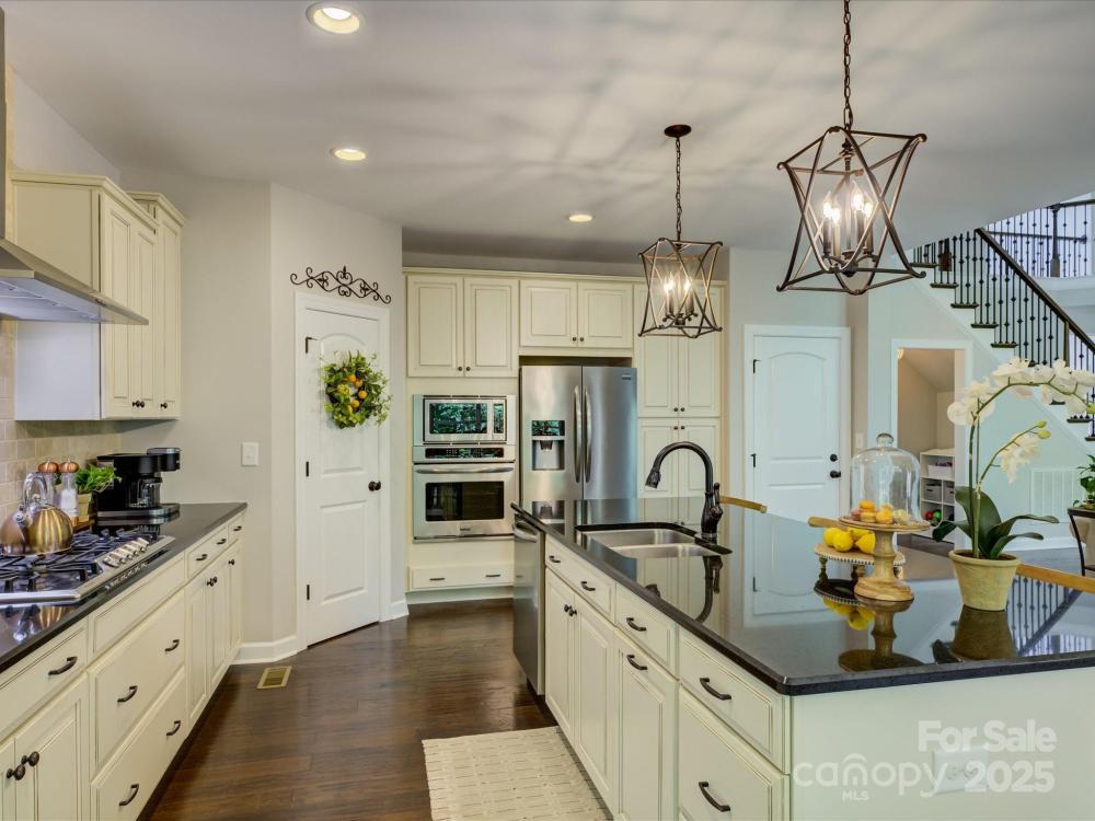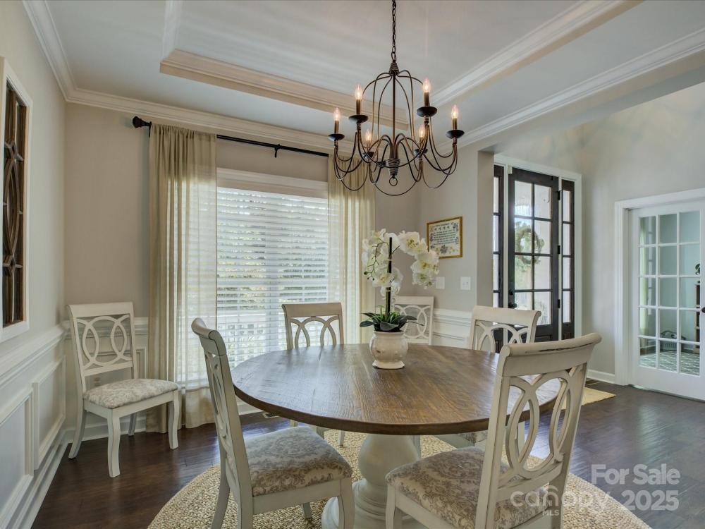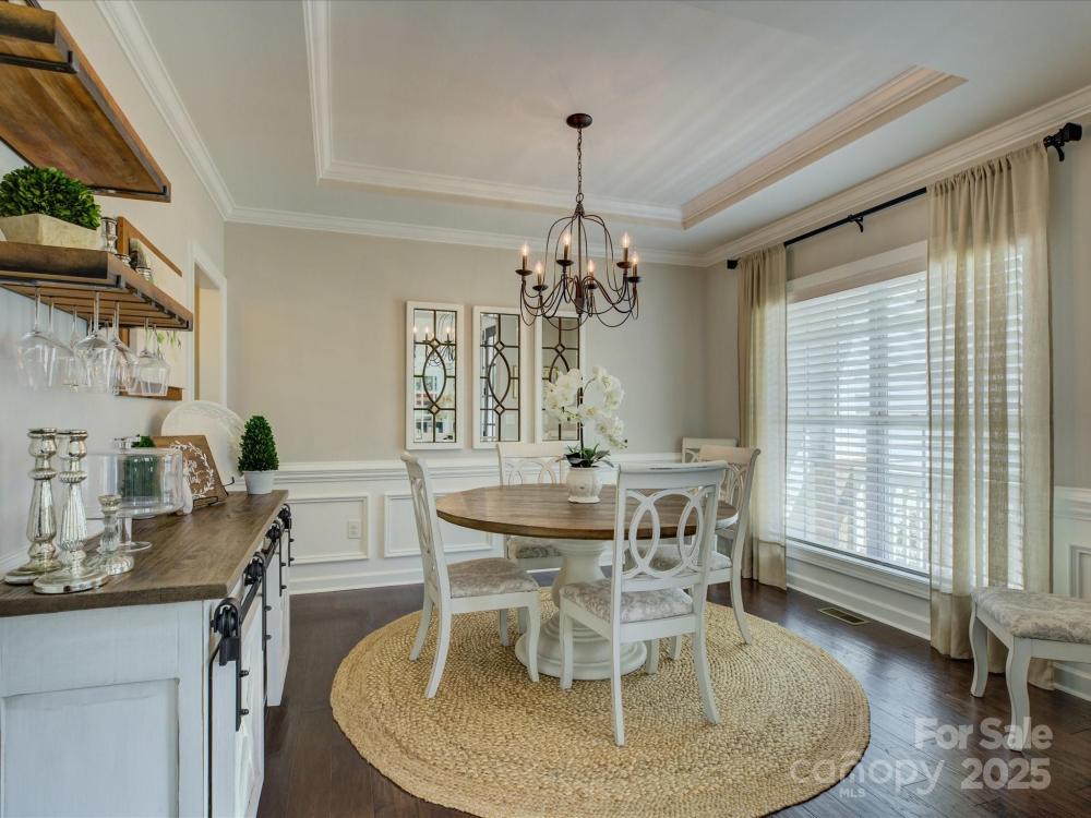 Beautiful cul-de-sac home located in the amenity-rich Palisades. The inviting rocking chair front porch welcomes you home, leading into a light-filled two-story foyer with a formal dining room on one side and a quiet, private French door office on the other. The elegant dining room, accented with a tray ceiling and wainscoting, offers the perfect setting for gatherings both casual and formal. The great room is drenched in natural light from the two-story windows and warmed by the stacked stone floor-to-ceiling fireplace. The gourmet kitchen features ample cream cabinetry, accented with granite countertops, an oversized prep island with room for bar seating, a gas cooktop accompanied by a stainless steel exhaust hood, a corner pantry, and a wall oven. The breakfast area opens onto an expansive deck overlooking a private wooded yard—a guest bedroom with a full bath on the main floor. Upstairs, the Primary suite includes a tray ceiling, a glass-enclosed shower, a soaking tub, a dual corner vanity, and a his & hers walk-in closet. The bonus room is perfect for entertainment or relaxation. It includes a closet and could be a 5th bedroom if needed. Spacious bedrooms 3 & 4 share a hall bath. A three-car garage provides plenty of space for vehicles, storage, or hobbies. This home has everything you're looking for in a country club-style community.