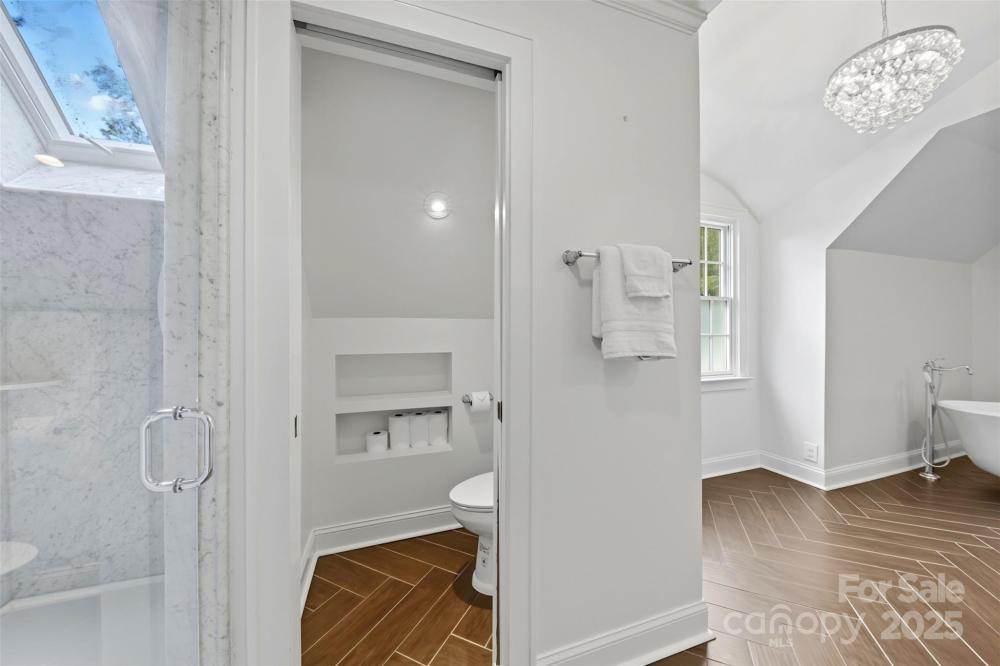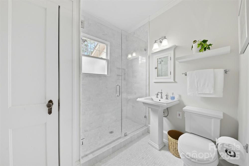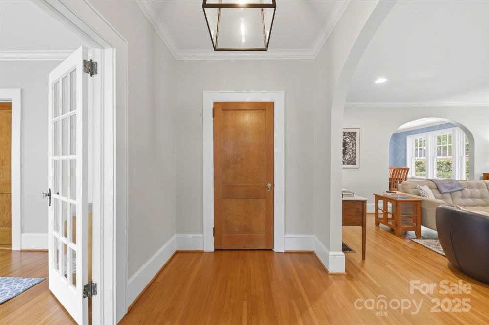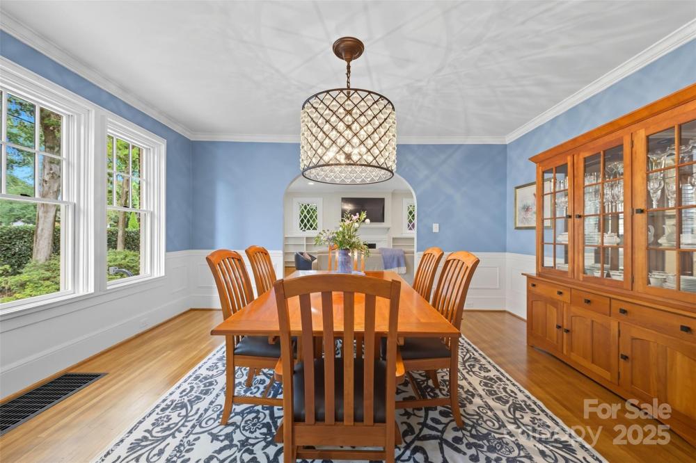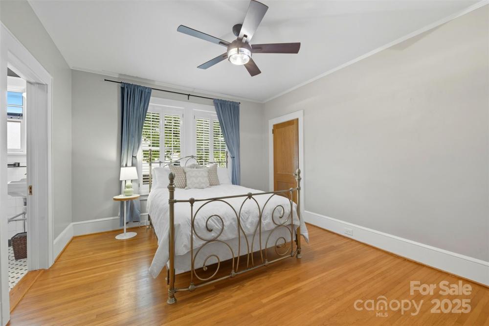 Welcome home to this charming Myers Park Tudor! This 3-bedroom, 3-bath home with an office sits on nearly half an acre, offering both privacy and convenience in one of Charlotte’s most desirable neighborhoods. No detail was missed—step inside through the custom Clark Hall front door to find arched doorways, original hardwood floors, plantation shutters, crown molding, and custom Pella windows, all paired seamlessly with thoughtful modern updates. The kitchen is a chef’s dream with stainless steel appliances, custom cabinetry, a large island, and granite countertops. Upstairs, the expansive primary suite includes an oversized walk-in closet, beautifully updated bath, and new carpet with original hardwoods underneath. Recent upgrades add comfort and peace of mind, including a new HVAC (2024) for the downstairs, electrical enhancements, new lighting and fans in the lower-level bedrooms, cozy gas logs in the fireplace, and a new sump pump. Outdoor living is equally impressive with fresh landscaping, a new 6’ privacy fence and 8' black gate, a custom handrail at the back steps, a Leaf Guard system, tree improvements, and updates to the driveway gate including new optical sensors and back up batteries. With a spacious mud/laundry room, abundant storage, and a walkable location near Providence Road Sundries, Pasta Provisions, Harris Teeter, and the best of Myers Park dining and retail, this home is the perfect blend of timeless character and modern convenience.