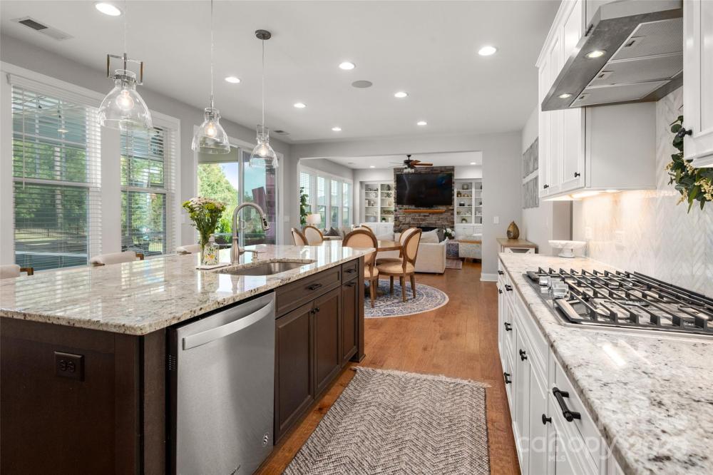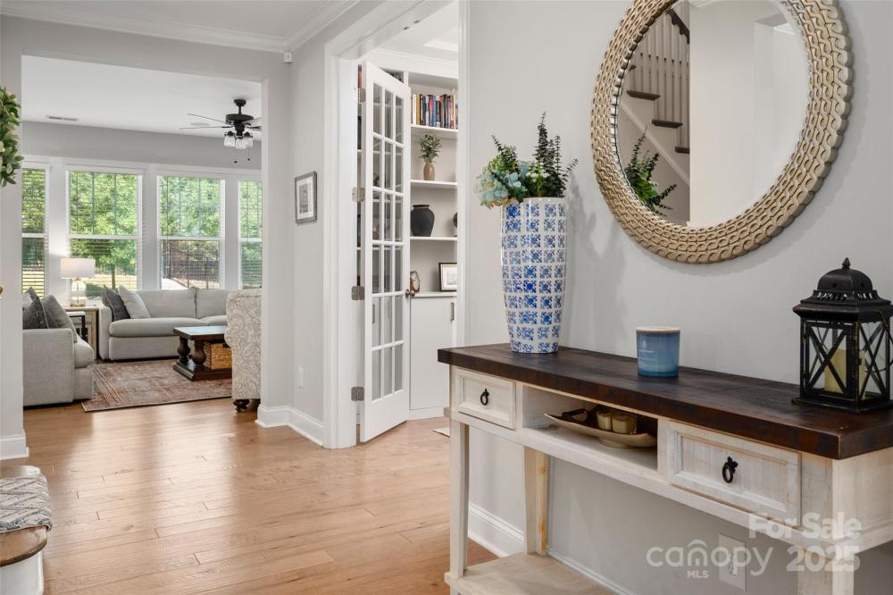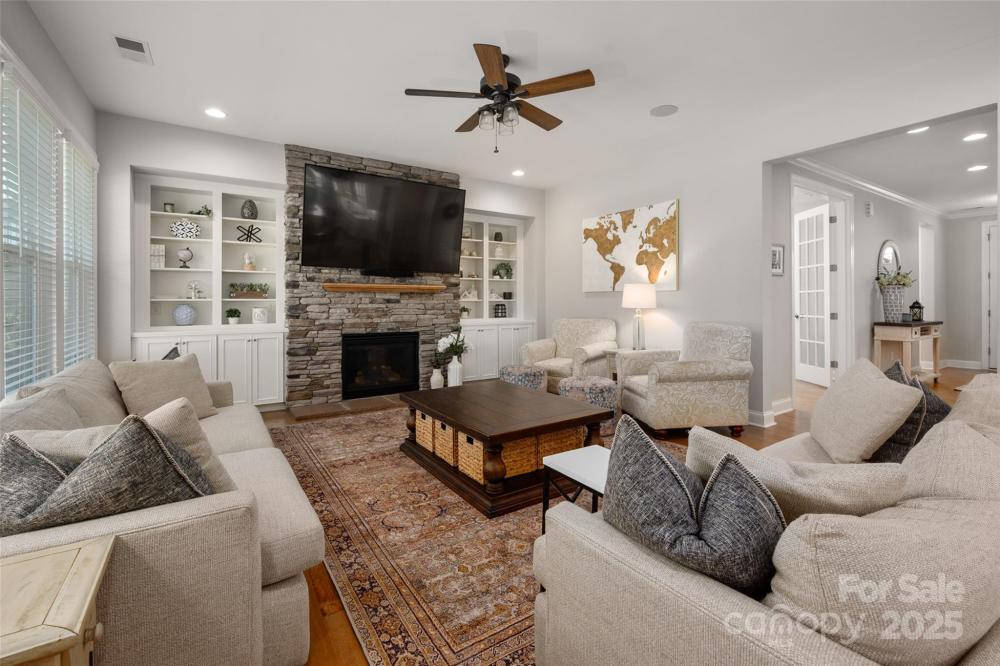 Welcome to this beautifully maintained and thoughtfully designed Craftsman-style home in the highly desirable gated Montage neighborhood in The Palisades, just a short walk to Palisades Episcopal School (K–8). Offering the perfect blend of timeless style and modern convenience, this spacious home features an open layout, high-end finishes, and flexible living spaces ideal for today’s lifestyle. The main level offers a private bedroom with full bath, perfect for guests or multi-generational living, along with a dedicated home office featuring beautiful moldings and natural light. Throughout the home, you’ll find elegant Craftsman accent walls, neutral tones, and abundant windows that flood the space with sunlight. The gourmet kitchen is a chef’s dream, boasting granite countertops, a large center island with seating, a 5-burner gas range, stainless steel appliances, butler’s pantry, and a walk-in pantry—providing both function and style. The kitchen flows seamlessly into the great room with a gas fireplace, creating a warm and inviting space for everyday living and entertaining. Step outside to enjoy the screened-in porch, perfect for morning coffee or relaxing evenings. The fully fenced backyard offers privacy, room to play or garden, and space to enjoy Carolina’s beautiful weather year-round. Upstairs, the luxurious primary suite features dual oversized walk-in closets and a spa-like bath with dual vanities, soaking tub, and separate shower. The laundry room, conveniently located on the upper level, includes a utility sink and storage for added functionality. A spacious bonus room with built-in Murphy bed offers versatility as a 6th bedroom, guest suite, media room, or playroom. Three additional bedrooms upstairs provide ample room for family, guests, or multiple work-from-home setups. Additional features include: Built-in surround sound system, tankless water heater, upstairs and downstairs office options, beautiful millwork and trim throughout, and smart thermostat and upgraded lighting. Located in The Palisades, this home is part of a resort-style community featuring miles of walking trails, a private residents’ club, pool, fitness center, playgrounds, and optional access to golf and tennis. With its close-knit feel, world class amenities, and proximity to shopping, dining, Lake Wylie, and major commuter routes, this is one of Charlotte’s most sought-after neighborhoods. Whether you're looking for space to grow, work-from-home flexibility, or a home that blends comfort and style, this craftsman gem checks all the boxes. Welcome home!