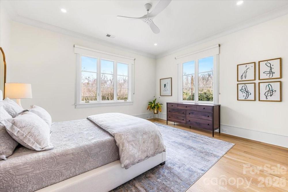 Located in the heart of Myers Park across from Freedom Park, this exceptional full-brick residence offers over 7,000 square feet of refined living space on a beautifully positioned 0.46-acre corner lot. Built in 2024, the home blends timeless architecture with thoughtfully designed modern comfort. The main level features expansive living and entertaining spaces, including a gracious dining room, elegant living areas, and a chef’s kitchen outfitted with premium appliances including a gas cooktop, beverage refrigerator, ice maker, tankless water heater, and more. A main-level primary suite provides convenience and privacy, complemented by a luxurious en-suite bath. An additional main-level bedroom offers flexibility for guests or office space. Upstairs, you’ll find four spacious bedrooms, multiple full baths, a bonus room, flexible living space, and additional laundry access, creating ideal separation and functionality for everyday living. Outdoor living is equally impressive with a heated in-ground pool and spa, in-ground hot tub, irrigation system, and a private fenced backyard designed for relaxation and entertaining. The circular driveway and side-facing three-car attached garage provide both convenience and striking curb appeal. Situated within close proximity to Dilworth, Sedgefield, and all that Myers Park has to offer, this home delivers luxury, location, and lifestyle in one of Charlotte’s most sought-after neighborhoods.