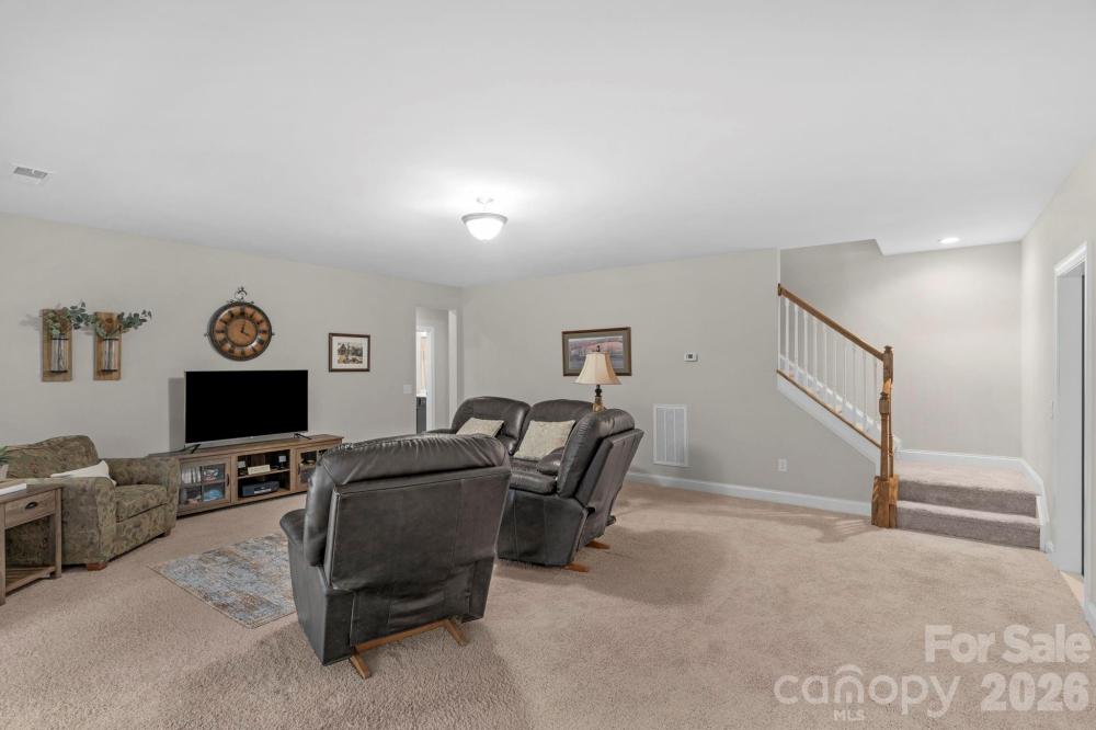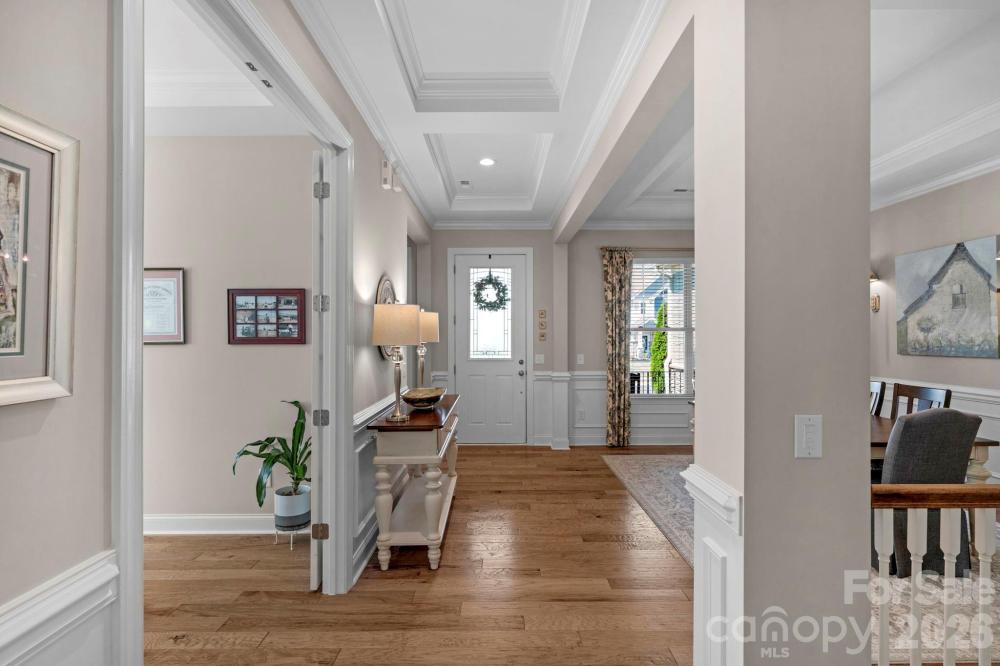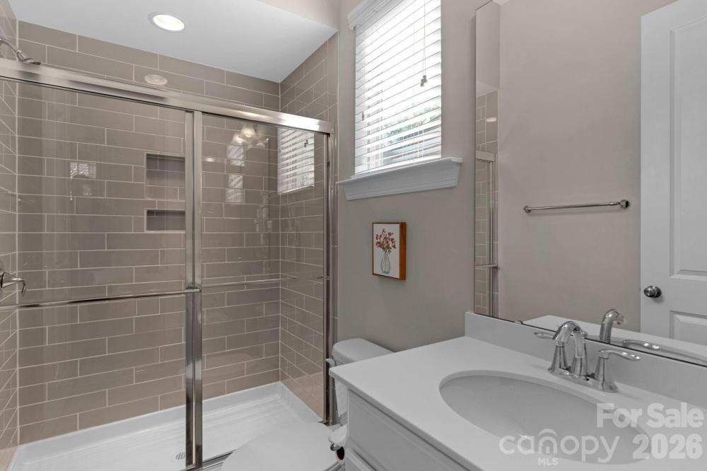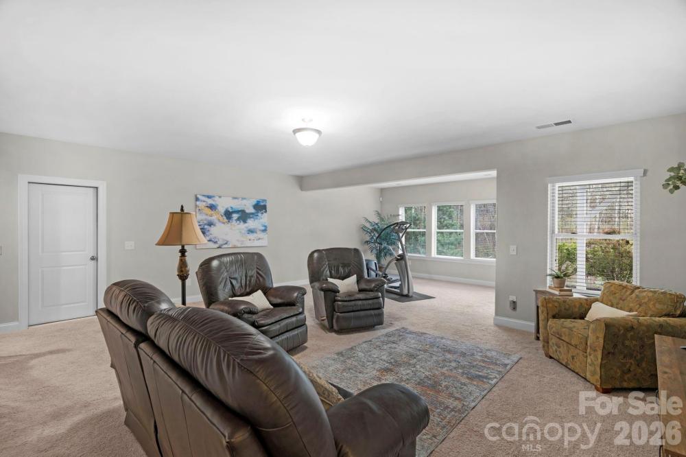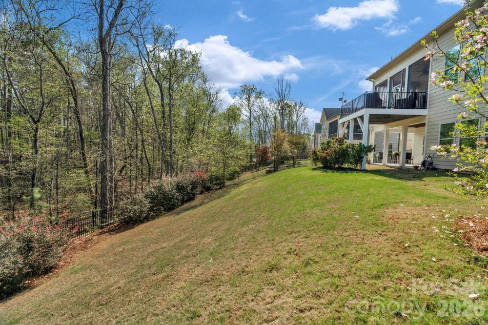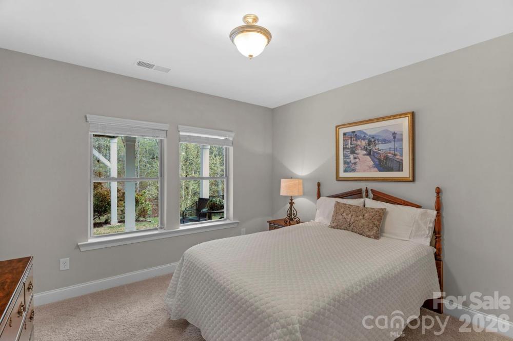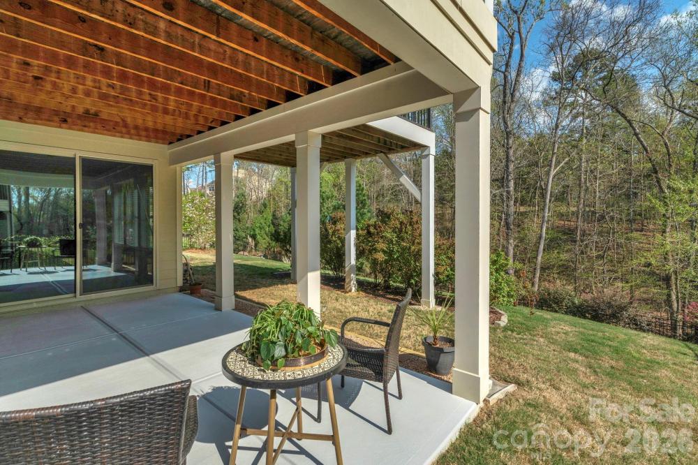 The details are the point in this meticulously maintained ranch with a finished basement and wooded views in The Palisades, Charlotte. Two suites on the main, a finished basement below — the kind of layout buyers search for and rarely find. Stone-accented front porch, soaring entry door, 10-foot ceilings, wide plank hardwood floors throughout the main level, crown moulding, custom lighting, and a kitchen built around a massive center island. The kitchen is the home's quiet showpiece with tile backsplash, walk-in pantry, and under-and-over cabinet lighting, 36-inch gas cooktop and wall oven. The primary suite is on the main level, private, huge custom tile shower and deep garden tub, walk-in closet and large picture windows showcasing the wooded nature outside. The guest suite is also on the main level with a full en suite with tiled shower. Step through the sliding glass doors to the generous screened porch with seasonal views of Lake Wylie through the tree line. Enjoy the outdoors more on the extended deck with composite decking and black vinyl railings. The open, south-facing layout floods over 2,500 square feet of main level living with natural light from morning through afternoon. In a quiet area of The Palisades with no through traffic, it's the kind of stillness that cannot be added later. The finished walkout basement expands the home considerably. A second living area, bedroom, full bath, and gym space make it a natural extension of the main level, or the foundation for a second living quarters. Beyond the finished area, an expansive unfinished section, over 1,600 sf, offers serious storage and genuine potential. A lower covered porch off the basement creates an indoor-outdoor rhythm across both levels. This home has been meticulously cared for. Professionally cleaned on a regular basis, HVAC-serviced regularly, and carries an active termite warranty. Front and rear in-ground irrigation. Neutral, elegant custom draperies remain with the home. The Palisades wraps this home in resort-style living. Pools, fitness center, pickleball, tennis, basketball, walking trails, and a residents' clubhouse within walking distance. The Palisades Country Club — Jack Nicklaus designed golf, tennis, pickleball, pool, and onsite dining — available by optional membership.