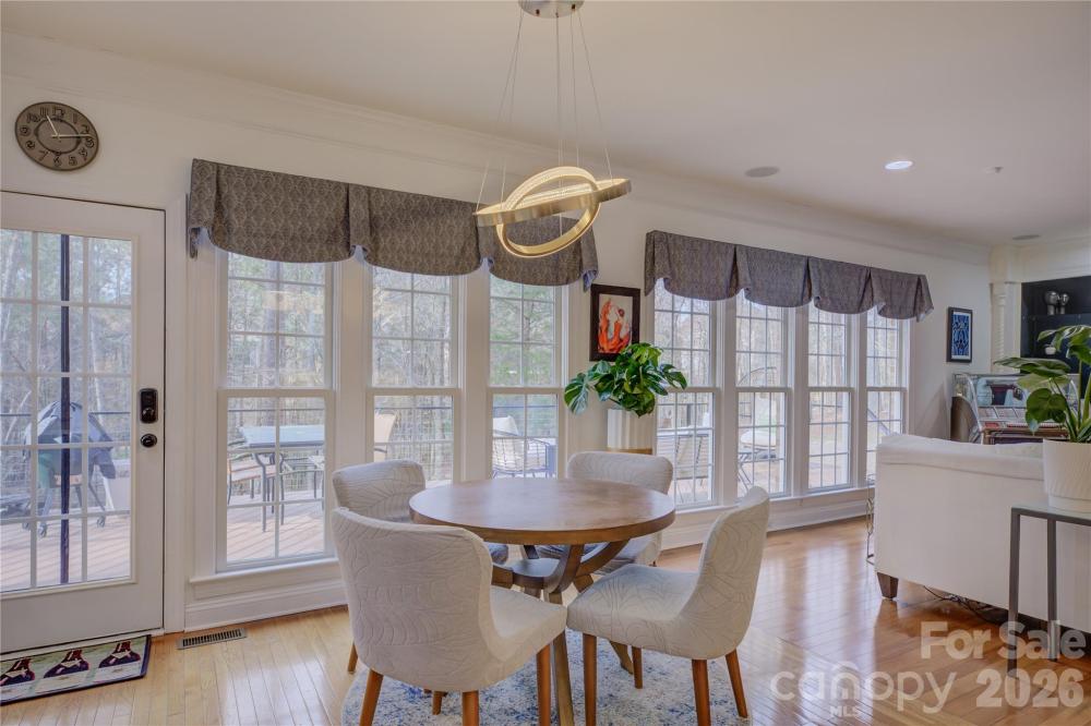 Tucked away on a quiet cul-de-sac, this full-brick home offers refined living on an oversized, private wooded lot with a fenced grassy play area that feels like a peaceful retreat. An impressive two-story foyer with a wood-tread staircase sets the tone, leading to a formal living room with a cozy fireplace and an adjoining dining room ideal for both formal and casual gatherings. The well-appointed kitchen features expansive granite countertops, an integrated 6-burner gas cooktop, an oversized island, double wall ovens, and abundant cabinetry. It opens to a bright breakfast area with a built-in wine refrigerator and access to a sun-filled Trex deck spanning half of the home. The great room is anchored by a second gas fireplace with custom-built-in cabinetry—perfect for entertaining and everyday living. A French-door study (or main-level guest bedroom) with a full bath adds flexibility. Upstairs, the spacious primary suite features a tray ceiling and a spa-inspired bath with dual vanities, a glass-enclosed tiled shower, a soaking tub, and an oversized walk-in closet. Three additional bedrooms, two full baths, and a versatile bonus room complete the second floor. A third-floor bedroom with a full bath and bonus space offers additional space to grow. Set amid natural beauty and paired with the luxury of sought-after country-club–style living, this home offers comfort, space, and timeless appeal. This home also features solar panels, whole house central vacuum system, and a new tankless hot water heater