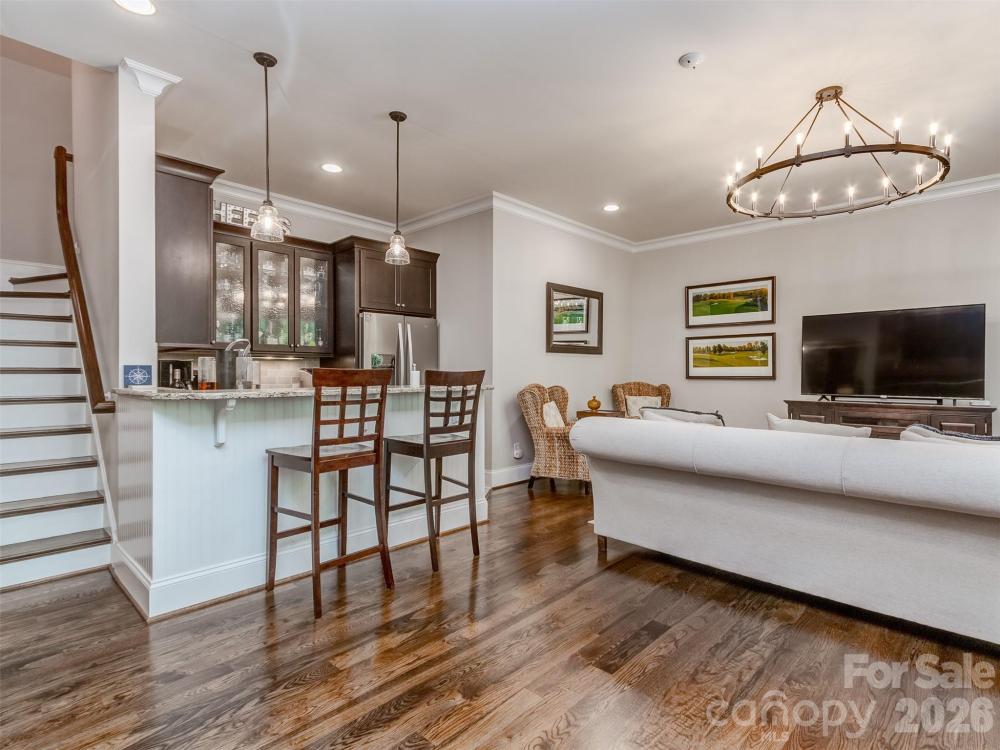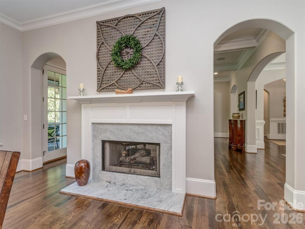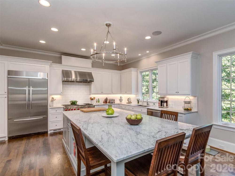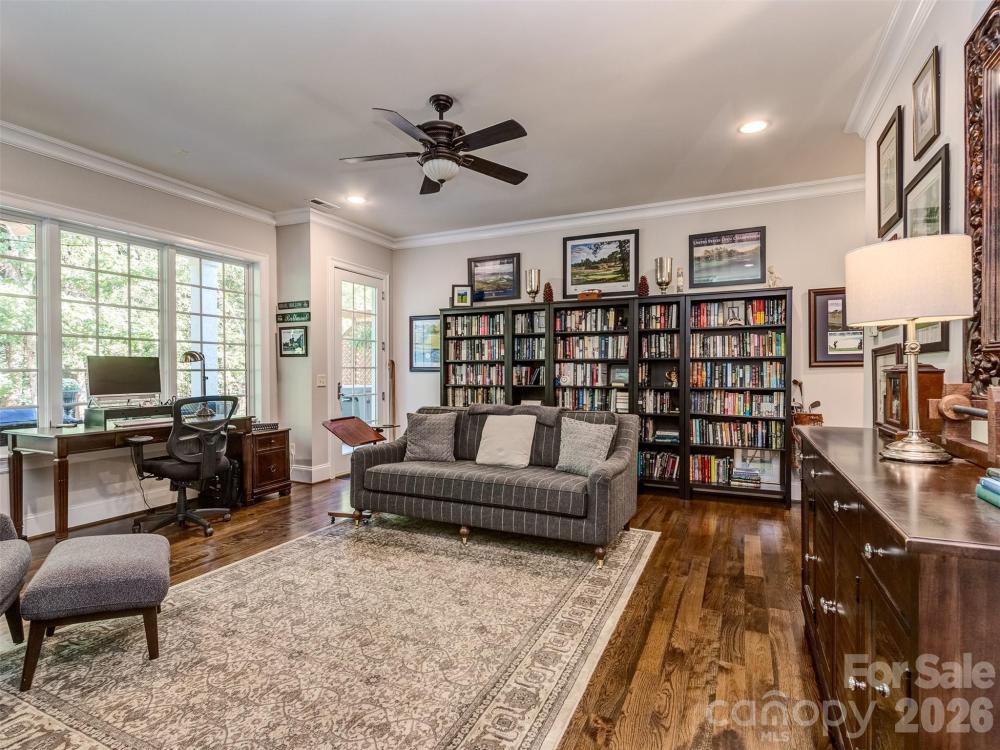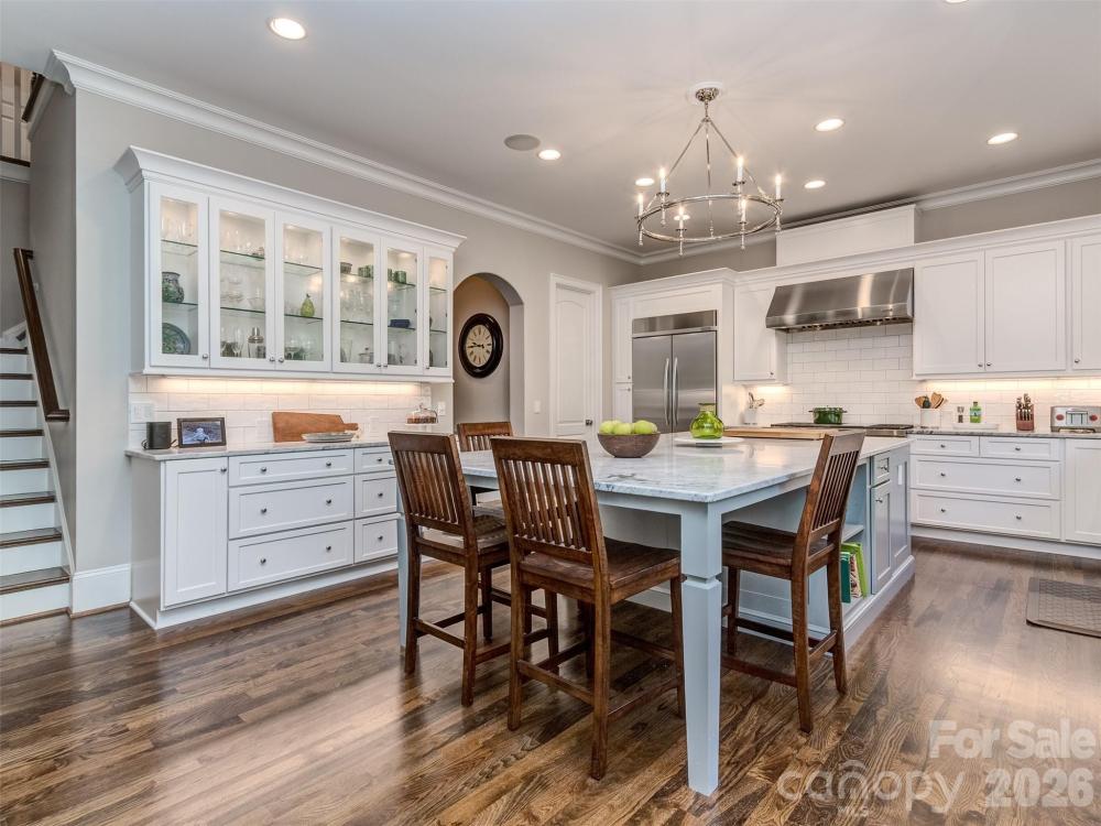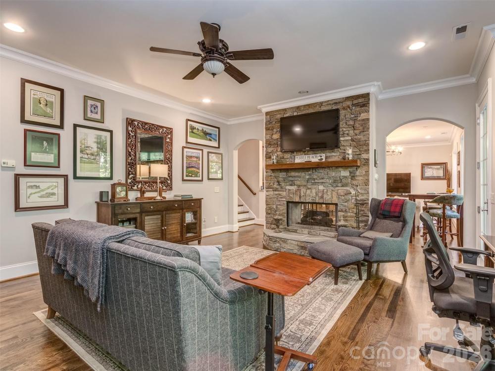 Welcome to The Palisades. This amazing Championship Golf Community is situated conveniently on the South Side of Charlotte and is flanked by Lake Wylie which straddles the North & South Carolina State Lines. Ashton Oaks, is the premiere gated section of The Palisades and backs up to the French Inspired Palisades Country Club and Club House. This French Provincial Styled Home has been completely updated from tip to tail! There has been no stone left unturned. You will see as you pull into the courtyard style parking area that the home has had the complete exteriors painted. The foyer welcomes you into this executive estate with all new site finished hardwood floors and is open to formal dining room and den. The dining room has smooth arched ceilings, chair rail, crown molding, and custom plantation blinds. The den features coffered ceiling, box bay window, cast stone see through gas log fireplace, and access to the covered rear porch. The gourmet kitchen has Honed Carrera Marble countertops, huge island, built-in KitchenAid Fridge, Wolf Gas Range/Oven, Subway Tile Backsplash, New White Cabinets, and more! Added features are the walk-in pantry, butler's pantry, and large private laundry. The main floor primary has vaulted ceiling, new site finished hardwood flooring, plantation blinds, recessed lighting, and crown molding. The primary bath has tile floor, custom vanity with storage tower, soaking tub, and walk-in shower. The 2nd floor features 3 spacious guest rooms all with site finished hardwood flooring and 2 large guest baths as well as a large bonus room and 2nd floor home office. Plantation blinds adorn all of the 2nd floor windows as well. The basement is designed with entertaining in mind! With 2nd kitchen/bar, large great room, and huge den/study with stacked stone see through gas log fireplace, you will never run out of room to gather! The basement also features a guest room with a full bathroom that is perfect for a large home gym! The dual covered rear porches overlook the treed areas between the home and the Palisades Country Club! Gated community entry ensures privacy & security! Take a quick golf cart ride to the club and enjoy all that membership has to offer! Schedule a tour to see this amazing home today!