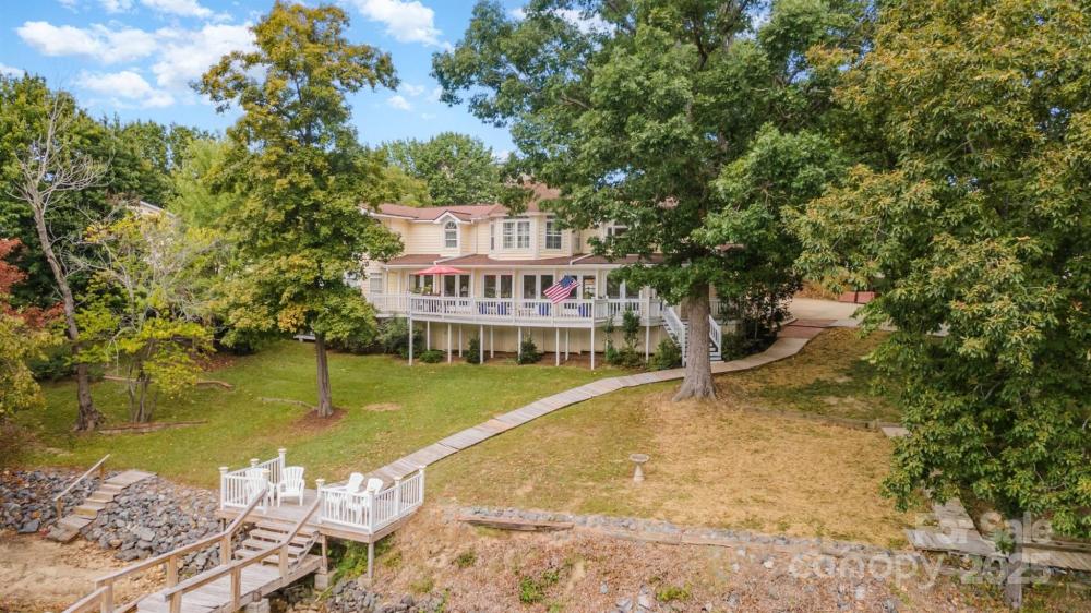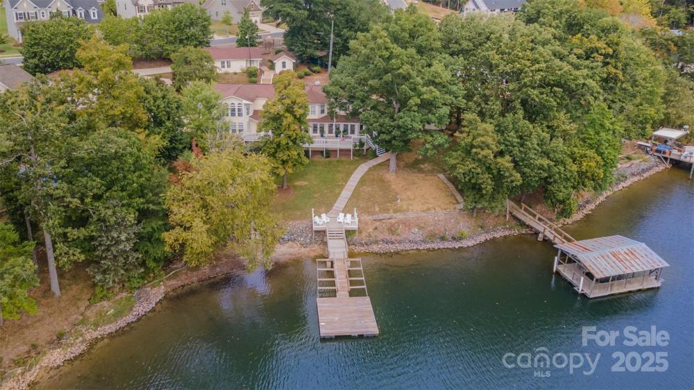 Located within an exclusive gated neighborhood inside The Palisades, this rare .73-acre waterfront property offers a lifestyle defined by tranquility and breathtaking natural beauty with NO HOA fee. Set along 185 feet of shoreline, this home delivers year-round panoramic views of Lake Wylie paired with 2 docks. Inside you’re greeted by open-concept living that opens directly onto a wraparound deck, offering seamless indoor-outdoor living where entertaining, dining, and relaxation all come with an incredible view. The primary suite is conveniently located on the main floor, while 4 additional bedrooms are on the upper level, most of which can be enjoyed by a lake view. This property is one of the very few with two deeded docks, giving you the flexibility to host multiple boats and watercraft- an extraordinary feature that sets it apart on Lake Wylie. Outside, the property includes a detached garage, a storage shed, and an additional utility space—perfect for keeping recreational gear, tools, and lake essentials organized and ready for use. This generous .73-acre lakefront property provides a special opportunity with a ton of potential.