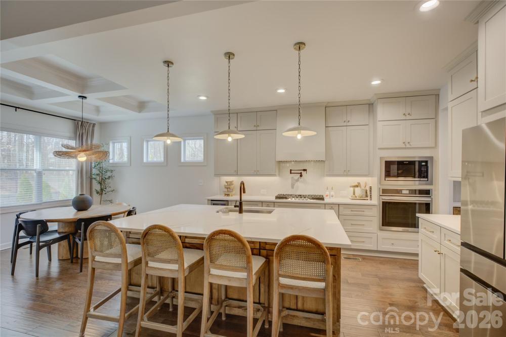 Fully renovated and truly move-in ready, this exceptional 4-bedroom Shea home is tucked on a private wooded lot in the highly sought-after Palisades community and features a resort-style pool. The bright, open floor plan features designer finishes, beginning with a dramatic two-story foyer that flows into a private den and an elegant formal dining room. A pass-through butler’s pantry offers ideal serving space and the perfect spot for a coffee or beverage station. The gourmet kitchen is designed to impress with a statement island, upgraded cabinetry, expansive countertops, premium stainless steel appliances, a beverage refrigerator, and a 36" gas cooktop with pot filler—opening seamlessly to the great room with custom built-ins flanking the fireplace. Just off the main living area, the spacious screened porch provides a comfortable, year-round space for relaxing or entertaining. The main-level owner’s suite is a standout, featuring a tray ceiling, spa-inspired bath with dual vanities, a freestanding soaking tub, a glass-enclosed shower, and an oversized custom walk-in closet. Upstairs, three generously sized bedrooms and a large bonus room offer outstanding flexibility for guests, work, or recreation. Outside, enjoy the showpiece backyard with pool, plus additional property beyond the fence line—an ideal blend of privacy, luxury, and lifestyle.