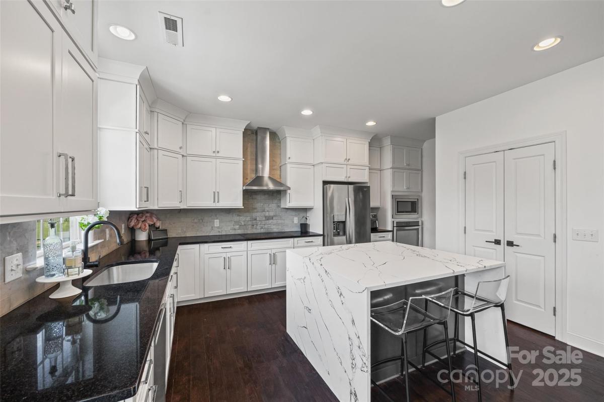 Stylish, spacious, and made for elegant living. From the fabulous curb appeal with in-ground irrigation to the amazing kitchen, every detail has been thoughtfully designed. Inside you will find your dream kitchen with a spectacular waterfall quartz island which opens to comfortable dining and living space-perfect for everyday moments and entertaining alike. Main floor bedroom and full bathroom, ideal for guests or flexible use. A dignified office with french doors makes a perfect work space. Upstairs step into your private retreat-an expansive primary bedroom with an airy layout and beautiful coffered ceiling creating a sense of calm and luxury. The impressive ensuite bathroom has an massive walk-in closet. Laundry room is conveniently located between the 4 bedrooms. The top floor versatile flex room w/ensuite bathroom offers endless possibilities-movie room, home gym, bedroom or playroom to suit your lifestyle. This home provides space, style, and location in one perfect package.
