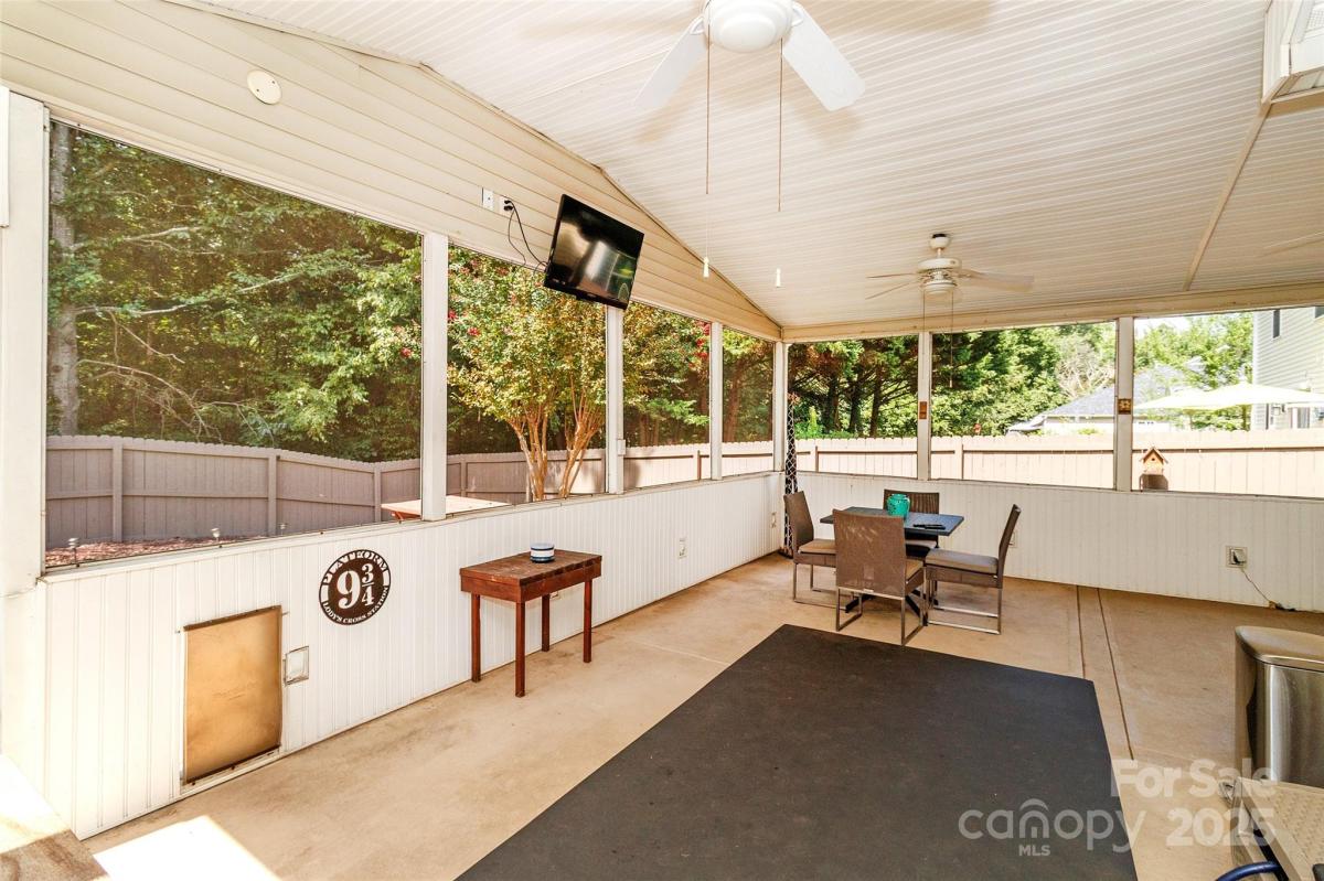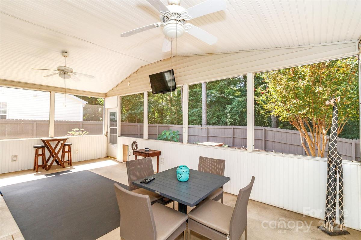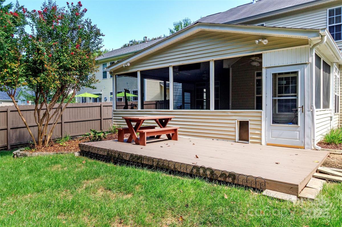 Highly desirable home located on the Cabarrus County side of Highland Creek - celebrated for its top-rated schools, charming curb appeal, and exceptional amenities. Perfectly situated on a “just-right” lot, you’ll enjoy a tree-lined backdrop with a tall privacy fence and a garden bed ready for your green thumb. The WINNER is the expansive screened porch with ceiling fans—an “extra” space you’ll wonder how you ever lived without! Inside, the open floor plan features a "sunroom" like breakfast room with a raised ceiling. Updates: modern fixtures, ceiling fans throughout, granite countertops, stainless steel appliances, and upgraded blinds. Brand new 2025 HVAC system! A pristine Garage with a new belt/motor, Wi-Fi system, keypad entry, and finished walls. Where else can you hit multiple pools & playgrounds, play pickleball, golf, join the swim team, bike to the fitness center, and so much more! Minutes away from shops, restaurants, and easy access to 485. Home has been pre-inspected and repairs have been made. We will share report and all receipts!