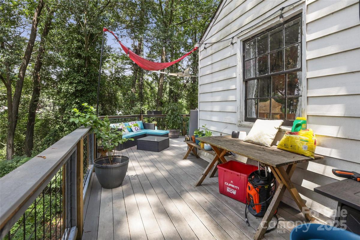 Tucked away in the heart of Plaza Midwood, just a stone’s throw from NoDa, this home is full of charm, potential, and possibility. This cozy 3-bedroom, 1-bath home offers just under 1,000 square feet of living space, with an updated kitchen that makes everyday cooking a breeze. Out back, you’ll find one of the home’s best-kept secrets: a wraparound deck that feels like a private retreat. Nestled in the trees, it gives mountain vibes, right in the city—perfect for morning coffee, evening cocktails, or gathering with friends. It’s the kind of outdoor space that makes you want to stay a while. The homesite backs up to an area being revitalized by the City of Charlotte to include new sidewalks, bike lanes, and crossings. Whether you walk, ride, or drive, getting around will soon be even easier. There’s a basement for storage or future living space. Whether you’re ready to move right in, plan a remodel, or build something new, this property offers flexibility for whatever’s next.