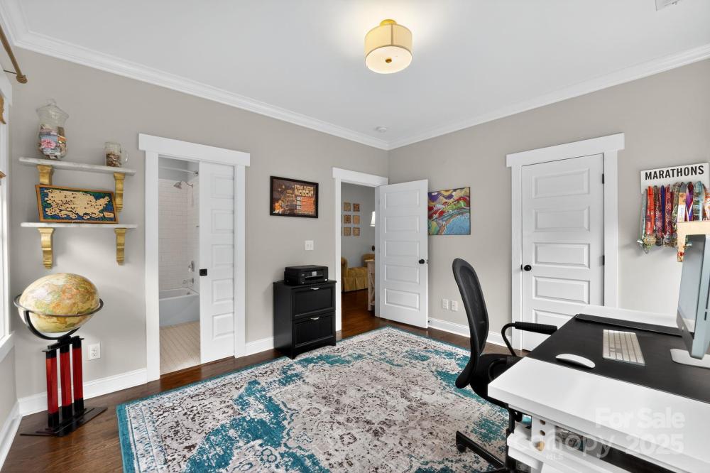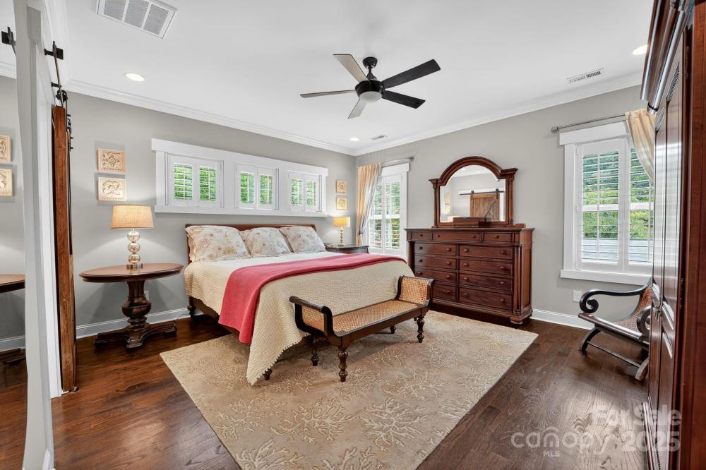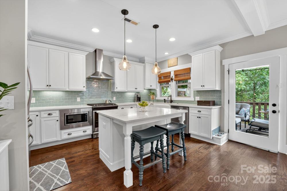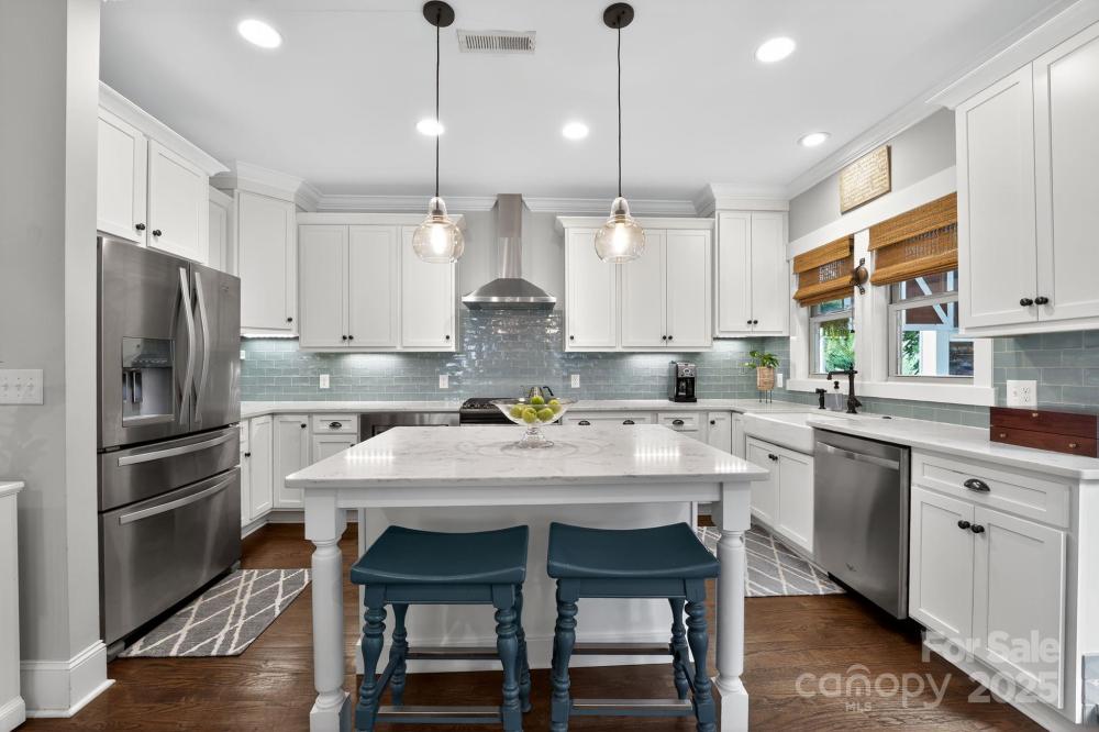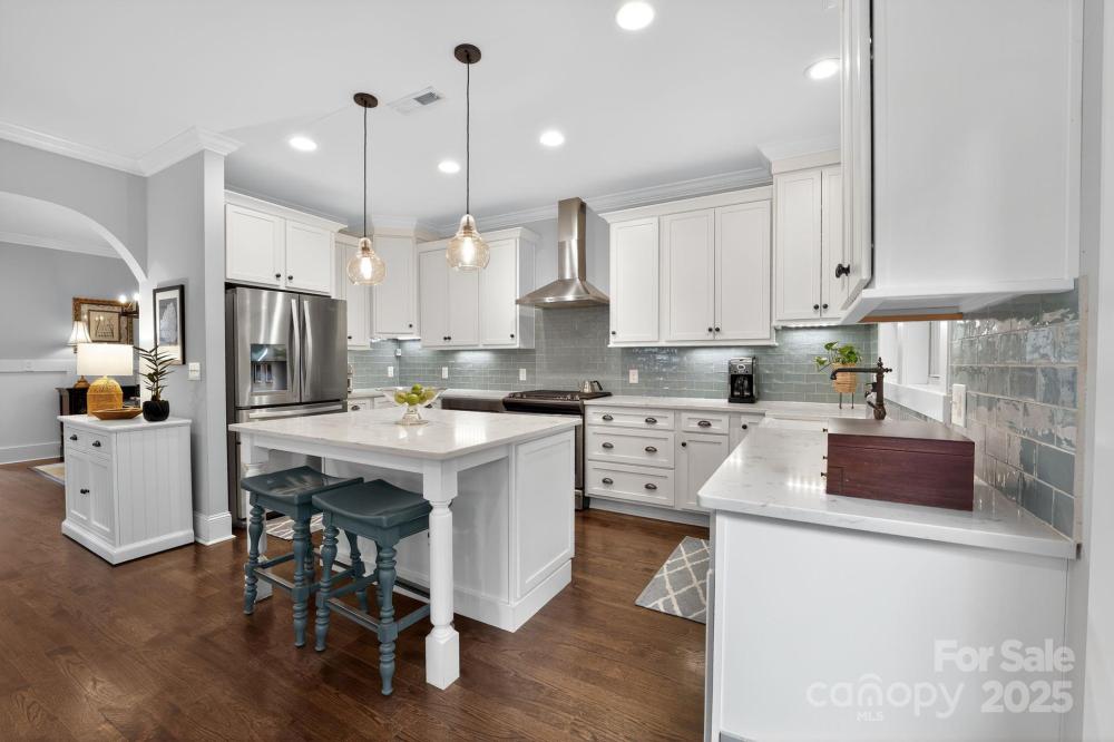 Nestled in the heart of one of Charlotte's most cherished historic neighborhoods, this home offers exquisite detailing throughout with an expansive & welcoming front porch, gracious light filled open & flowing spaces, judges paneling, coffered ceilings, archways, and hardwood floors throughout the entire home. This home has been featured on the Plaza Midwood Home & Garden tour. Kitchen offers shaker cabinets topped with quartz counters/SS appliances and farm sink, and an island with built in beverage fridge. Built in custom dog bowl and hidden nook under the stairs, perfect for furry friends or little ones! Living room features gas fireplace. Master has large closet & spa bath w/free standing tub/oversized shower/double quartz topped vanity, Oversized attached garage, and incredible back patio space with TV and built in grill, fully fenced in front yard and privacy fence in the back. Right next to Midwood park, and an easy stroll to all that vibrant Plaza Midwood has to offer!