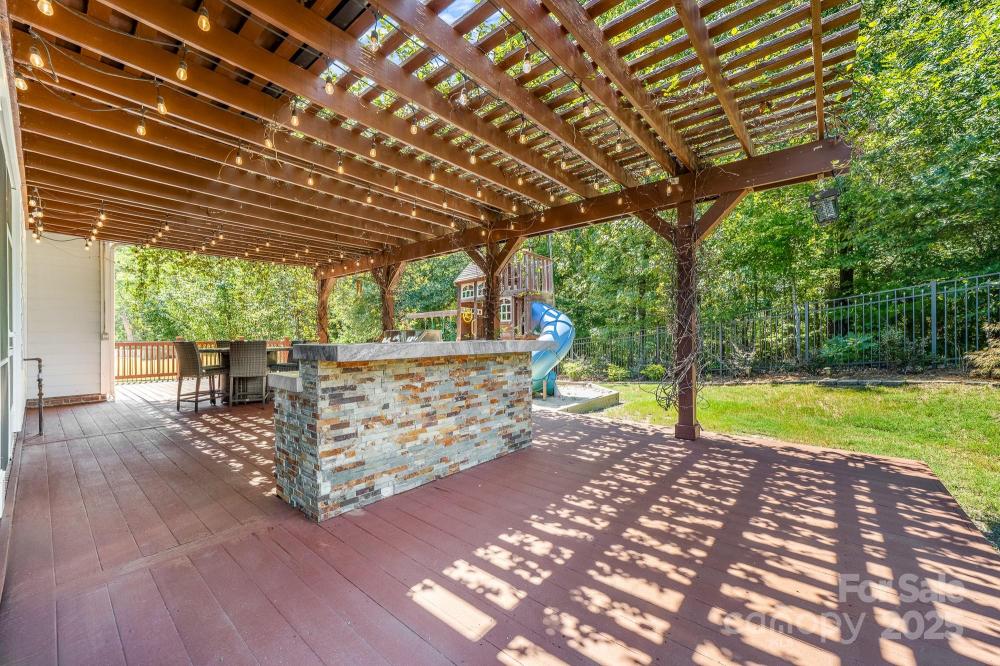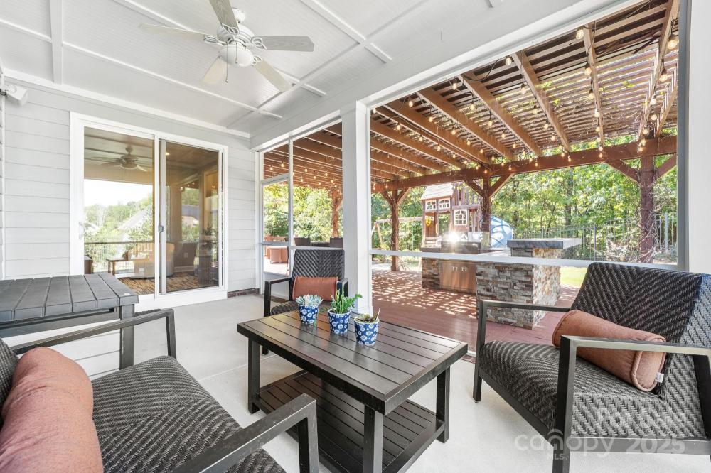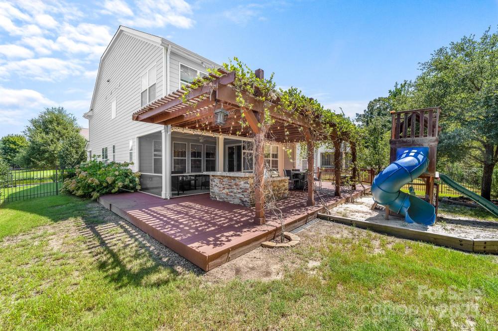 Welcome to this beautifully designed five bedroom, four bath home located in the highly sought after Palisades community of Charlotte. Perfectly situated on a large, private lot. This residence offers over 3500 ft.² of elegant living space thoughtfully crafted for both every day, comfort and memorable entertaining. Step inside to a bright and welcoming foyer that sets the tone for the homes inviting style. A private office with French doors offers the perfect spot for remote work or study. The spacious great room features custom built-in and a cozy fireplace, making it an ideal gathering place for family and friends gourmet kitchen is a true centerpiece, boasting a large island with seating, walk-in pantry, ample cabinetry, and a breakfast area that flows seamlessly into the outdoor living spaces. Also, on the main level is a guest bathroom with a full bath, providing privacy and flexibility for visitors, as well as a drop zone off the garage for every day convenience. Upstairs, retreat to the luxurious primary suite where comfort meet sophistication. Enjoy a private sitting area, spa like bath with dual vanities, soaking tub, separate shower, and dual walk-in closet. Three additional bedrooms and two full baths offer plenty of space for family and guests. A large laundry room and generous flex space rounds out the upper level, giving you room to relax, play or create a media or fitness space. Outdoor living is where this home truly shines. A screen porch opens to an expansive deck complete with outdoor kitchen, fire pit, and fully fenced backyard. Whether hosting a summer cookout, enjoying a crisp fall evening by the fire, or savoring a quiet morning coffee, this space is designed to be enjoyed year round. Living in The Palisades means access to exceptional lifestyle. Residence enjoy world class amenities, including a clubhouse, fitness center, outdoor pool, playground, sport courts, tennis, and a scenic walking trails. The community is just minutes from Lake Wylie, offering endless opportunities for boating and recreation, as well as convenient access to shopping, dining, and highly rated Schools. This home, perfectly blends, luxury, function, and lifestyle in one of Charlotte‘s most desirable neighborhoods. Don’t miss the opportunity to make it yours. Safe in office is a fixture and will remain with the home.
