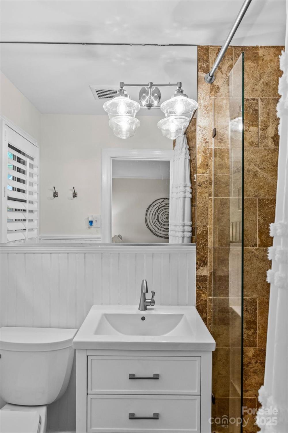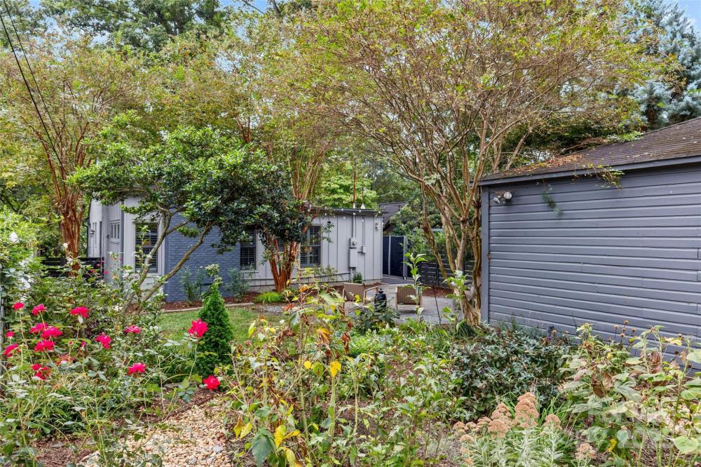 Welcome to the most enchanting cottage in the heart of Plaza Midwood! Overflowing with character, this home effortlessly blends timeless details—like real movable wood shutters and classic arched openings—with thoughtful modern updates, including replaced double-hung windows, a GE Monogram gas stove and the most charming garden. The open floor plan makes entertaining a delight, anchored by two cozy fireplaces and complemented by both formal dining and living rooms. The kitchen shines with updated quartz counters and a farmhouse sink, pairing classic style with modern function. Upstairs, the loft-style suite offers a dreamy retreat—perfect for guests, a creative studio, or a quiet work-from-home escape. Outdoors, the storybook front porch sets the stage for lazy mornings with coffee, while the mature, landscaped garden in the backyard provides a lush private oasis for relaxing or entertaining. Practicality meets charm with a highly coveted garage—an uncommon luxury in Midwood. Nestled on one of the neighborhood’s most beloved streets and just half a mile from Midwood Park, this home offers an ideal balance of historic character, modern comfort, and everyday convenience. Please note: less than 50% of the upstairs finished conditioned space (346 SF) falls below 7' height.