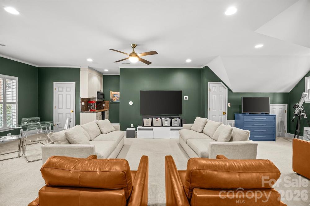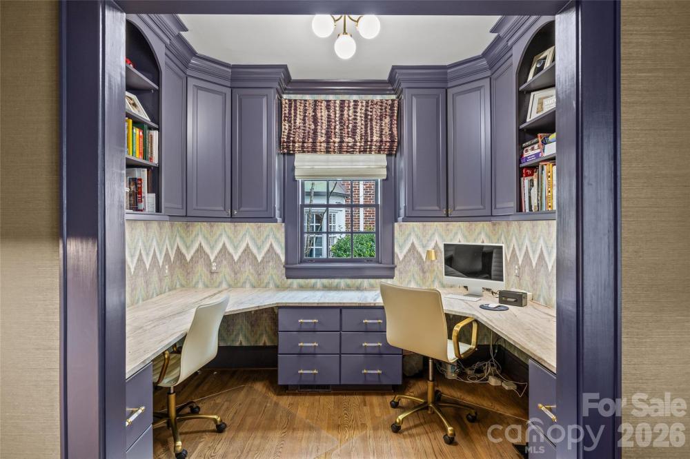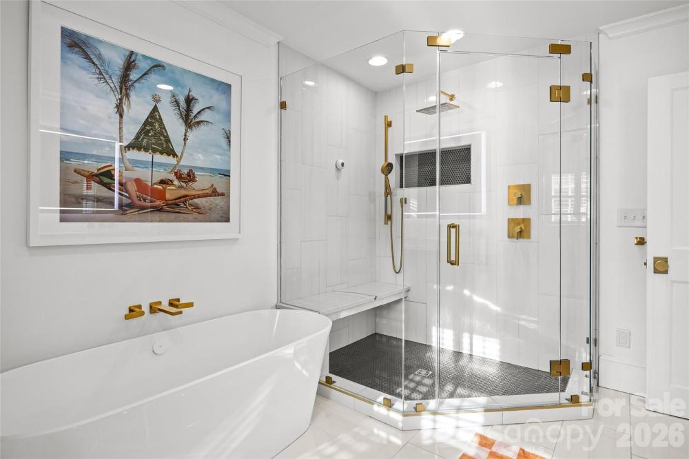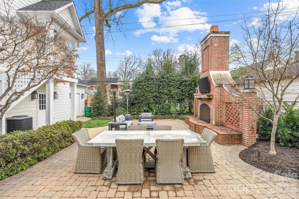 LUXURY LIVING IN MYERS PARK! This spectacular residence exudes timeless elegance. Thoughtfully designed for effortless entertaining and comfortable everyday living, the home showcases exceptional craftsmanship and high-end finishes throughout. The main level features a spacious living room with fireplace and an elegant dining room ideal for gatherings. A show-stopping chef’s kitchen opens seamlessly to a fireside family room and a bright, sun-filled breakfast area, creating the perfect heart of the home. A convenient side entry with drop zone and built-ins adds everyday functionality. Upstairs, the primary suite offers a serene retreat with a beautifully appointed ensuite bath featuring dual vanities, soaking tub, walk-in shower, and two generous walk-in closets. Three additional bedrooms and a large laundry room complete the upper level. Above the detached two-car garage, a private guest suite or bonus room with full bath provides flexible space for guests, a home office, or recreation. Outdoor living is equally inviting with a patio and fireplace overlooking the private backyard with mature landscaping ideal for relaxing or entertaining year-round. Ideally located just moments from the shops, restaurants, and amenities of the Myers Park area.