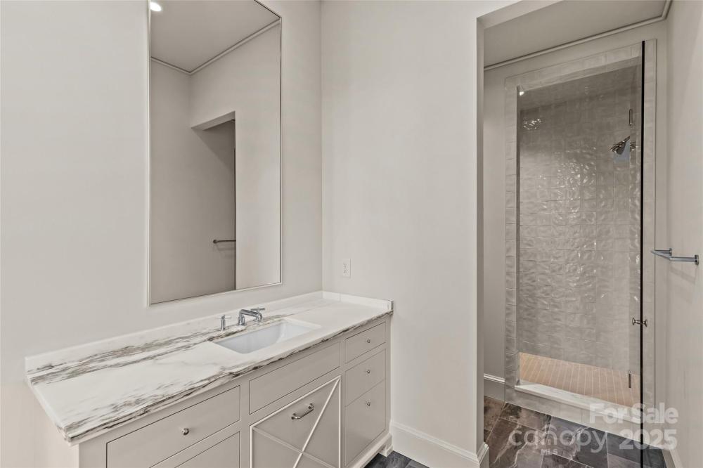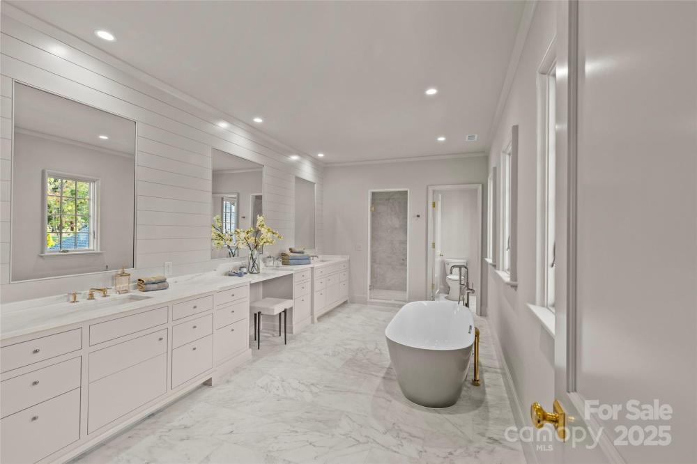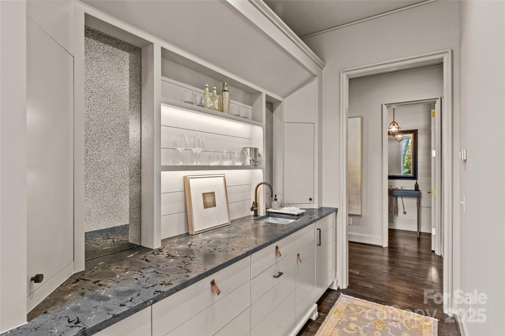 Stunning new construction by Bourgeois McGinn Builders, this Myers Park residence offers 6,280 sq/ft of refined living space with 5 BR/5.5 BA and exquisite custom details throughout. The arched foyer leads to formal living and dining rooms, each with elegant finishes including designer lighting and custom millwork. The Chef’s kitchen boasts marble countertops, custom cabinetry and tongue-and-groove trim, Wolf 48” gas range, paneled Sub-Zero/Cove appliances, plus an adjoining scullery. Wet bar features quartzite counters, antique mirror backsplash, and Sub-Zero beverage fridge. The family room opens to a covered blue-stone terrace with cedar columns, wood-burning fireplace, in-ceiling heaters, and grilling station overlooking a professionally designed yard with brick privacy wall. The main-level guest suite, intimate lounge, and office provide flexible living spaces. Upstairs, the luxurious primary suite features two walk-in closets and a spa-like bath with heated marble floors, freestanding soaking tub, and marble shower. Three additional bedrooms with en-suite baths, a bonus room, and laundry complete the upper level. Additional highlights include 10’ main-level ceilings, cast-stone fireplaces in the living room, family room, and lounge, red oak hardwoods, and custom closets. Rare detached two-car garage! Too many additional features to list- a remarkable blend of craftsmanship, function, and timeless design in one of Charlotte’s most coveted neighborhoods.