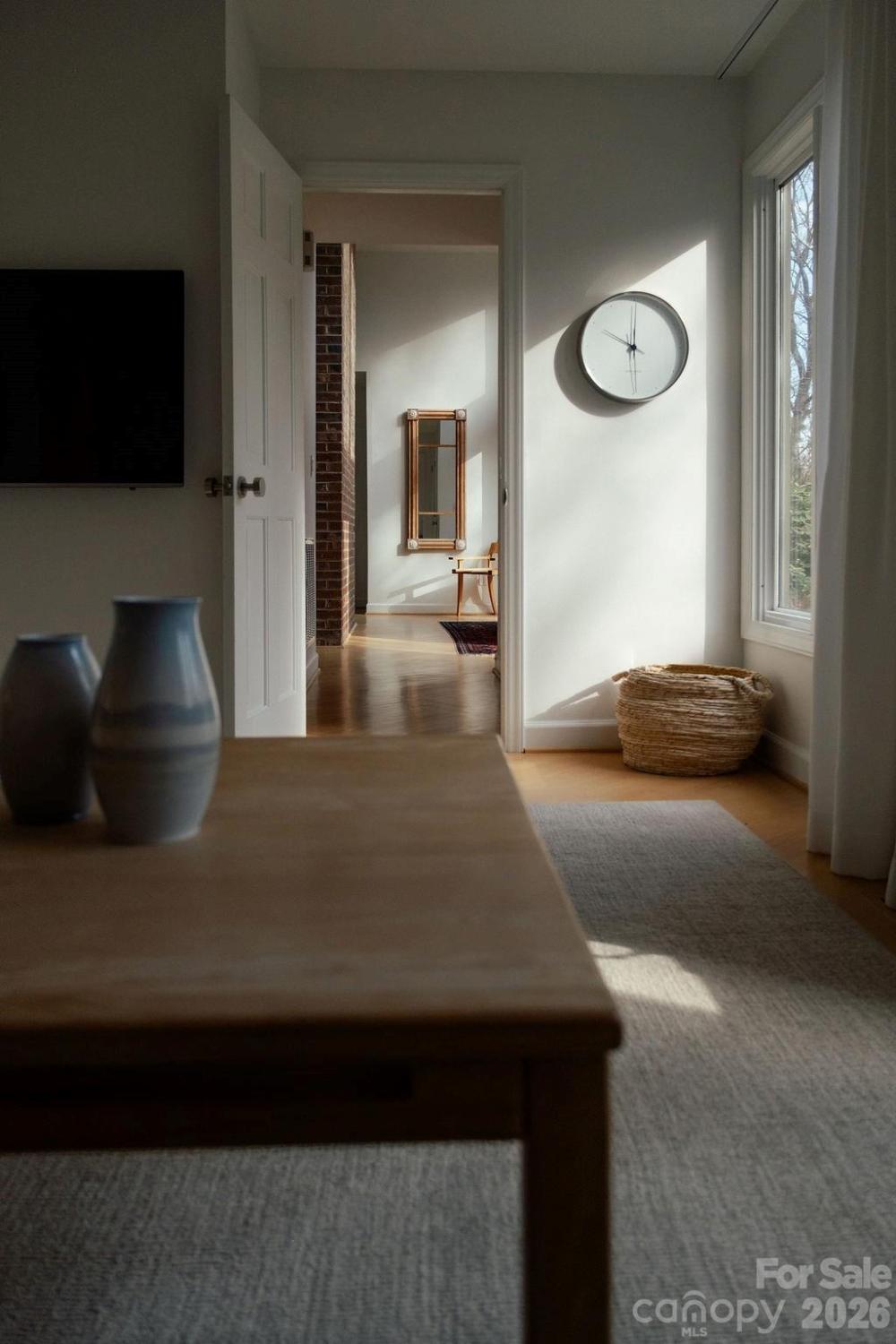 Escape to Your Private Wooded Retreat in Providence Plantation. Discover the perfect harmony of nature and design at 2412 Houston Branch. Sitting on almost two acres of private serenity, this meticulously maintained home was designed and built by the current owners in 1980. Step inside to experience a perfect fusion of Mid-Century character and crisp Scandinavian influence, where walls of windows flood the space with light and truly bring the outdoors in. The heart of the home is the stunningly renovated kitchen, designed as much for function as for style. It features a massive eat-in island with huge deep drawers and a spacious pull-out pantry, ensuring an incredible amount of storage. The thoughtful floor plan includes a coveted primary suite on the main level and renovated bathrooms throughout. Need room to grow? The finished, climate-controlled space above the attached garage is ready for your vision. In the spring the grounds showcase natural flower beds that have been cared for over decades. Whether you are an avid gardener or just enjoy the view, you’ll appreciate the additional fenced-in raised bed garden—perfectly designed to keep your summer harvest safe from your woodland neighbors, the deer. Complete with an IPE deck to enjoy all seasons out in nature. Come see for yourself why this unique property is the perfect setting for your next chapter.