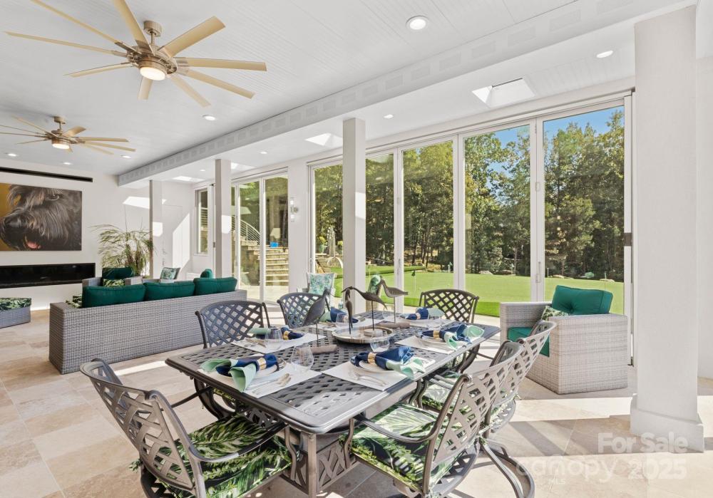 Reintroduced to the market, this grand estate blends comfort and lifestyle, with over $2 million in thoughtful additions and enhancements by Simonini and Alair. Set on 1.4 acres, boasting an open floor plan, bedrooms on each floor, an updated chef’s kitchen with access to the outdoor kitchen, saltwater spa, and fireplace. Inside, a 15’ butler’s pantry leads to a Four Seasons greenhouse. Iron double doors frame the main level with an enlarged office, 1 of 2 laundries, and a spacious primary suite with access to the tiled balcony. The lower level hosts a new 2nd living area with its own kitchen, living room, and access to the solarium—an addition with heated travertine floors, linear fireplace, and 10’ high folding glass doors opening to a 60’ putting green, bocce court, and over 6,000ft² of travertine patios to enjoy fireside in the landscaped backyard. The upstairs has an added 600ft² walk-in closet, 2nd laundry, and 3 bedrooms, making each floor flexible for living and entertaining.