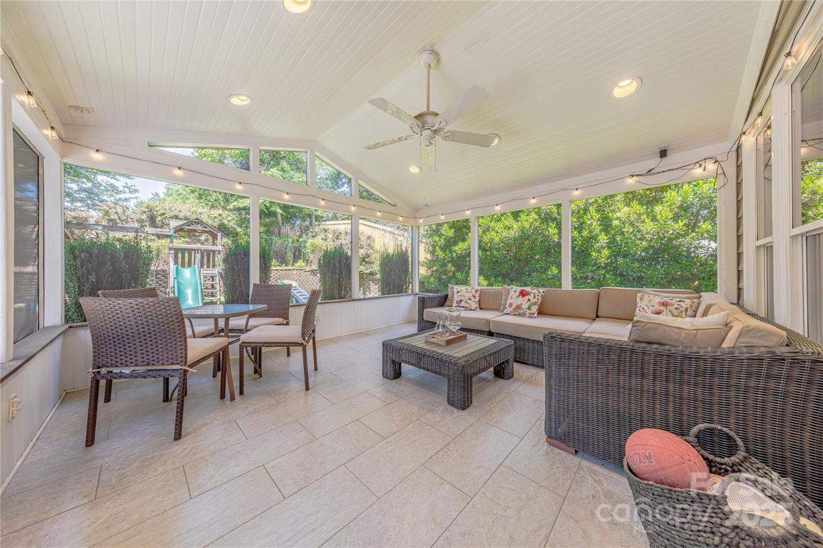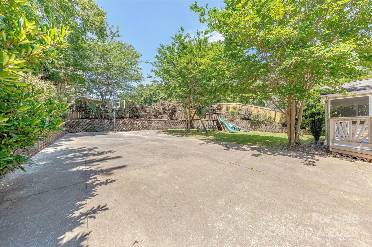 Situated on a premium elevated lot in Providence Plantation, this home is guaranteed to impress. A grand 2-story foyer welcomes guests with richly finished hardwood floors that run throughout & is flanked by formal living room & flexible study w/ built-ins. Prepare to be impressed by the dramatic great room w/ vaulted ceiling and floor to ceiling windows filling the home w/ natural light complete with pass-through fireplace to the flexible bonus space. Chef’s kitchen features ample 42” cabinets, granite counters, double wall oven & gas cooking. Oversized primary suite features a spa-like bathroom w/ garden tub, glass enclosed shower, double vanity & walk-in closet. 3 additional generously sized bedrooms on the second floor. Relax on the screened in porch overlooking the flat backyard and entertaining deck, complete with paved play area/basketball court. Conveniently located in one of South Charlotte’s most desirable neighborhoods with top rated school assignments, this is a must see!