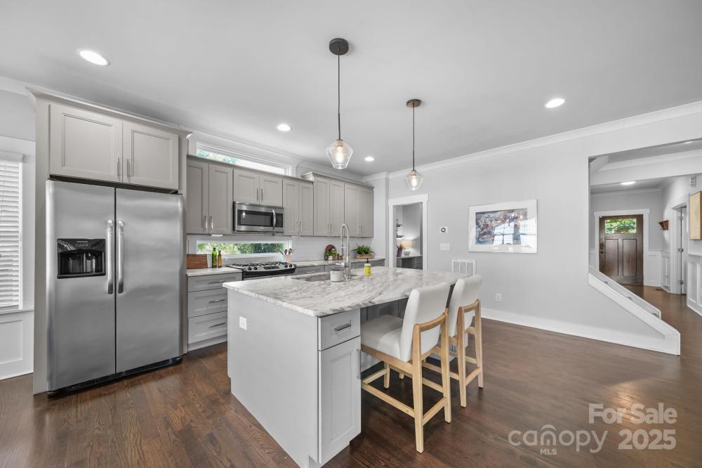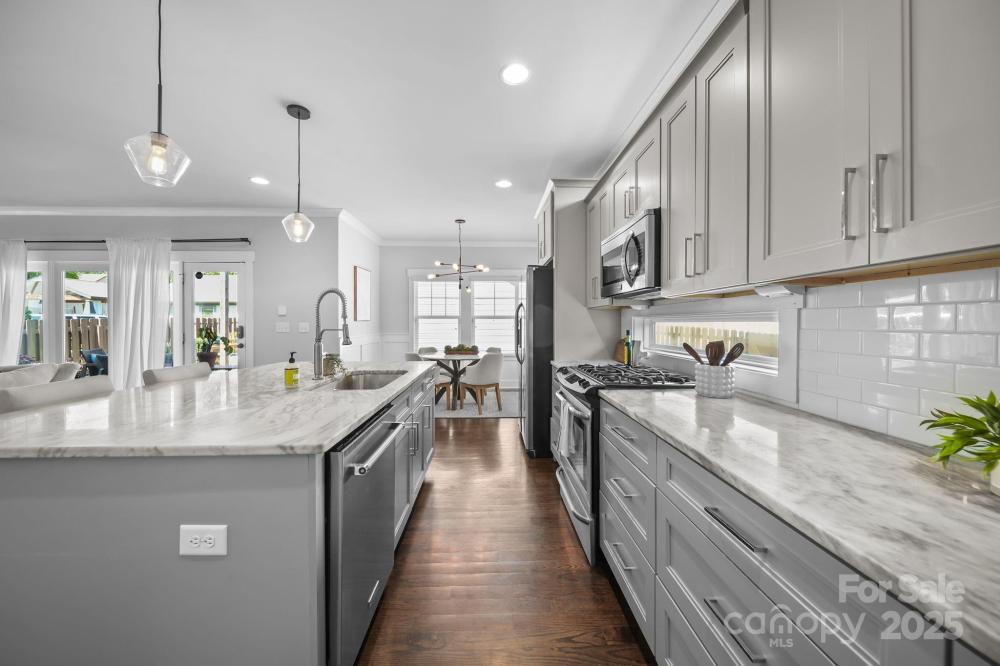 The perfect home in the perfect location does exist! This 2016 custom craftsman with 4 bedrooms and 3 full baths is located in Midwood but is also right next to NODA and features a fantastic open floor plan with plenty of space for entertaining. The gorgeous kitchen with large island overlooks the light filled living room with fireplace and breakfast nook, and the formal dining room with that butler’s pantry you’ve been wanting is the ideal spot to set a spectacular table for more formal affairs. The main level also features a spacious office space/4th bedroom with its own full bathroom. Head upstairs to find an expansive primary suite with private en-suite, spa-like bathroom that includes a freestanding tub, double vanity and luxury shower. The primary suite is further enhanced with a walk-in closet with upgraded shelving and drawers. Two additional bedrooms share a jack and jill bathroom, and a sizeable laundry room completes the upstairs. Don’t miss the fully fenced backyard with large deck, paver patio and fire pit, your very own pub shed and a detached 2 car garage. Residents can anticipate enhanced connectivity and walkability with the upcoming Matheson Avenue Street Conversion, expected to be completed by the end of 2025. This project will introduce new bike lanes, a more pedestrian-friendly route to NODA and the light rail, and a reduction in vehicle travel lanes. For more details on this transformative project, visit https://www.charlottenc.gov/Growth-and-Development/Projects/Matheson-Conversion.