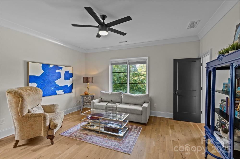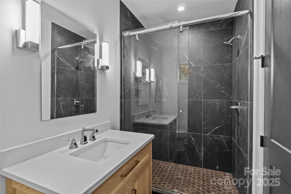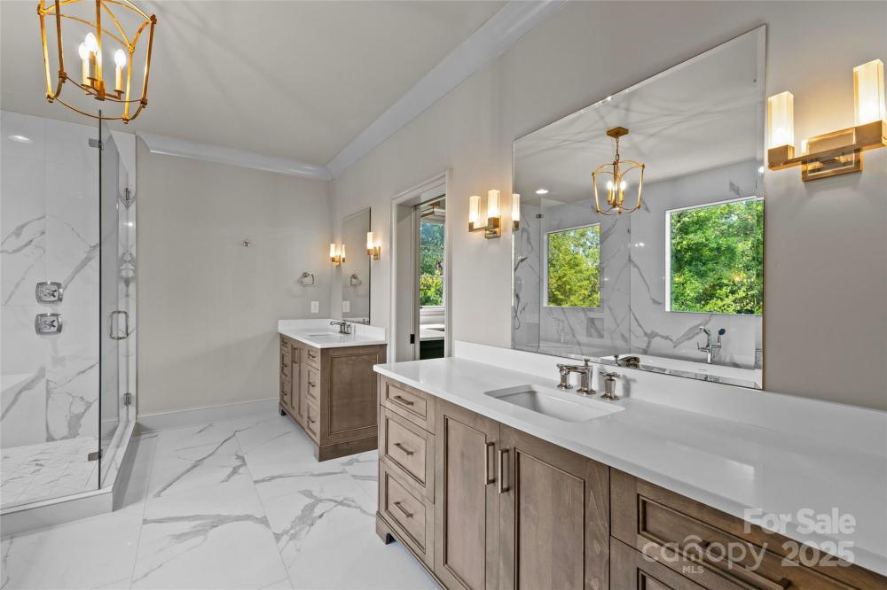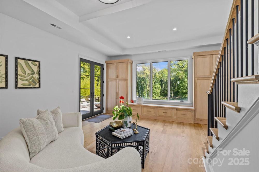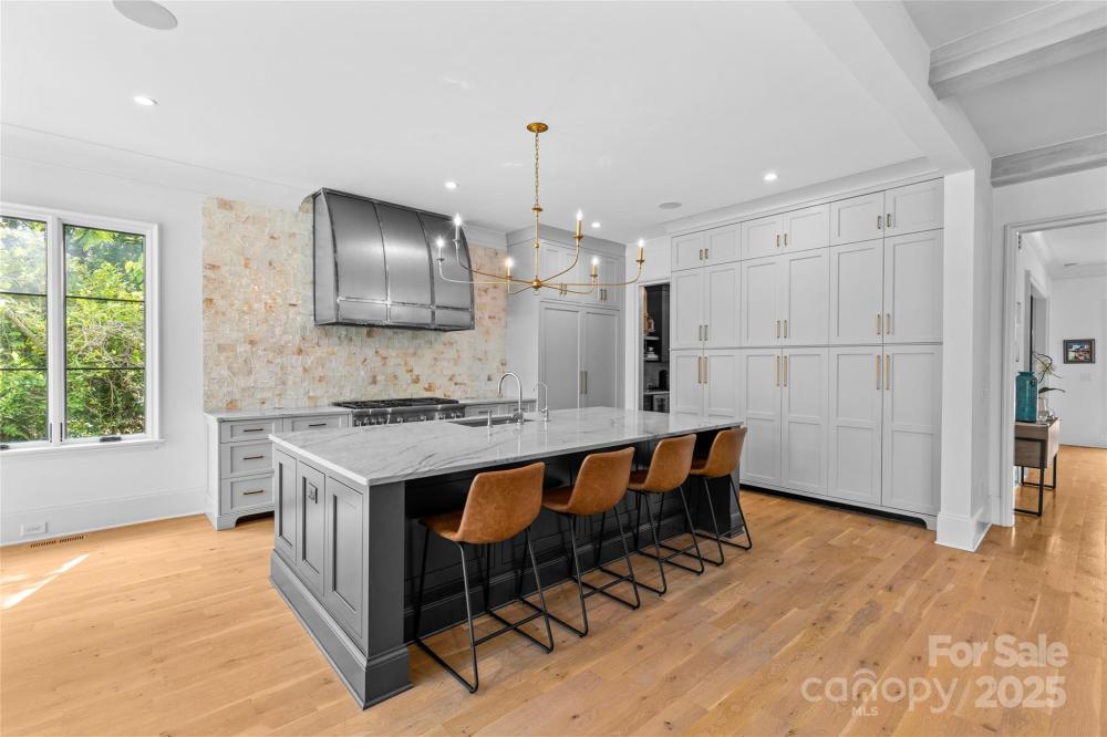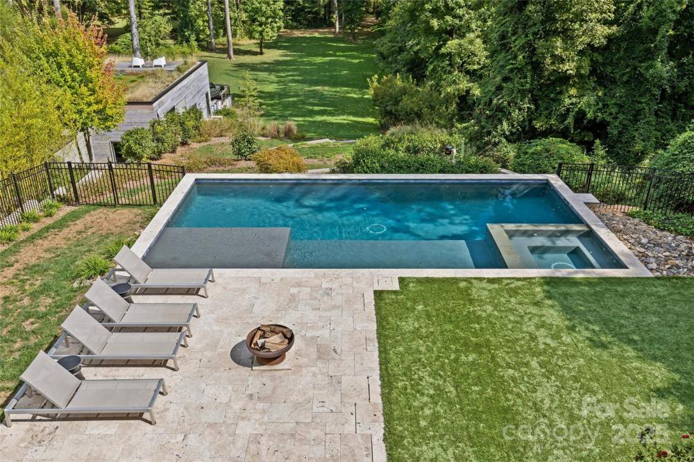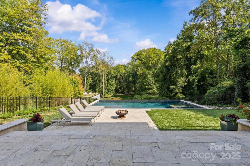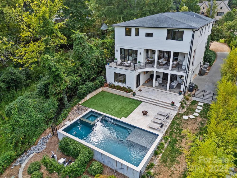 Stunning custom-built residence in desirable Myers Park! Completed in 2020 by Joyce Building Co, this exceptional 5BR, 6.5BA home offers nearly 6,000 sq/ft of refined living space across 3 levels. Situated on an exceptional 1.49-acre lot just around the corner from Freedom Park and Sugar Creek Greenway, the light-filled, open floor plan boasts soaring ceilings, designer lighting, custom millwork, and gorgeous white oak hardwoods throughout. The chef’s kitchen features custom cabinetry, quartzite countertops, Thermador appliances, expansive island, walk-in pantry and bar! The adjacent breakfast area and family room, with exposed beams and cast stone fireplace, flow seamlessly to a covered terrace with fireplace, heaters, and views of the lush backyard & pool. Upstairs find the luxurious primary suite with dual walk-in closets and spa-like bath, along with four spacious secondary bedrooms, all with custom closets and en-suite baths. The lower level offers a media room, exercise room with sauna and full bath, and a den opening to a covered patio with built-in grilling station, which extends to the saltwater pool/hot tub! With a 3-car garage, circular drive, and beautifully landscaped grounds, this home blends timeless design, modern amenities, and exceptional outdoor living in one of Charlotte’s most sought-after neighborhoods.