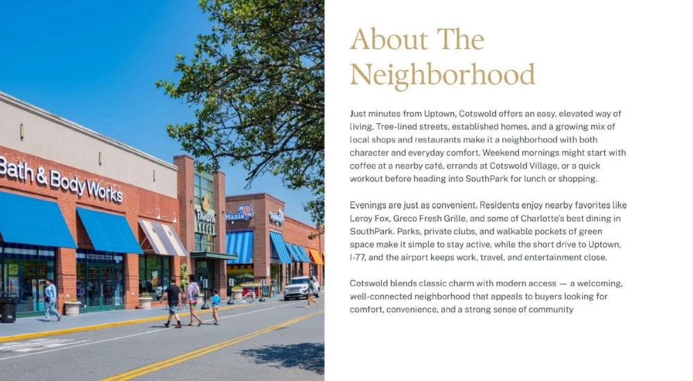 If you are looking for that neighborhood close to Charlotte’s downtown with a warm and friendly feel, then look no further than Cotswold. Bordering on some of Charlotte’s most exclusive neighborhoods, such as Eastover and Foxcroft, Cotswold offers an amazing location that is only moments away from the center city.