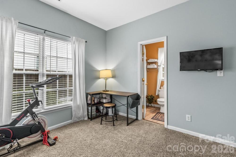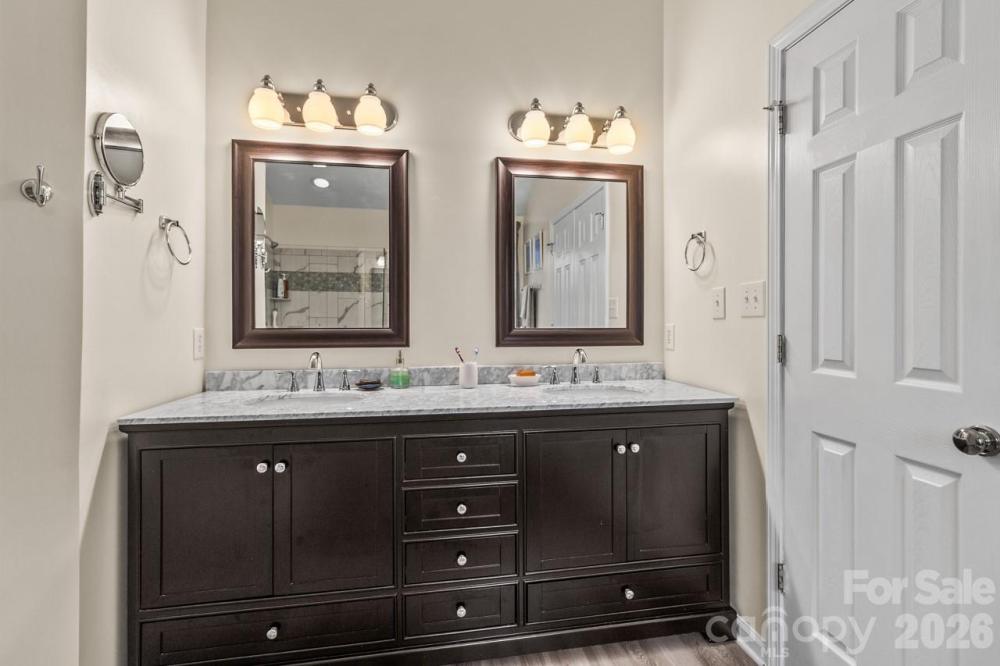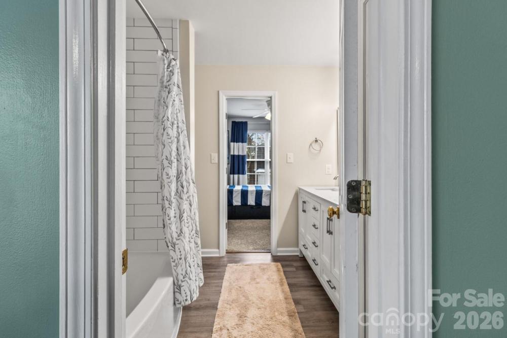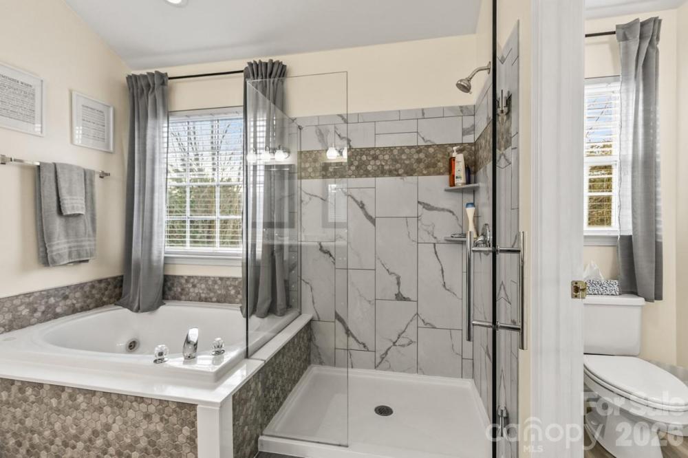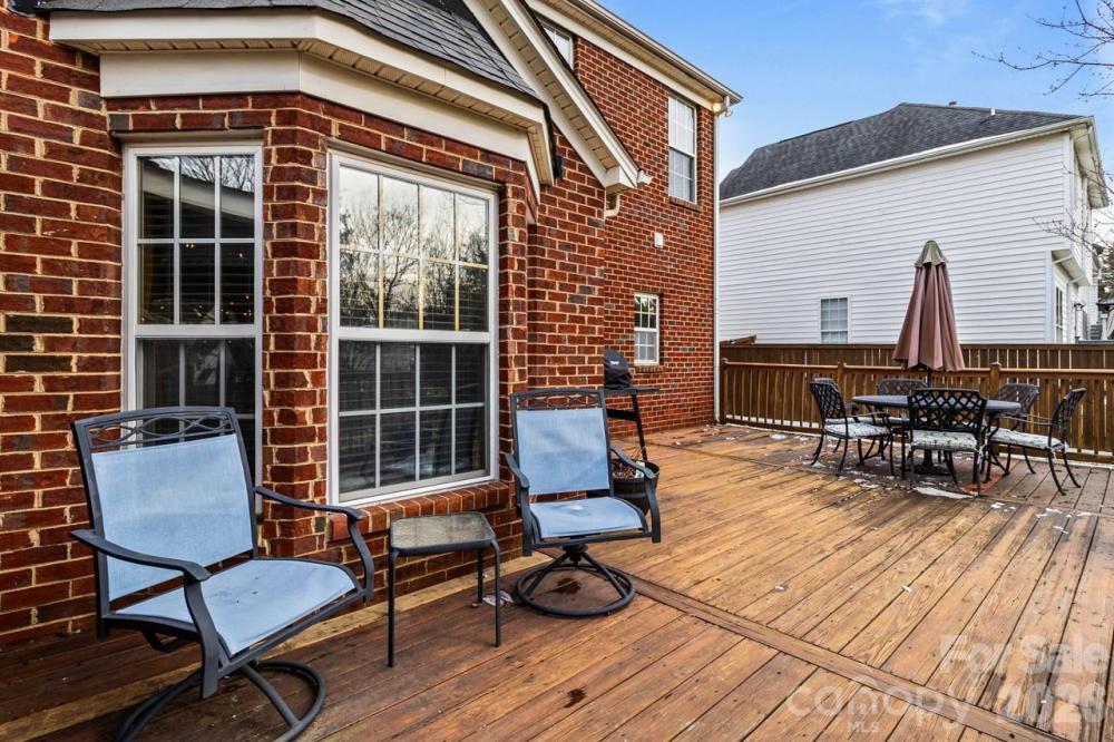 Terrific full brick house on cul-de-sac street in the awesome Highland Creek community. Entertain family and friends in the spacious dining room or dine casually in the breakfast area. 2- story great room features a gas fireplace, hardwood flooring and multiple windows. Kitchen got new counters in 2020 and also has an island, tons of storage stainless appliances and ceramic tile flooring. Main level also boasts a versatile front room which could be a sitting room, music room, play area or whatever your family needs. The main level also boasts a bedroom and adjoining FULL bath. Upstairs primary bedroom with tray ceiling and ceiling fan is quite large and can accommodate multiple pieces of furniture. Primary bath has been updated and features a jetted tub, separate shower and dual vanity. Be sure to check out that walk-in closet too. The other 2 bedrooms upstairs are connected by a Jack & Jill bath which also has been updated. The laundry room is conveniently located on the upper level. Enjoy the extra living space provided by bonus room on the upper level! There is plenty of outdoor space to enjoy, too. There is a great comfortable screened porch plus a large deck. Walk in attic storage! New roof in 2023. New HVAC for upper level installed in September 2025. Level lot with irrigation. Located close to elementary school, middle school, 2 playgrounds, pool and golf clubhouse. This one is move-in ready!