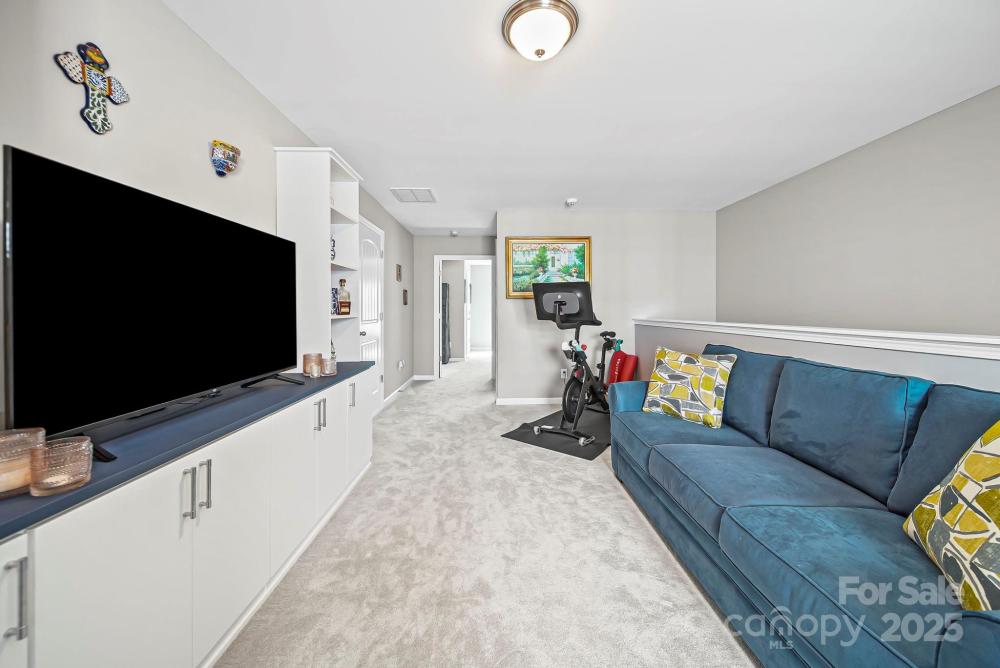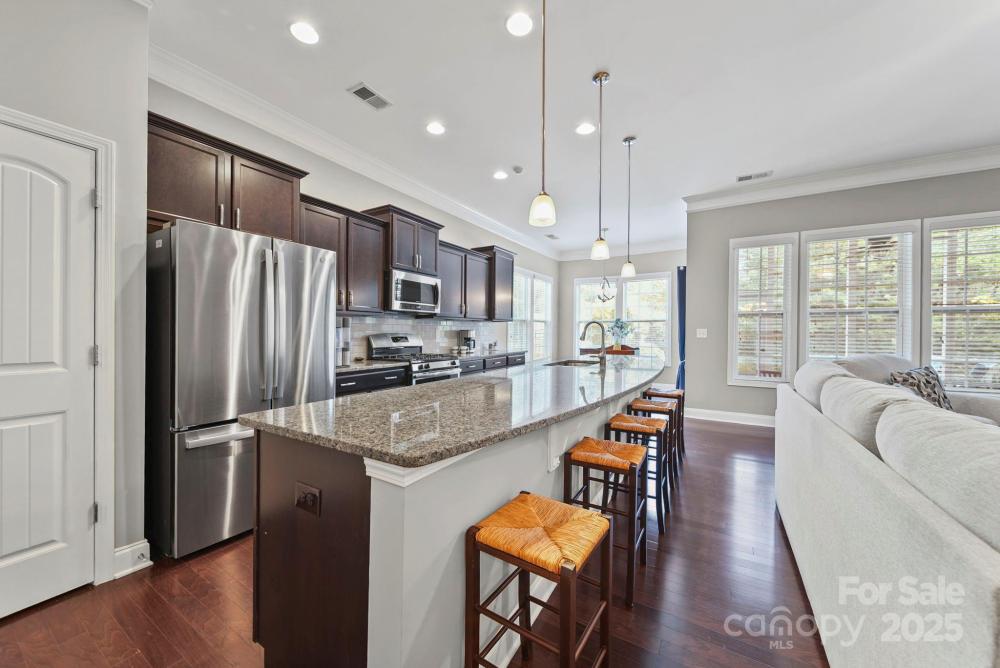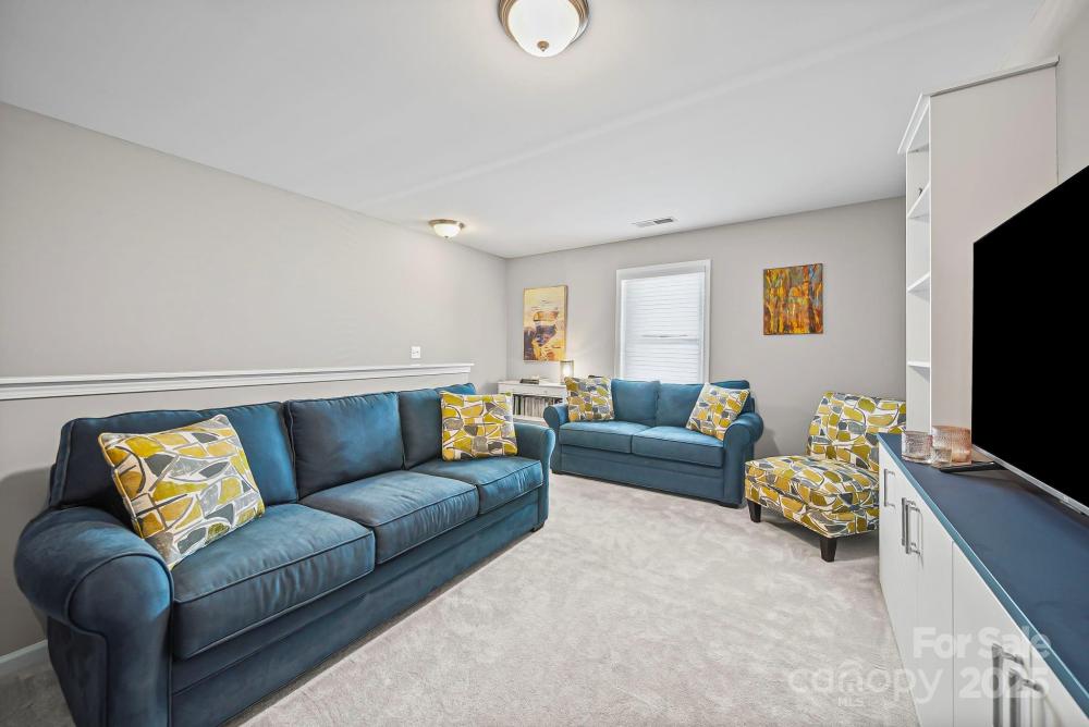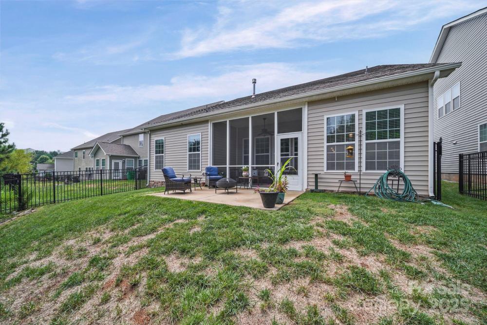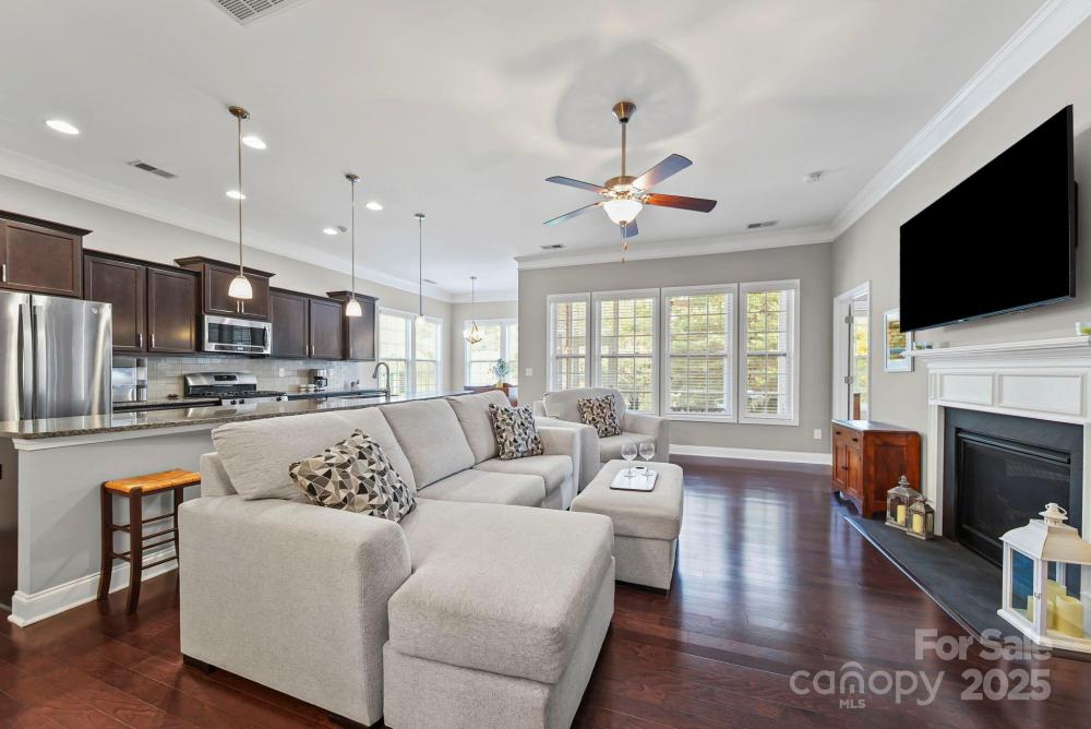 Impeccably maintained 4 bed, 3 full bath home with 2-car garage, screened porch, and private backyard! Open floor plan features a 13’ island perfect for entertaining, a dining area, fireplace, and breakfast nook. Kitchen boasts granite counters, SS appliances, and large pantry. Spacious laundry/mudroom has a large walk in storage closet, and conveniently connects garage and kitchen. The main level has 3 bedrooms and 2 baths, including owner’s suite with soaking tub, glass shower, and walk-in closet. Upstairs offers a bonus living room area with built-ins, a 4th bedroom, full bath, and walk-in attic storage. Enjoy a screened porch and patio overlooking plenty of green space. Private fenced back yard! Fresh paint, new carpet, and 6 custom California Closets all done in 2024. Service records available. Fantastic community amenities! 2 pools, splash pad, gym, volleyball, and walking trails. This home is just around the corner from the Premium Outlets, dining, and grocery. Close to I-77 & Uptown, this is quiet living, yet a perfect location to all Charlotte has to offer!