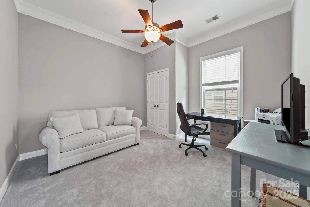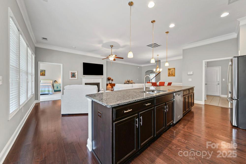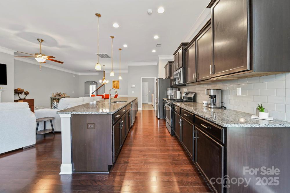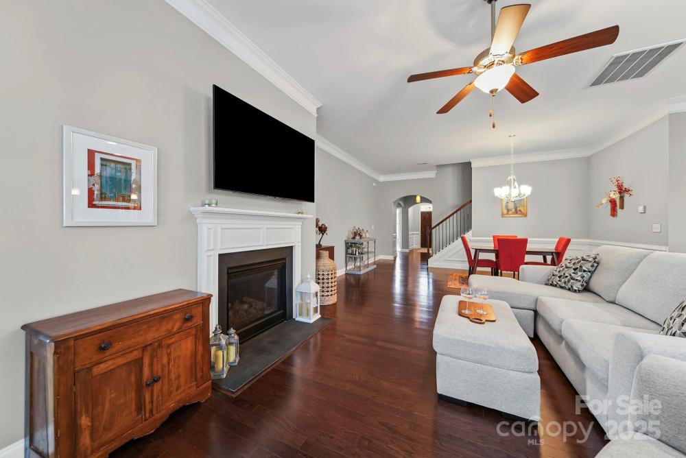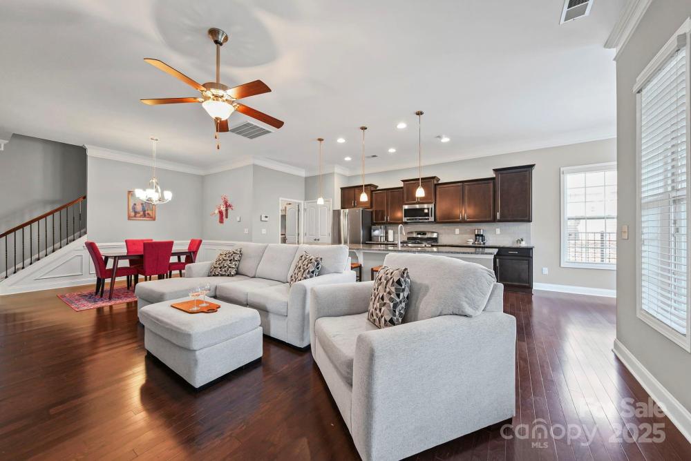 Impeccably maintained 4 bed, 3 full bath home with 2-car garage, screened porch, and private backyard! Open floor plan features a 13’ island perfect for entertaining, a dining area, fireplace, and breakfast nook. Kitchen boasts granite counters, SS appliances, and large pantry. Spacious laundry/mudroom has a large walk in storage closet, and conveniently connects garage and kitchen. The main level has 3 bedrooms and 2 baths, including owner’s suite with soaking tub, glass shower, and walk-in closet. Upstairs offers a bonus living room area with built-ins, a 4th bedroom, full bath, and walk-in attic storage. Enjoy a screened porch and patio overlooking plenty of green space. Private fenced back yard! Fresh paint, new carpet, and 6 custom California Closets all done in 2024. Service records available. Fantastic community amenities! 2 pools, splash pad, gym, volleyball, and walking trails. This home is just around the corner from the Premium Outlets, dining, and grocery. Close to I-77 & Uptown, this is quiet living, yet a perfect location to all Charlotte has to offer!