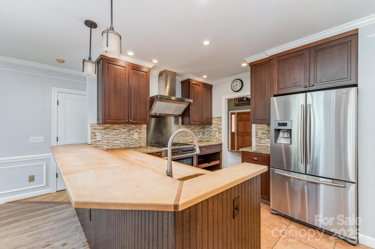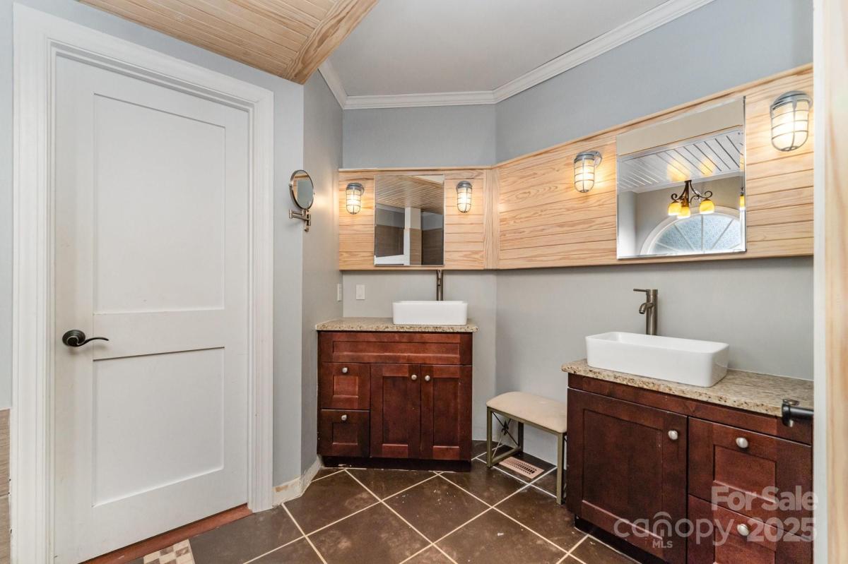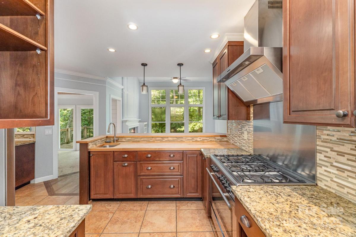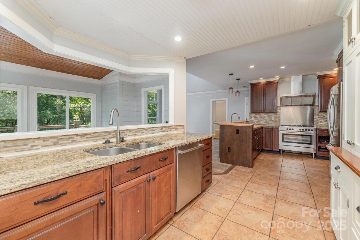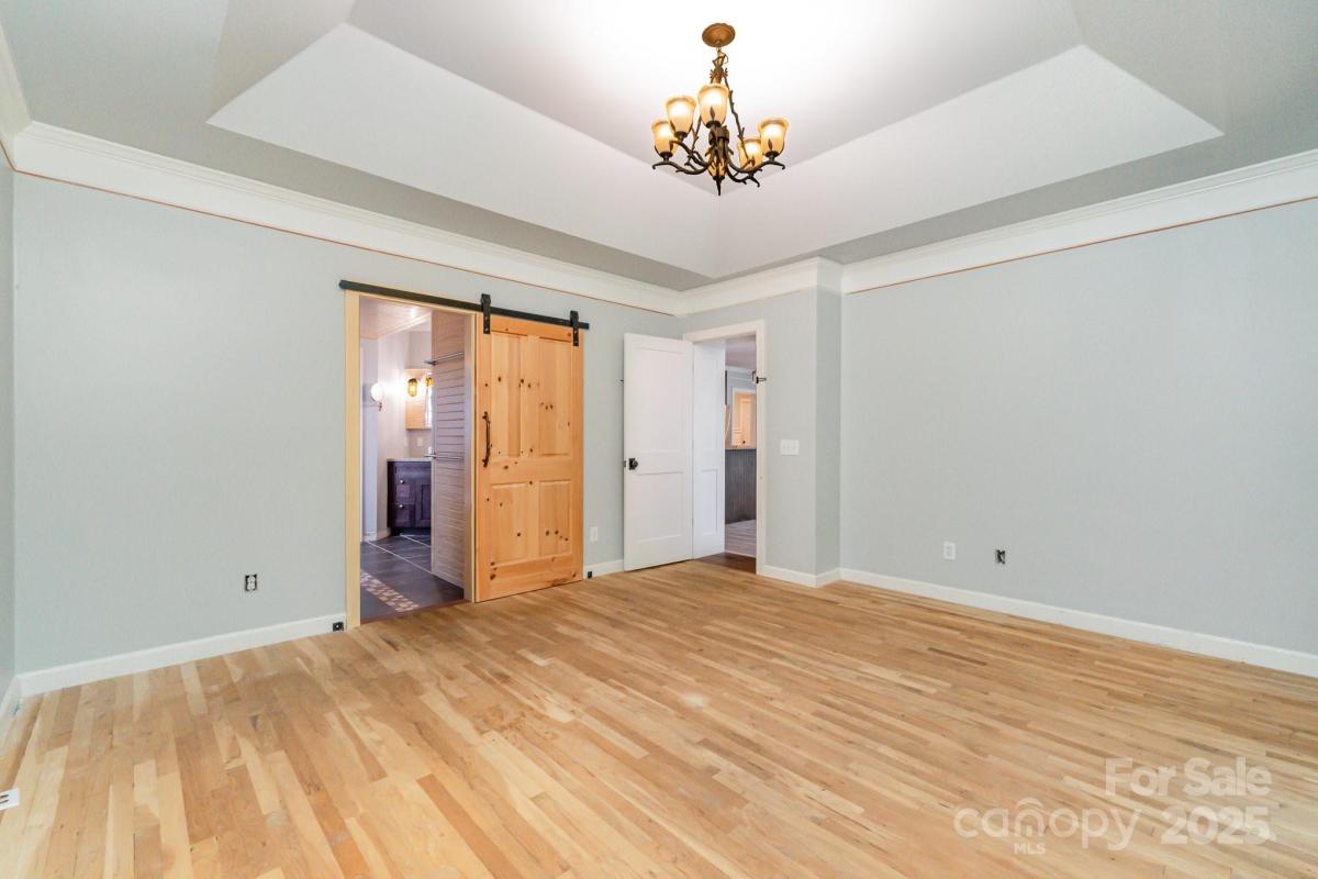 Stunning 4-bedroom, 2.5-bathroom home nestled in a quiet neighborhood. This spacious property features over 2,700 square feet of well-designed living space. Step inside and you're greeted by gleaming hardwood floors detailed wainscoting, and soaring ceilings. The grand foyer opens to a light-filled formal library with custom-built-in bookshelves and oversized bay windows. The open-concept kitchen boasts granite countertops, stainless steel appliances, and modern pendant lighting, perfect for entertaining. The main level also includes a beautiful sunroom with wood-paneled ceilings and walls of sliding glass doors. The spacious primary suite features a tray ceiling and a custom barn door leading into the luxurious en-suite bath with dual vanities, a soaking tub a walk-in shower, and a generous walk-in closet. Upstairs, you'll find an additional 3 bedrooms plus a bonus room with ample space and storage. Step outside onto the private back deck and enjoy serene views of the wooded backyard.