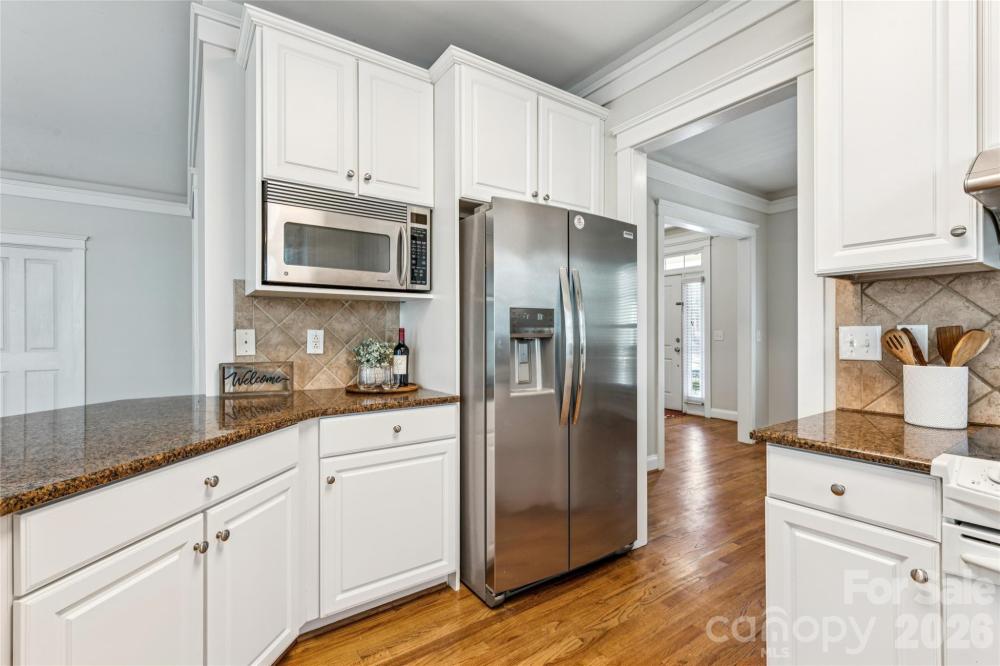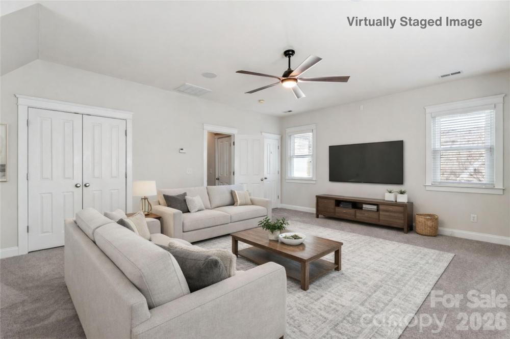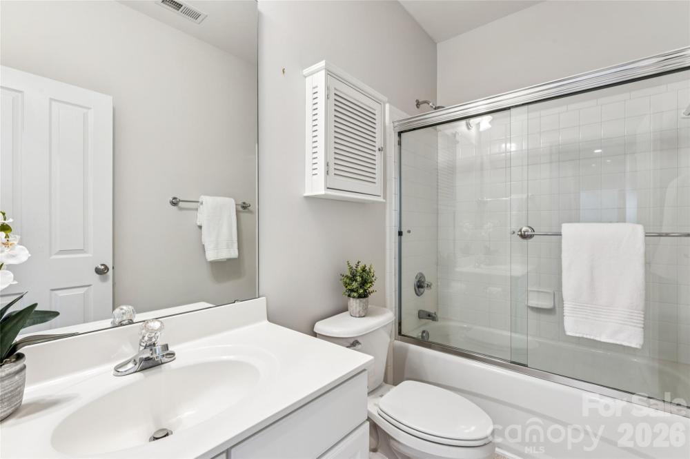 LOCATION. LOCATION. LOCATION! Truer words were never spoken when it comes to this Saussy Burbank craftsman-style charmer. Centrally located in the highly-regarded village of Master Hill in Highland Creek, this beautiful home gives you access to so many of the area's offerings: neighborhood elementary & middle schools (easy walk to school!), shopping, dining, entertainment, golf (Highland Creek's public golf course), sporting events (NASCAR, football, soccer, basketball, baseball) proximity to the highways, and so much more. A true Southern Belle, this home boasts a welcoming rocking-chair front porch for those lazy summer evenings. Inside, true to the Saussy Burbank style, you are greeted with craftsman-style finishes & true finished-onsite hardwood floors which flow throughout the main level (except for the laundry room). Open floor plan features a spacious family room w/gas log fireplace with light-filled windows, eat-in breakfast area and kitchen with classic white cabinets with a wide countertop bar area and connecting large dining room for all of your entertaining needs. Ascend the stairs to the upper level and you will find plush all-new carpet throughout along with a very comfortable owner's suite with a huge walk-in closet, attached bath with dual vanities, separate shower & garden tub. Two additional bedrooms PLUS a large bonus room with closet and storage can also be used as an additional bedroom. Lots of storage available! Step out back on your rear deck overlooking the fenced yard. New double-hung windows with warranty 2025, upstairs HVAC (heat pump) 2025. So much to love about the house, the neighborhood, the community! WELCOME HOME!