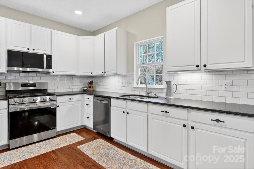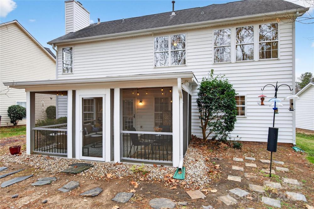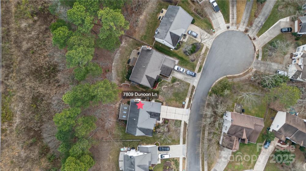 Welcome to 7809 Dunoon Lane, located in the amenity-rich Highland Creek community of Charlotte on a quiet cul-de-sac. This beautifully maintained and thoughtfully upgraded, one-owner home offers 5 bedrooms (or 4 bedrooms plus a versatile bonus room), 2.5 bathrooms, and an oversized attached 2-car garage. Inside, you’ll find an open, comfortable layout designed for everyday living. The kitchen features 42" cabinets, leathered black granite countertops, a tiled backsplash, a gas stove, and both a breakfast nook and a separate formal dining room with a tray ceiling. New Microwave and Gas Stove 2025. Plantation shutters add style and privacy to the front living room, which offers flexible use, and can easily be converted to an office or playroom with the original French doors still on hand. The large family room features a cozy wood-burning fireplace and plenty of windows, allowing an abundance of natural light. Added in Spring 2022, a spacious screened-in porch with dual skylights overlooks a private, wooded backyard and is the perfect quiet spot to relax and enjoy the natural surroundings. Upstairs, you’ll find three generous bedrooms plus a fourth bedroom/bonus room, along with a renovated full bath (2022). Upgraded in 2022, the spacious primary suite includes LVP flooring, a tray ceiling, a walk-in closet, and an updated bathroom featuring a new vanity, lighting, tub, and a beautiful free-standing, frameless tiled shower. The laundry room is also conveniently located upstairs. New carpet was installed in January 2026. HVAC 2017. Water Heater 2021. Just two blocks away, Christenbury Park offers a pool, playground, and basketball courts. In fact, Highland Creek offers an impressive collection of amenities with low HOA dues, including access to multiple parks, pools, rec courts, playgrounds, fields, fitness facilities, sports courts, and walking areas. The community includes a University Child Development Center, elementary and middle schools, an assisted living and memory care center, and an 18-hole public championship golf course with dining, tap room, and regular community events. Nearby parks feature pickleball, tennis, sand volleyball, bocce ball, and disc golf. Conveniently located minutes from six grocery stores, Concord Mills, and easy access to I-485, I-85, and I-77, this home puts daily conveniences within reach. Come explore life in Highland Creek and see all that this beautiful property has to offer.