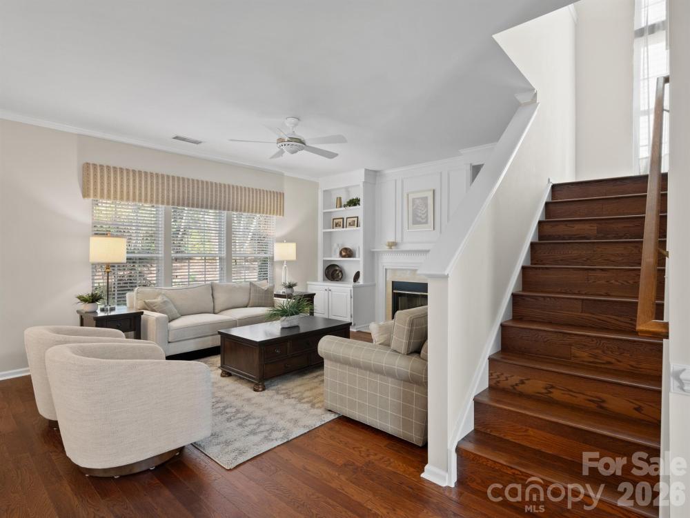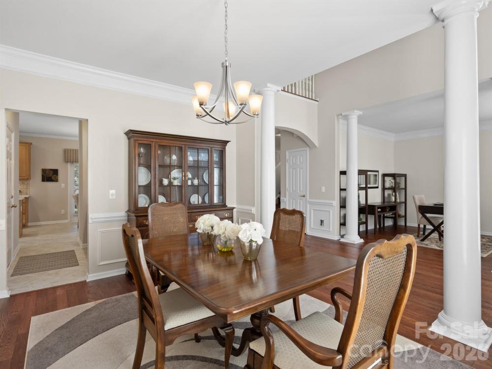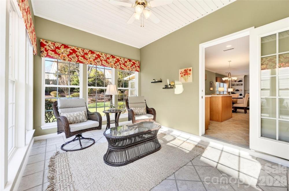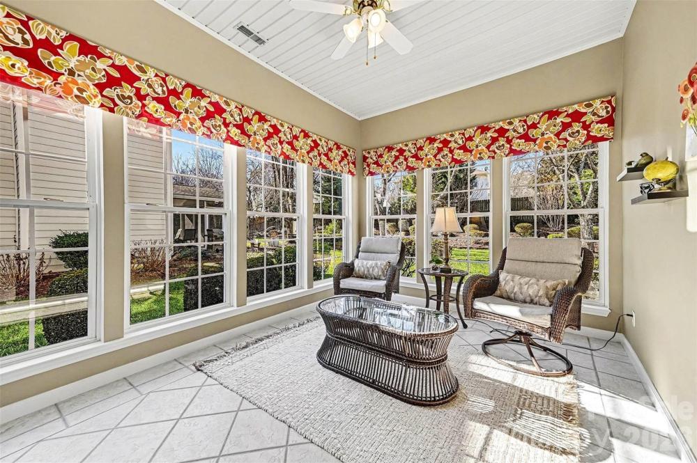 Tucked at the end of a quiet cul-de-sac in Highland Creek, one of Charlotte’s well-known master planned communities, this one owner residence offers a bright, open layout & timeless architectural details. A dramatic two-story foyer with classic columns creates a striking first impression as hardwood floors, elegant trim work & abundant natural light fill the home. The thoughtful floor plan blends everyday comfort with inviting spaces for gathering & entertaining. The kitchen features plentiful cabinetry, a center island, pantry storage & an easy flow into the breakfast area & great room with fireplace & built-in shelving. A sun-filled, window-lined sunroom is the perfect spot for morning coffee. Upstairs, a large loft creates a true second living area for movie nights, games, or flexible workspace. The primary suite features a tray ceiling, spacious bath with soaking tub & separate shower, & a walk-in closet with custom shelving. Enjoy outdoor living on the screened porch overlooking a beautifully landscaped backyard thoughtfully designed for easy maintenance. Living in Highland Creek means access to multiple pools, tennis courts, parks, playgrounds & miles of neighborhood trails. Residents also enjoy views of the community golf course while optional play is available with tee times for purchase. The neighborhood beer garden & grill offers a popular place to gather, relax & enjoy casual outdoor dining. A full calendar of community events makes it easy to feel connected with neighbors & community life.