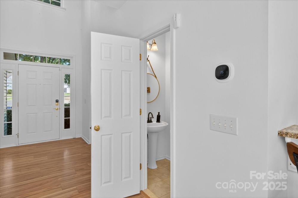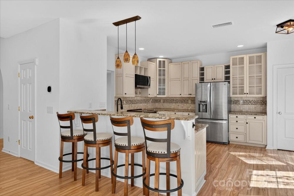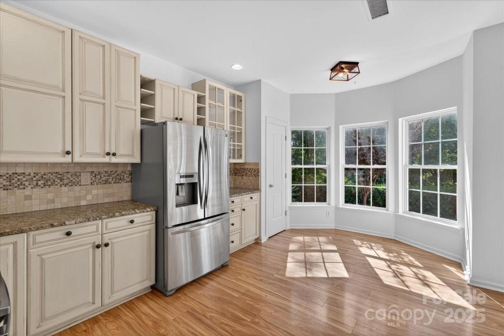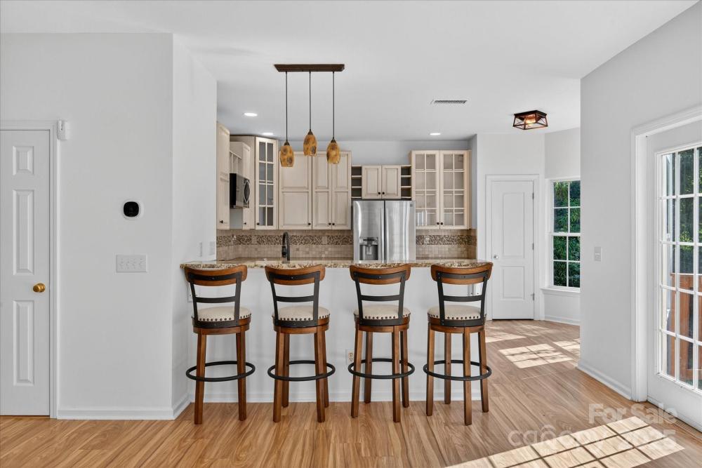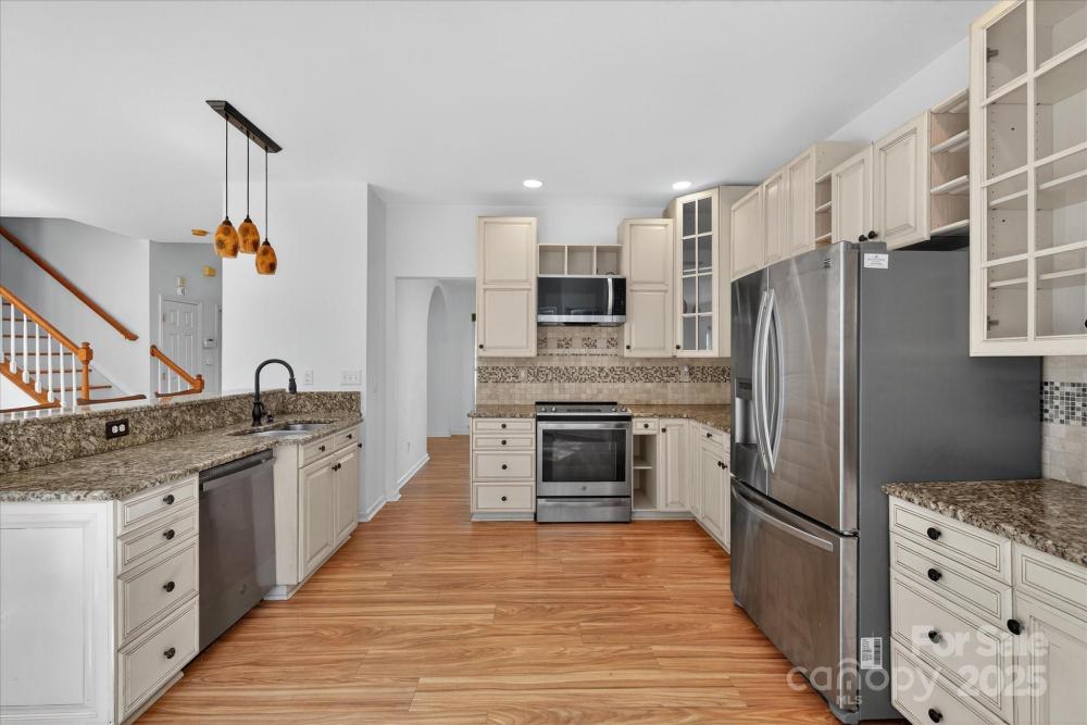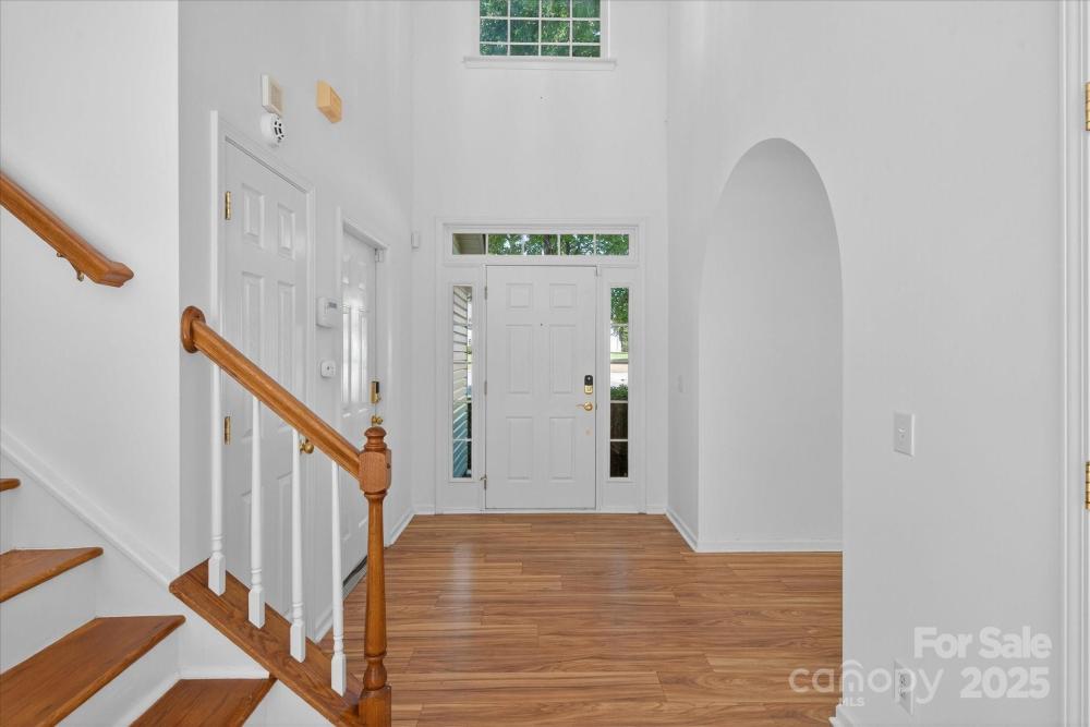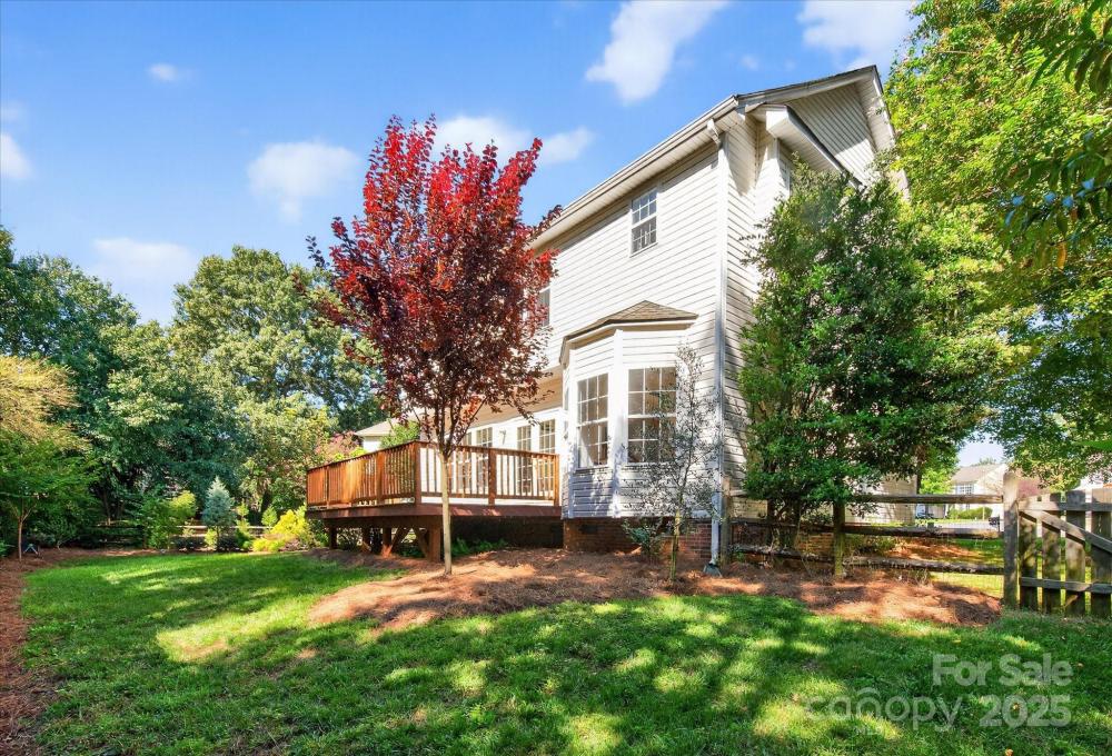 Welcome to this inviting home filled with natural light, thoughtfully designed for both comfort and style. Nestled on a quiet cul-de-sac, this property offers a blend of privacy, convenience, and elegance, making it the perfect retreat while still being close to neighborhood amenities. With its brick front, vinyl siding on the sides and rear, and a two-car garage, the home presents a timeless curb appeal that feels both warm and welcoming from the moment you arrive. Step inside and you are greeted with an abundance of light streaming through generous windows that frame views of the lush rear yard and surrounding trees. The layout has been carefully planned to create a sense of openness while still offering defined living spaces that suit both everyday living and special gatherings. The heart of the home is the kitchen, designed with functionality and beauty in mind. Featuring a stainless steel French door refrigerator, a stainless steel electric range with smooth cooktop, a built-in microwave, and a dishwasher, the kitchen is well-equipped for all your cooking and entertaining needs. A breakfast bar provides a casual seating option, perfect for morning coffee or quick meals, while the adjacent casual dining area creates space for family dinners or friendly gatherings. The kitchen cabinets include stylish glass-front doors, adding a touch of elegance and allowing for display of your favorite dishware or glassware. The first floor also features a powder room for guests, as well as an expansive living room with an open-concept flow to the kitchen. This seamless connection makes entertaining effortless and everyday living relaxed. A fireplace, ready for gas logs, adds warmth and the potential for cozy evenings. From the living room, step outside to the large wooden deck, which extends the living space outdoors. Perfect for grilling, entertaining, or simply relaxing, the deck overlooks the private, fenced backyard. The backyard is truly a highlight of this property. Landscaped with care and framed by mature trees, the yard offers a peaceful, retreat-like atmosphere. Behind the home, enjoy direct access to a neighborhood walking trail and take in views of a serene pond. Whether you are entertaining friends or savoring a quiet moment at the end of the day, this space is sure to become one of your favorite features. Back inside, a striking arched entryway leads into the formal dining area, where floor-to-ceiling windows flood the room with natural light. This elegant space is perfect for holidays and dinner parties, offering a beautiful setting to gather and create lasting memories. A wood-plank staircase leads to the second level, continuing the theme of abundant natural light throughout the home. Upstairs, the primary bedroom serves as a private retreat with its own full bathroom. With space to unwind and plenty of natural light, this suite offers both comfort and functionality. Three additional bedrooms provide versatility—perfect for family, guests, or even a home office. A second full bathroom is conveniently located in the hallway to serve the additional bedrooms. A laundry closet is also located on the upper level, adding everyday convenience. Throughout the home, large windows bring in natural light, enhancing the sense of space and highlighting the connection to the beautiful outdoor setting. From the thoughtful layout to the peaceful surroundings, every detail of this home has been crafted to create a lifestyle that is both welcoming and practical. This home is more than just a place to live—it is a space designed to support connection, comfort, and relaxation. With its combination of natural beauty, private backyard, open-concept living spaces, and a location that blends neighborhood charm with serene views, this property stands out as an ideal choice for anyone seeking both style and substance.