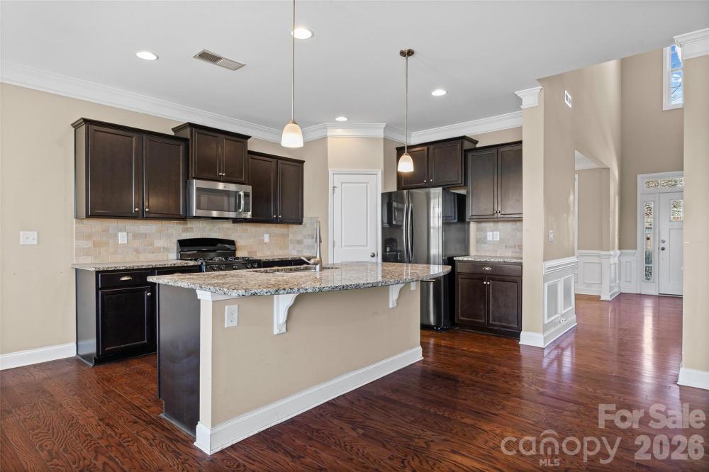 Welcome to this beautifully maintained, move-in ready home featuring 5 bedrooms, 3 bathrooms, and 2,594 square feet of spacious living. The open floor plan offers plenty of natural light and room to grow—perfect for families or those who love to entertain. With modern finishes and thoughtful design throughout, this home is ready for you to make it your own. There are hardwood floors on the 1st floor and LVP throughout the entire 2nd floor as well as on the stairs. This home features a modern kitchen with tile backsplash, a stunning granite island, and stainless steel appliances that convey, including a brand-new gas range, microwave, dishwasher, and refrigerator. The main level offers a beautiful dining area, a separate breakfast nook, and a convenient downstairs bedroom with a full bath—perfect for guests or a home office. Upstairs, the primary suite is a true retreat with a double vanity, oversized walk-in shower, separate soaking tub, and a spacious walk-in closet. Two additional bedrooms and a large bonus room or optional fifth bedroom complete the upper level. Features and upgrades to the house to be highlighted: tiles on front porch, tiles on screened-in backyard patio, premium view (no backyard neighbor). This beautiful home is built in the highly amenitized Berewick community, offering residents access to a clubhouse, pool, walking trails, recreation, and convenient proximity to shopping and dining.
