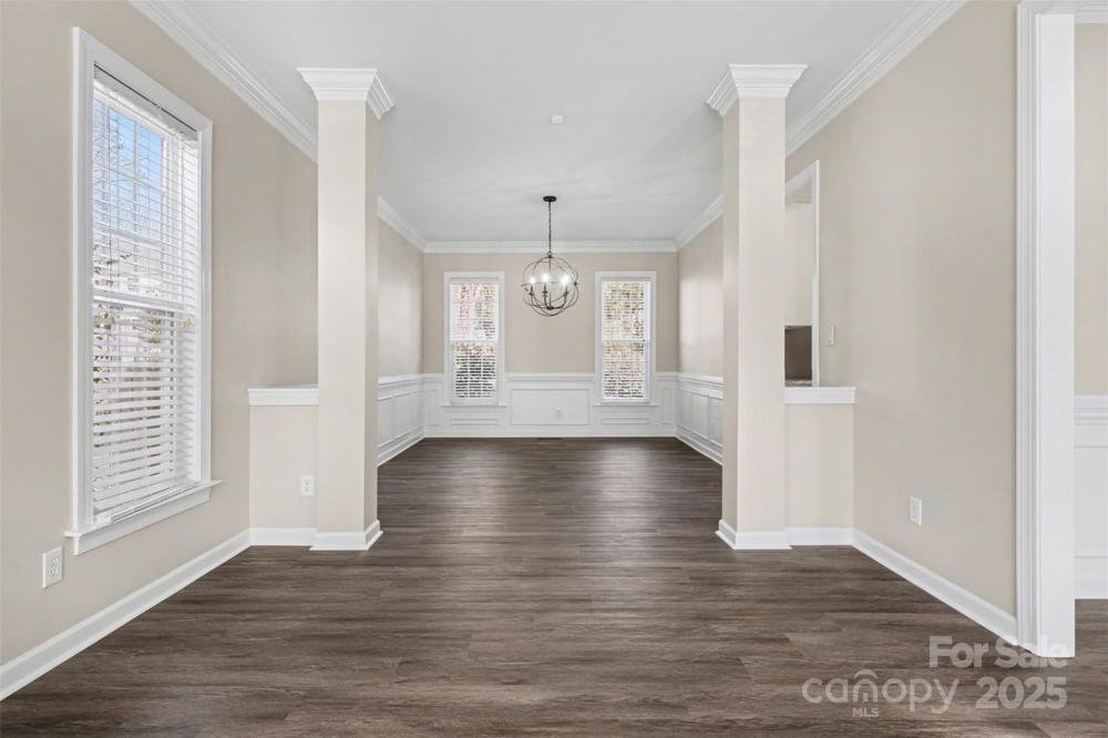 Updated 5-bedroom, 2.5-bath home located in the Highland Creek community on the Cabarrus County side. A large open foyer and powder room welcome you into the home, while the formal living and dining rooms provide flexible space for everyday living and family gatherings. The kitchen is fully equipped with stainless steel appliances and a pantry, and features new granite countertops, an undermount stainless steel sink, and tile backsplash (2025), along with a new garbage disposal (2025). Luxury vinyl plank flooring flows throughout the entire first floor, complemented by a wood staircase. The home offers newer HVAC systems on both levels — first floor HVAC replaced in 2020 and second floor HVAC replaced in 2023 — providing added comfort and efficiency. An architectural roof was installed in 2025. All bedrooms are located on the second floor, including a spacious primary suite with a garden tub, separate shower, and tile flooring. One of the secondary bedrooms is oversized and offers flexibility for use as a playroom, media room, or home office. Outside, enjoy a private, fenced backyard with a wood deck and stone patio, ideal for entertaining or relaxing outdoors. Highland Creek features sidewalk-lined streets and community amenities including swimming pools, a fitness center, tennis and pickleball courts, walking trails, and a public golf course. Conveniently located near shopping, dining, grocery stores, and everyday essentials, with easy access to I-485, I-85, and I-77, making commuting throughout the Charlotte area simple and efficient. Well maintained and thoughtfully updated, this home delivers an upscale feel, a functional layout, and recent improvements that make it a must-see for buyers seeking quality, comfort, and convenience.