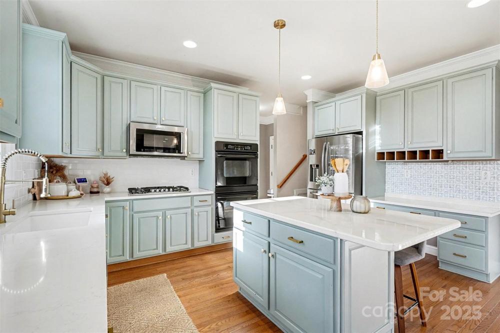 Spacious Highland Creek home located on the desirable Cabarrus County side near the Sports Club, amazing location! Situated on a quarter acre lot, this home offers a beautifully landscaped backyard with a large deck and a paved patio with sitting area, perfect for outdoor entertaining. With over 3,400 square feet of living space, this home includes 5 bedrooms and 3 full bathrooms, plus a dedicated office on the main level, dining room, breakfast area, large laundry room, and upstairs bonus room. The main floor features wood flooring and a two-story family room with fireplace, creating an open and inviting atmosphere. In the kitchen, you will find a double oven, gas range, newer stainless-steel fridge, dishwasher, microwave, and sink and a convenient breakfast area. Upstairs, there are 4 additional bedrooms including the primary with a decorative tray ceiling, primary bathroom with large soaking tub and walk in closet, a large bonus room great for a playroom, workout space, or craft room, Luxury Vinyl Plank flooring on upper level, and the convenience of two separate staircases. Generous room sizes and flexible spaces provide plenty of options! HVAC new in 2023, tankless hot water heater added, brand new backsplash in kitchen, home and driveway freshly pressure washed and more! Conveniently located close to Concord Mills, Uptown Charlotte, dining, shopping, and highways, this home offers both space and an unbeatable location.