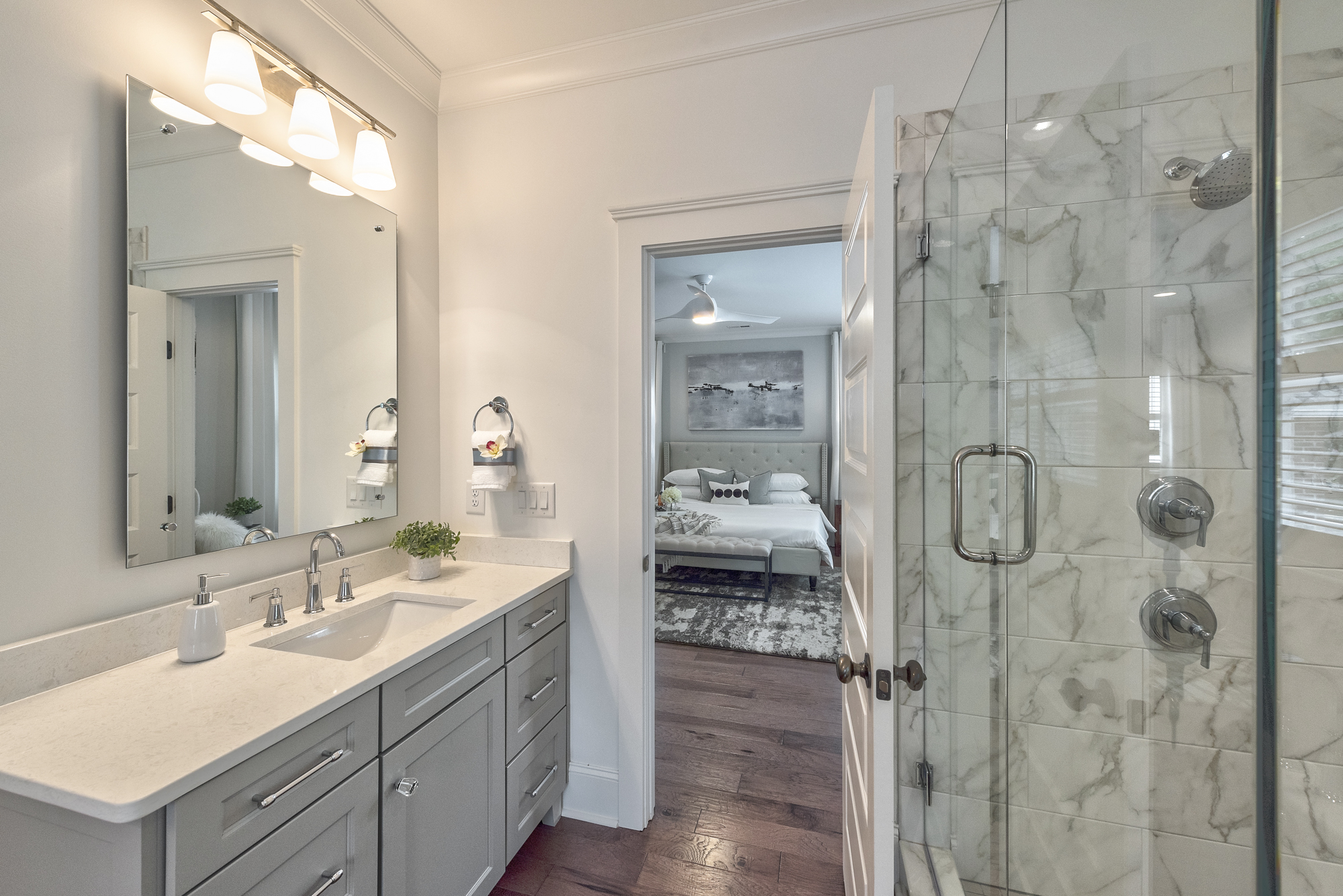 Also located on the second floor are two secondary bedrooms that share a large hall bath which has a double quartz vanity and separate bathing chamber.